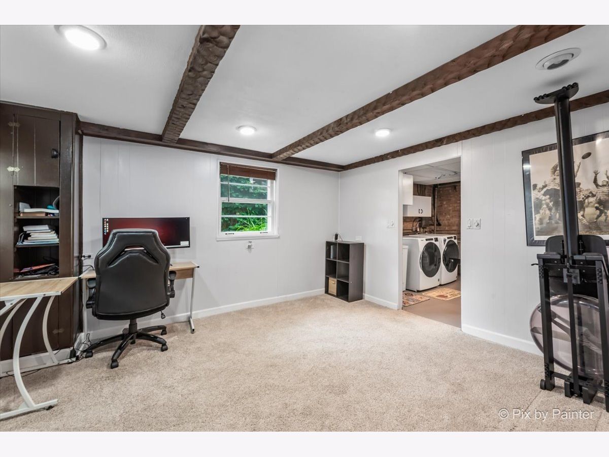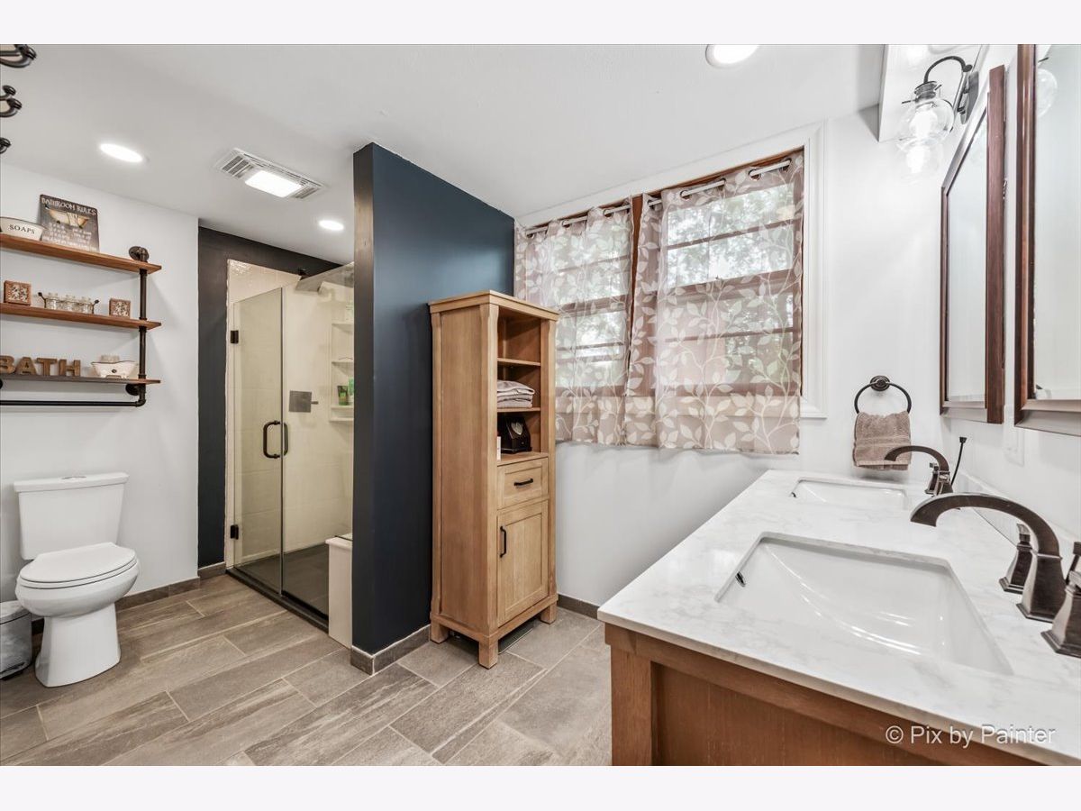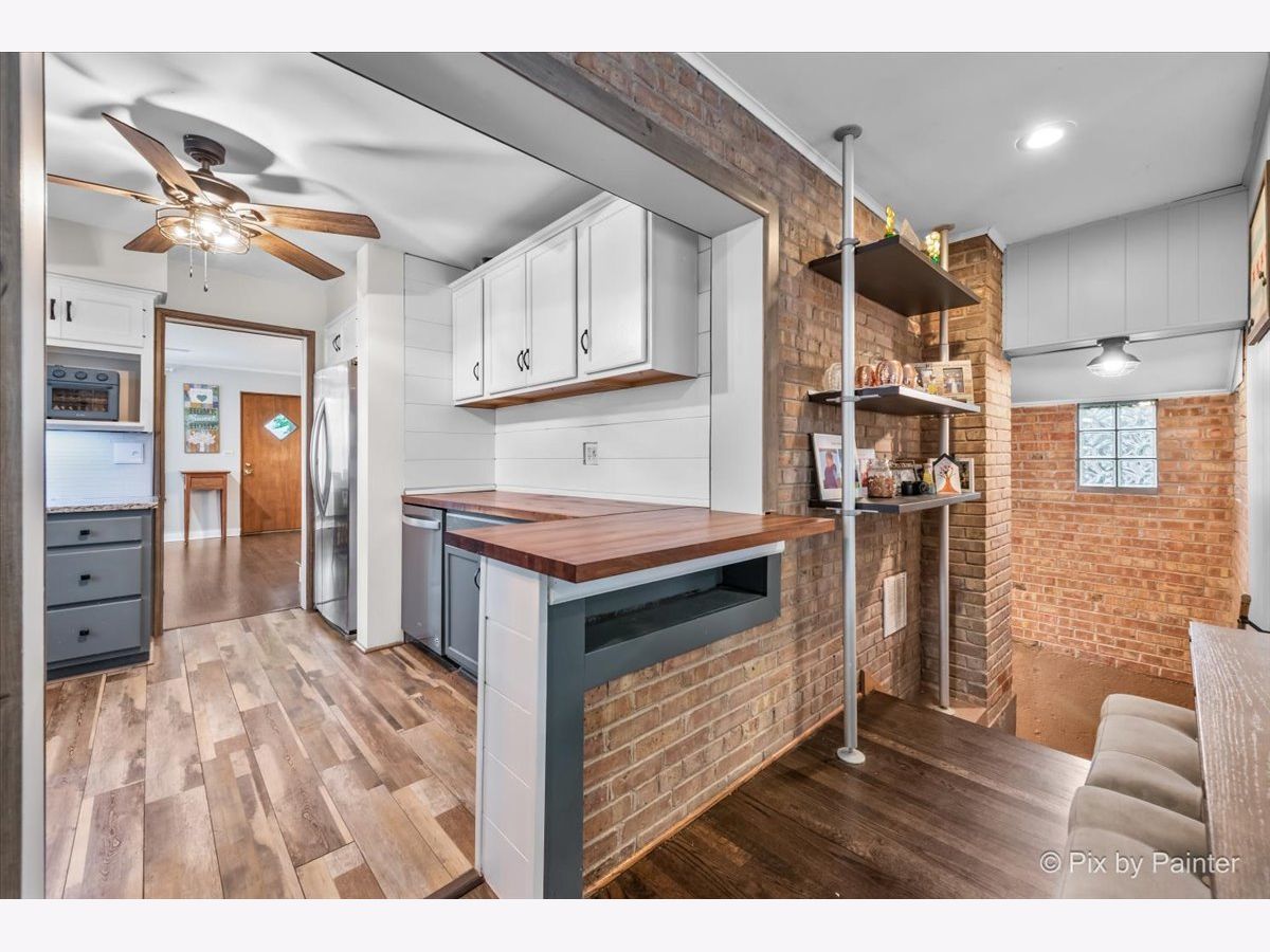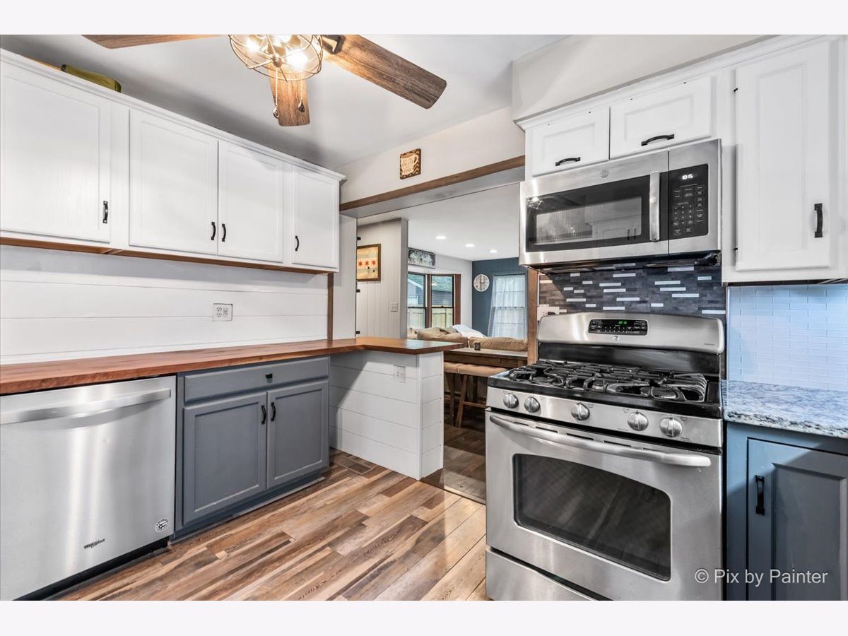 Tucked alongside the peaceful beauty of Linne Woods, this brick charmer surprises at every turn with its blend of warmth, style, and unexpected space. Step through the front door into a welcoming living and dining area with beautifully refinished chocolate-stained hardwood floors that add rich character throughout the main level. The updated kitchen is a standout, featuring sleek stainless steel appliances, a stylish new backsplash, new floors, granite and custom butcher block countertops-perfect for everyday living and entertaining. Discover the true heart of the space: a spacious family room filled with natural light. Anchored by a wood-burning fireplace with a brick facade and a handsome wooden mantel, this room is the perfect place to relax or entertain. An expansive bay window adds charm and frames views of the freshly sodded, graded backyard (2025), complete with a brand-new fence (2024). Upstairs offers two comfortable bedrooms and a full bath, while at the top level you'll find a private retreat: the spacious primary suite with a newly renovated en-suite bath (2021) complete with a walk-in shower and double vanity. Closet space is generous throughout the home including the primary with a walk-up attic space great, for any purpose! Just some of many additional updates include high-efficiency central air and furnace (2023), water heater (2023), new carpet upstairs (2021), and in the basement (2022). The finished basement offers versatile bonus space-perfect for a home office, playroom, or media room. The utility room/laundry room has ample storage with a new washer and dryer (2025). Outside find the lush green yard and new brick patio that makes outdoor living easy and enjoyable. The expansive detached garage comfortably fits two vehicles with room to spare, offering the flexibility for additional storage, seasonal gear, or even a workshop for your next passion project. Located within the sought-after Park View Elementary and Niles West High School districts, this home offers not just charm and space, but thoughtful updates that make it truly move-in ready. Don't miss your chance to make this Morton Grove gem your own!