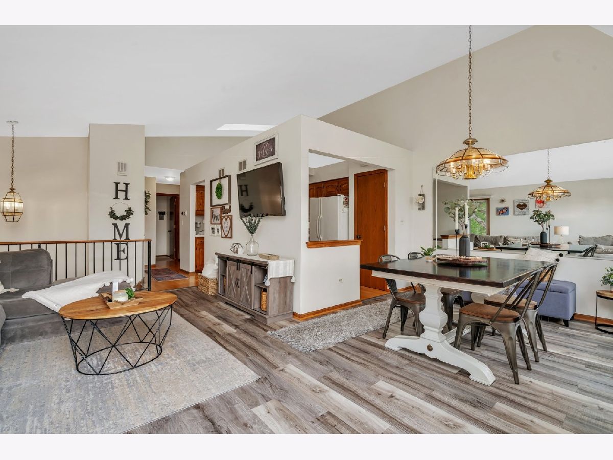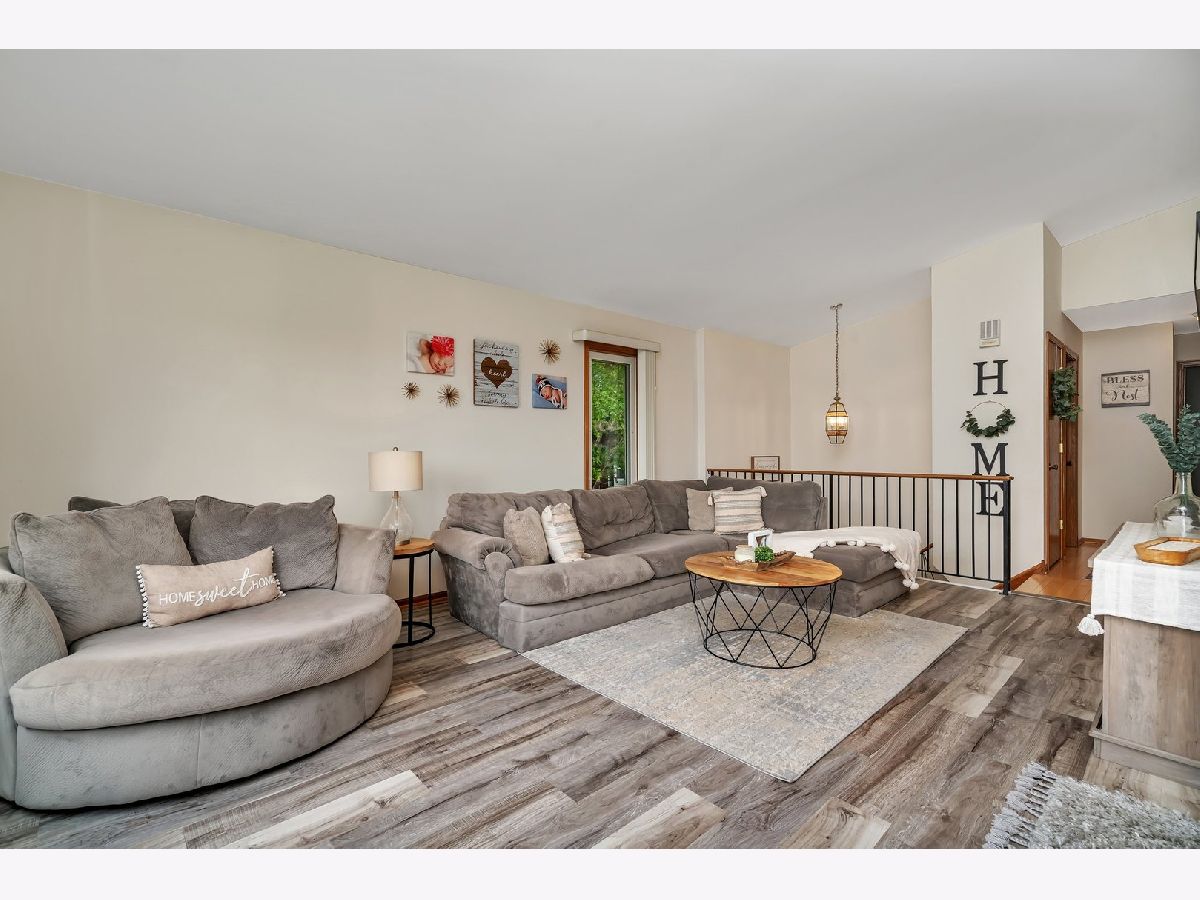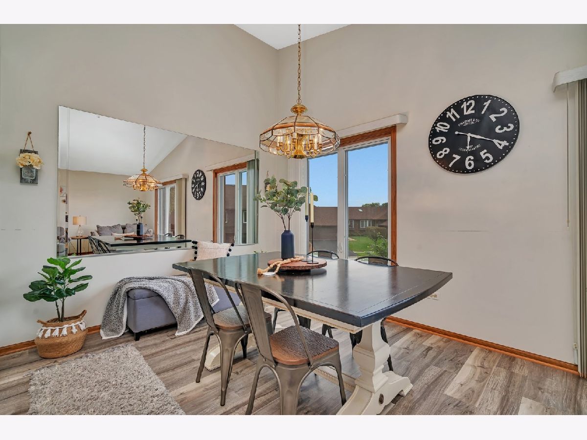 Welcome Home! This charming end unit offers 2 bedrooms and 2 bathrooms, perfect for comfortable living. The open-concept living and dining areas feature stylish LVP flooring installed in 2020. The kitchen boasts a vaulted ceiling with a skylight, creating a bright and inviting space. The master bedroom includes a walk-in closet and shares a full bathroom, while the second bedroom is generously sized. The lower level family room, with walkout exterior access, is ideal for entertaining guests. This level also includes a full bathroom and a laundry room. Enjoy the beautiful weather on your patio. Recent updates include a new dryer (2023) and a new garbage disposal. Situated in the award-winning Sandburg High School district and close to shopping, restaurants, and the new turf sports field at Schussler Park, this home is a must-see!