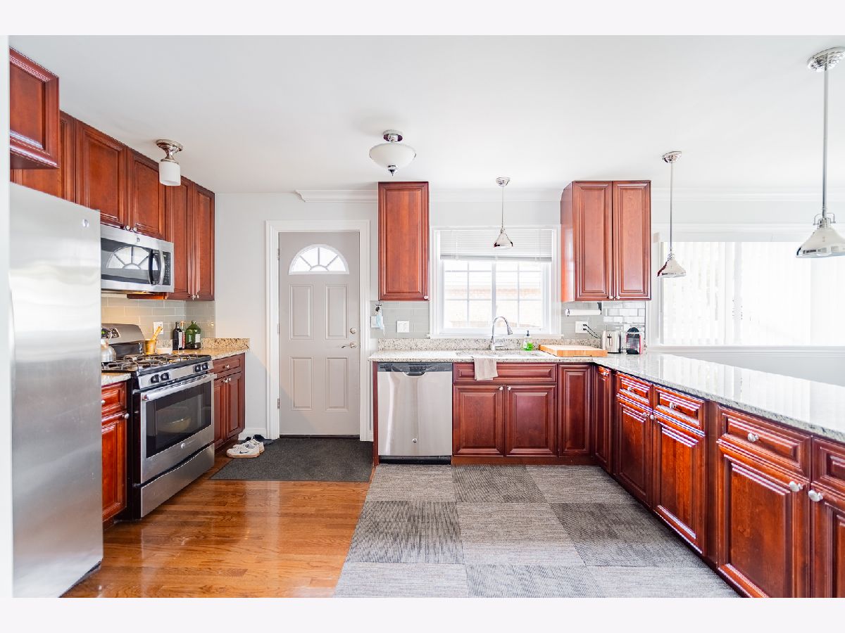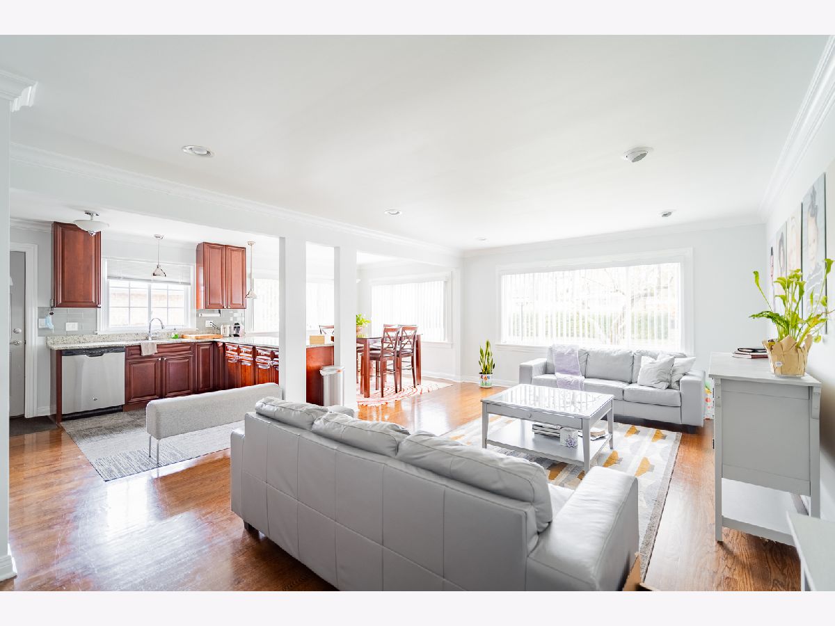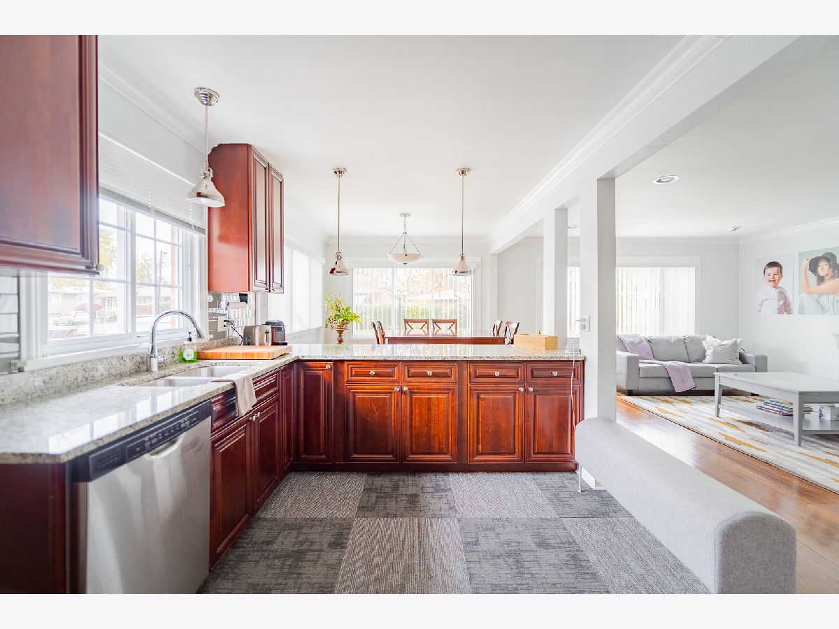 Impeccable 4 bedroom, 2 bath home in the Best Pocket Neighborhood of Morton Grove. Home is ready to move in and is a family lover's dream split level. Main floor is open with exceptional quality custom cabinetry, granite, and Stainless Steel appliances. All 3 levels of the home are loaded with natural light reflecting beautifully on the gleaming highest quality hardwood flooring. Main floor is open and conducive to family living. Walk up steps to 3 large bedrooms with high end bathroom with dual sinks one on each side of the room. Lower level family and multi-purpose room is large and filled with natural light. Also houses the light filled lower level 4th bedroom and full bathroom. Lower level hall leads to Laundry Room with folding table and storage area. All new or newer Windows, Roof, Exterior Siding, Tuckpointing, and 2 panel doors with attractive hardware throughout. Huge storage shed in Yard the size of a one car garage. Beautiful pergola for outdoor dining, and a very private fenced yard. Driveway allows for 2 cars parked side by side, and a 3rd car or boat storage behind fenced gate. Excellent schools. Walk to Morton Grove Metra Station, new Starbucks in Sawmill Station Shopping Center, restaurants, and shopping. Easy access one block south to the North Branch Trail Map connecting 20 miles of paved bicycling, running, or walking paths. The trail runs in part through various scenic Cook County Forest Preserves as well as sporadically adjacent to the North Branch of the Chicago River. Running from Foster Avenue in the City of Chicago to Dundee Road in Glencoe, with on and off locations, see Map online, perfect for outdoor enthusiasts and also family friendly. Empty nesters ready to relocate make this the perfect home of someone's dreams.