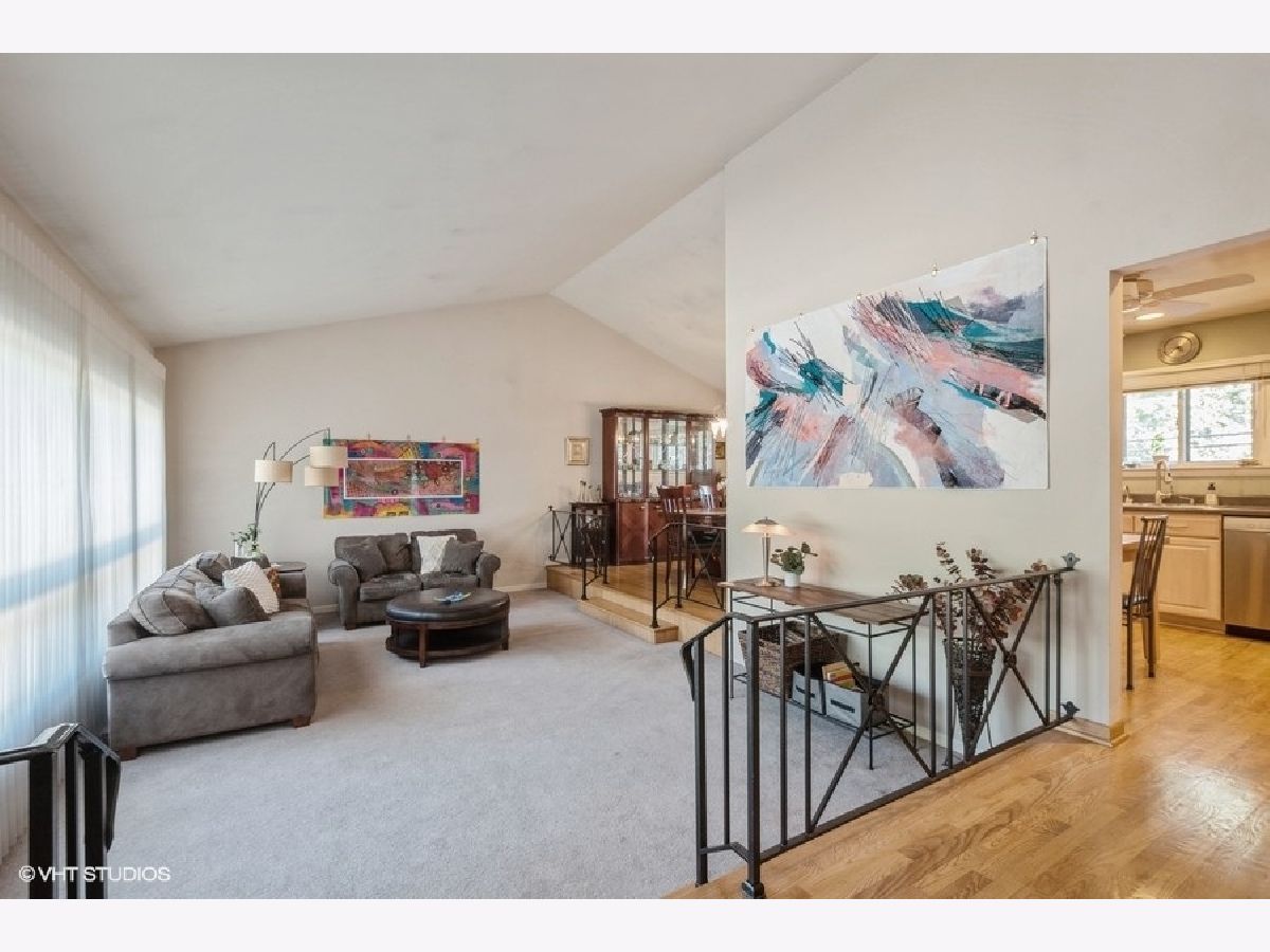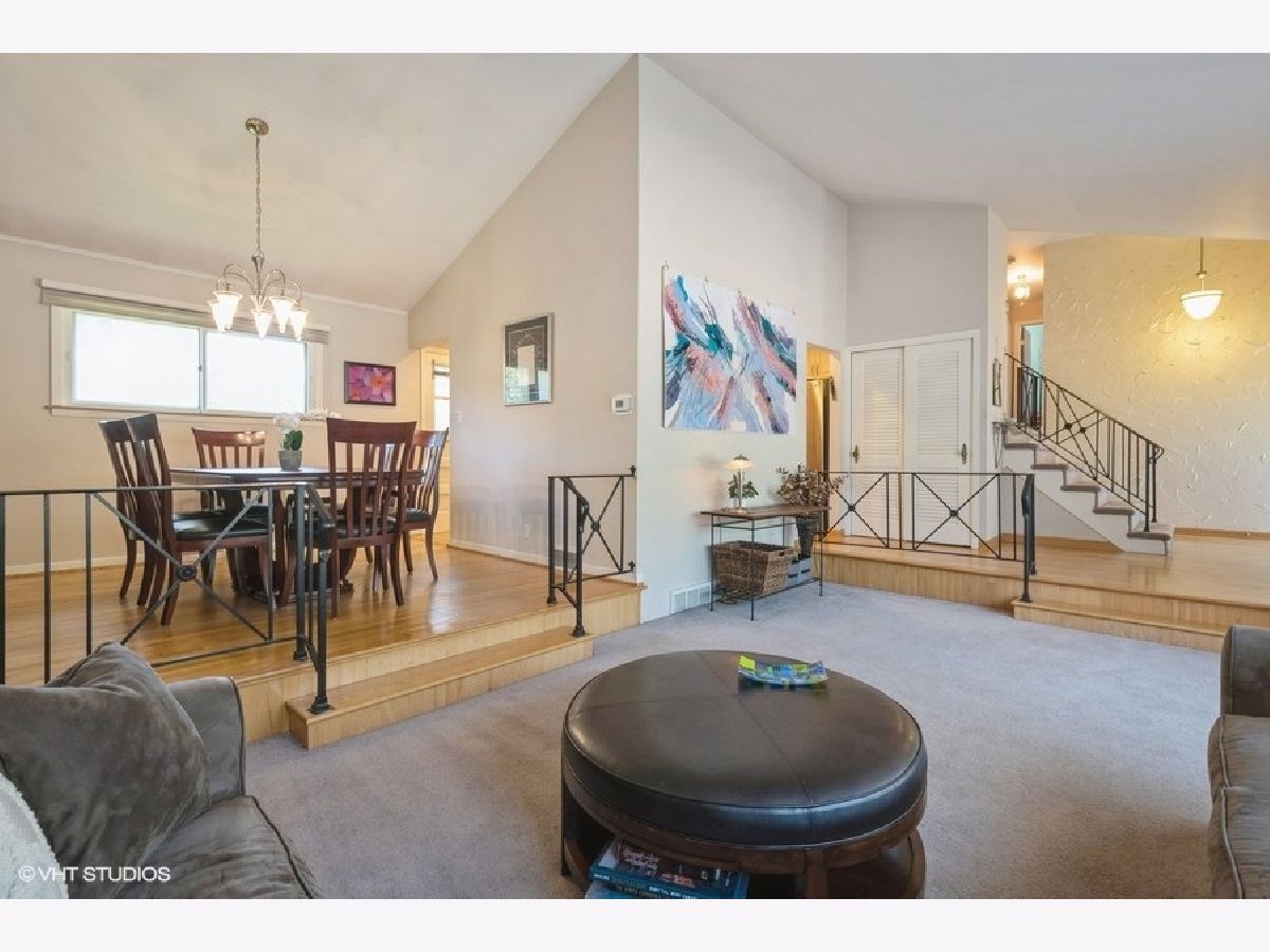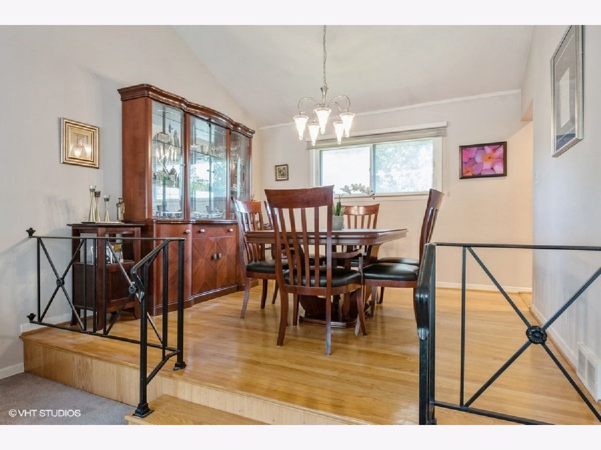 Lovely spacious 4-bedroom split level with sub-basement in great Skokie location. Gracious foyer, bright and airy step-down living room with Cathedral Ceilings, formal dining room with hardwood floors. Eat in kitchen with SS appliances, SS double sink, recessed lighting, ceiling fan, hardwood floors, and plenty of light-color wood cabinetry. Three bedrooms with hardwood floors and full bath up. Lower level with large family room with recessed lights and sliding doors to patio. Second full bath and a fourth bedroom. Attached garage entryway. Down a level to sub-basement with abundant storage. More features include phone control thermostat, closet organizers, ceiling fans, recessed lighting, laundry chute, stylish window treatments, automatic hot water and more. Backyard with patio and wonderful entertaining options. Circular drive-in front with parking for multiple cars. This is a great home close to everything!!!