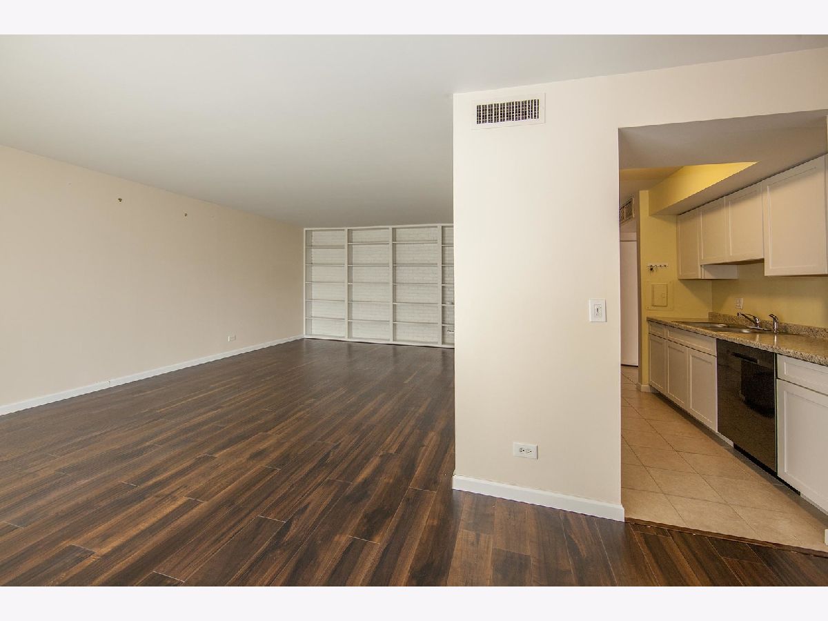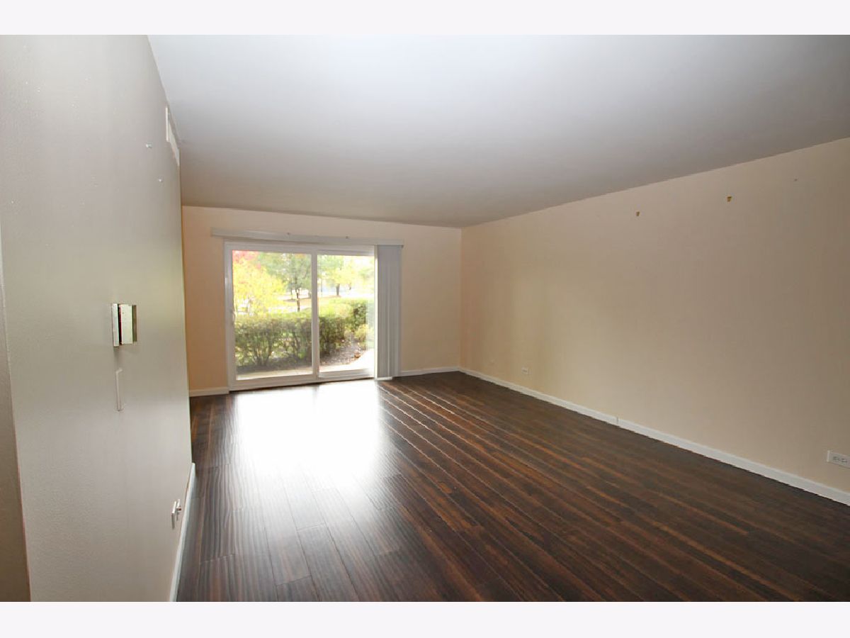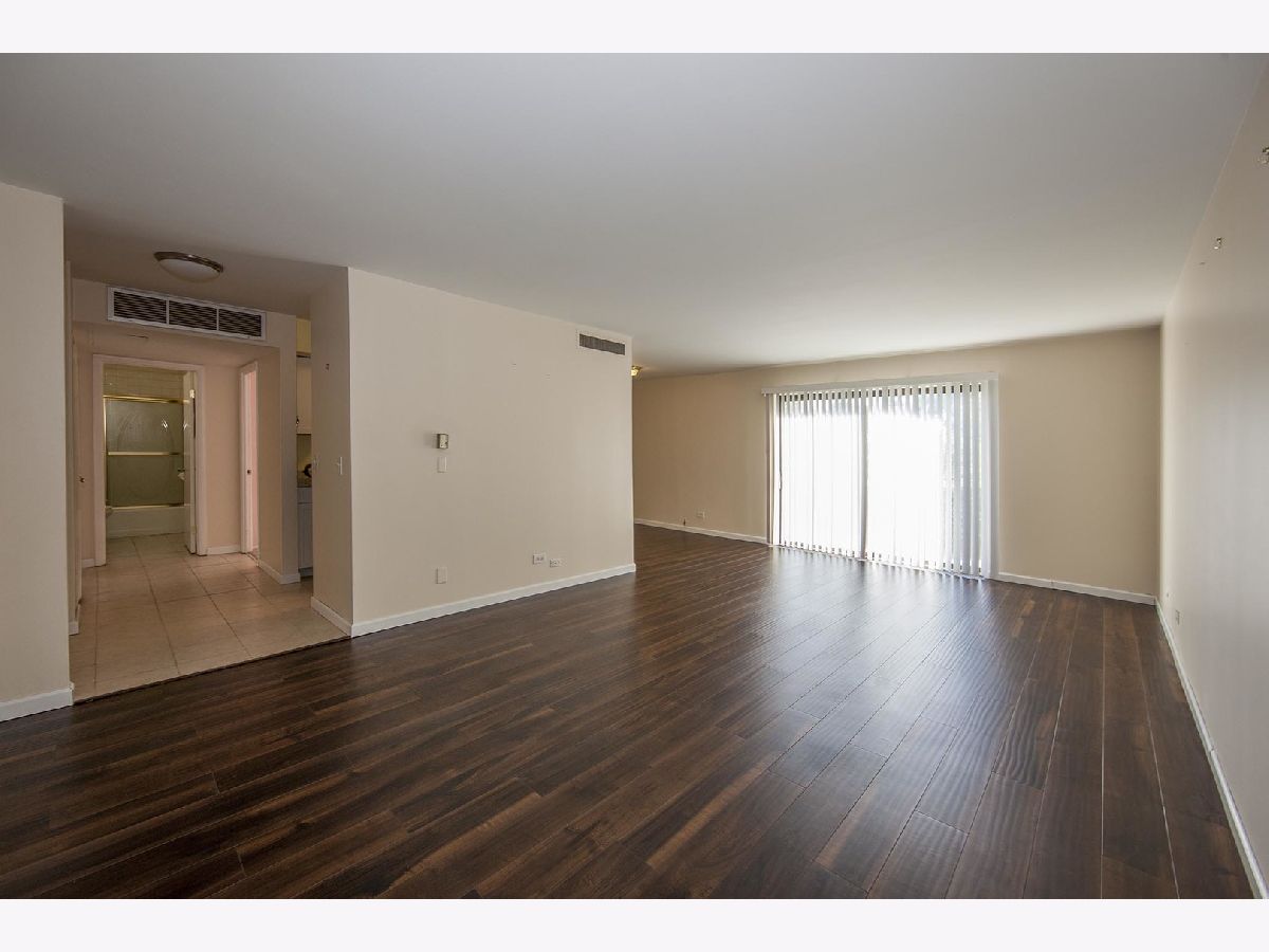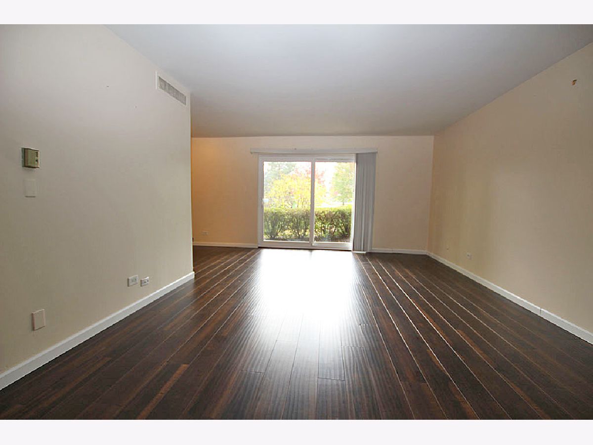 Kitchen remodeled with new cabinets and stainless steel appliances. Living room is enormous and has a wall of shelves and new wood laminate floor that is very attractive. Bathroom updated. Unique floor plan. Large rooms. Easy life style where the association fee covers heat, central air, water, trash, pool, putting green, tennis & lake rights. Walk to shopping, restaurants, coffee shops, movies, library, fitness center or Busse Woods. Enjoy a walk around the private lake. No pets or rentals. Move in ready. Association does allow wood floors if you prefer no carpeting. Very well run building! Brand new patio door! **Taxes do not reflect homeowner exemption**