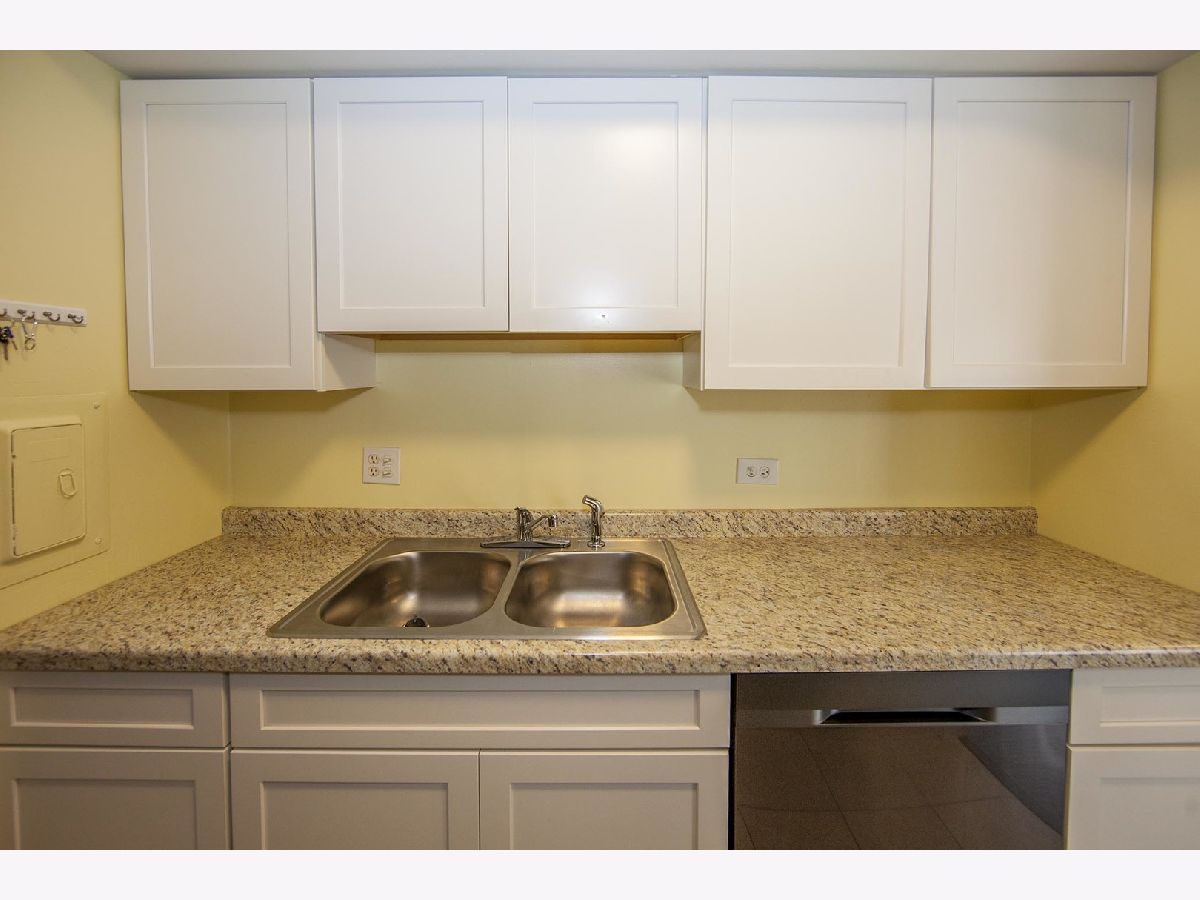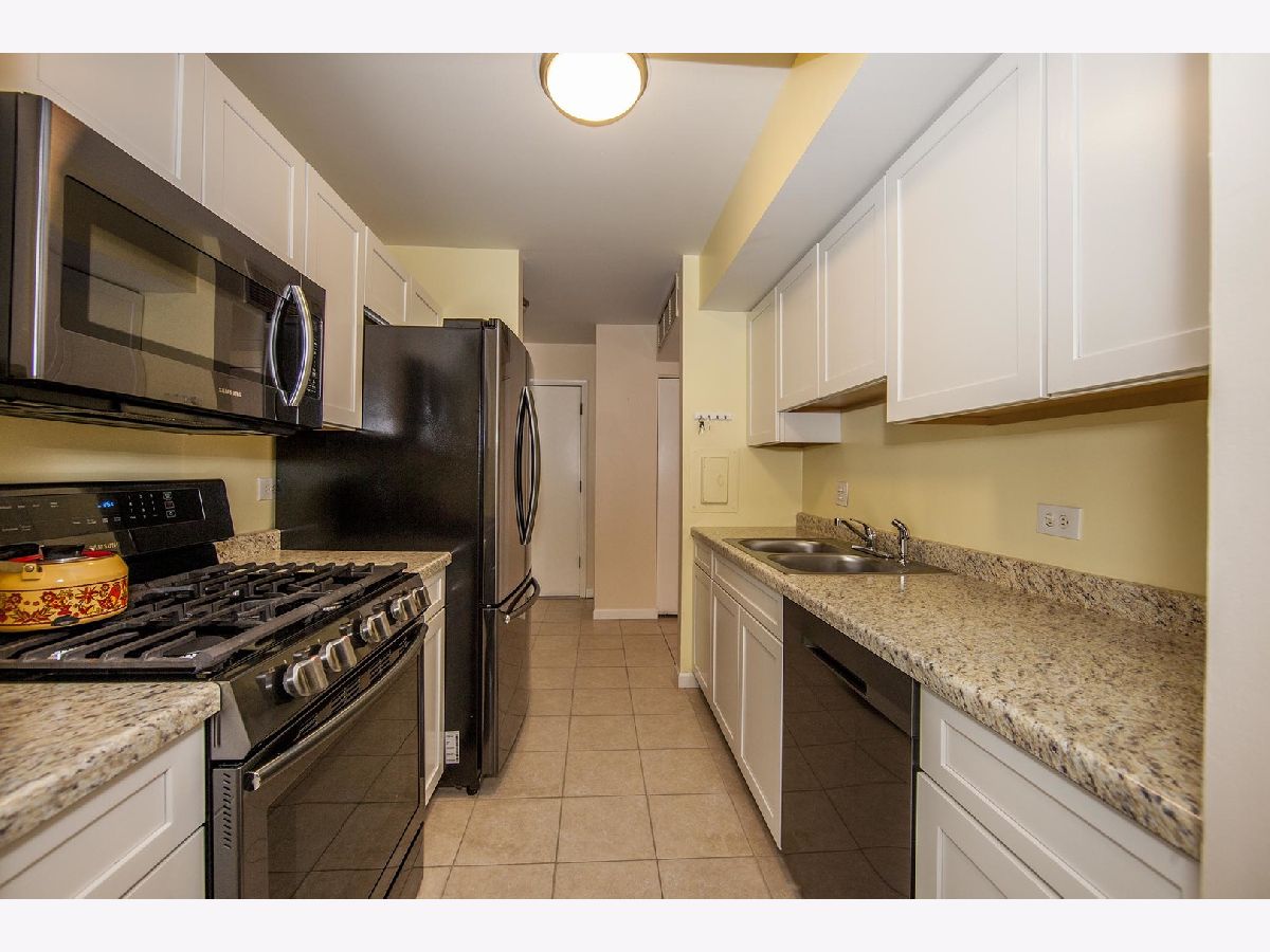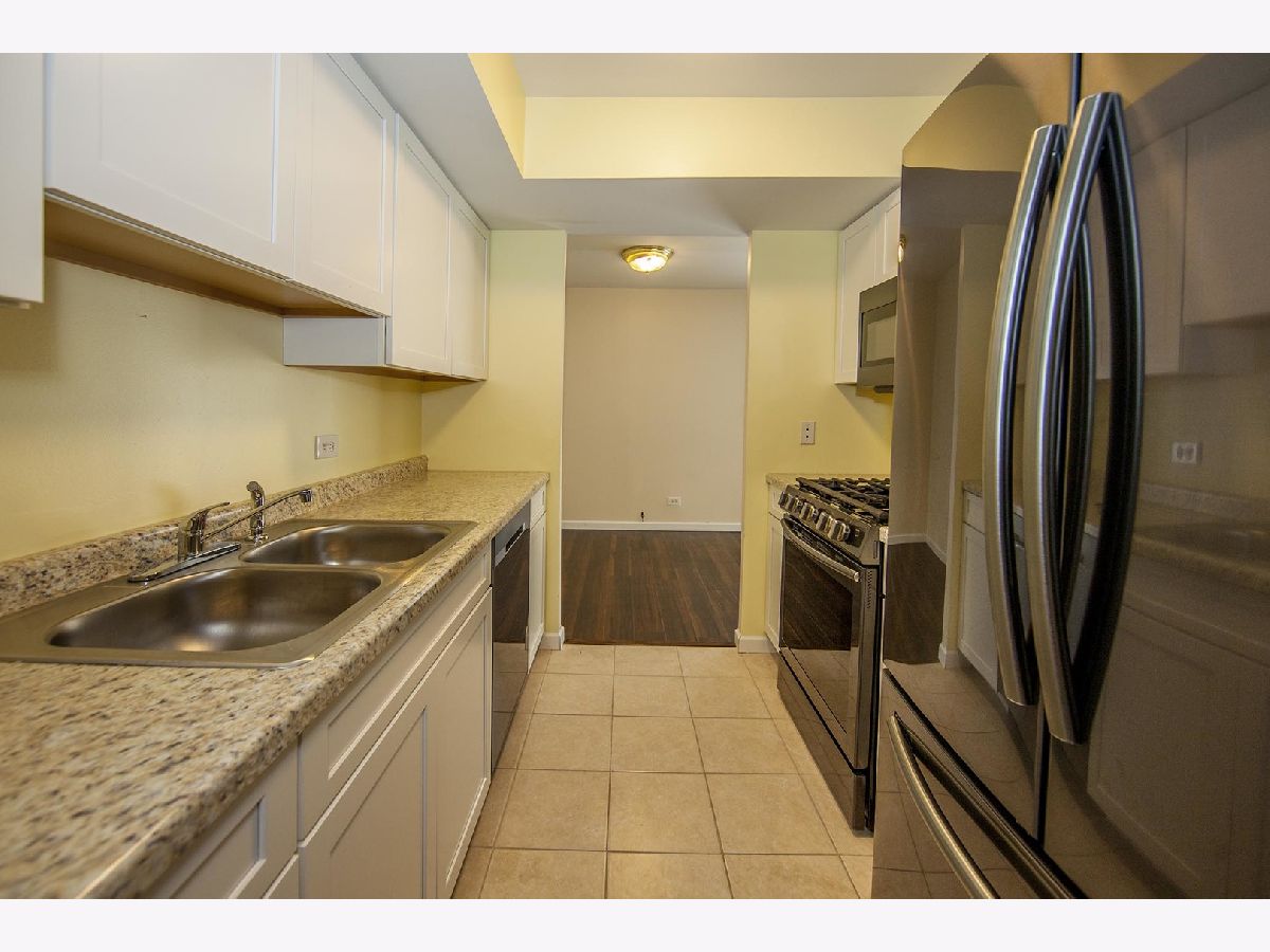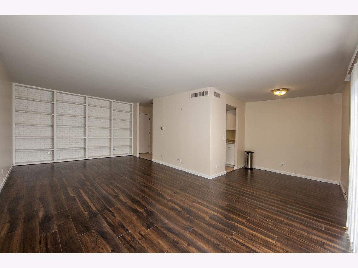 Kitchen remodeled with new cabinets and stainless steel appliances. Living room is enormous and has a wall of shelves and new wood laminate floor that is very attractive. Bathroom updated. Unique floor plan. Large rooms. Easy life style where the association fee covers heat, central air, water, trash, pool, putting green, tennis & lake rights. Walk to shopping, restaurants, coffee shops, movies, library, fitness center or Busse Woods. Enjoy a walk around the private lake. No pets or rentals. Move in ready. Association does allow wood floors if you prefer no carpeting. Very well run building! Brand new patio door! **Taxes do not reflect homeowner exemption**