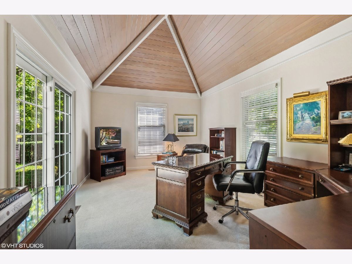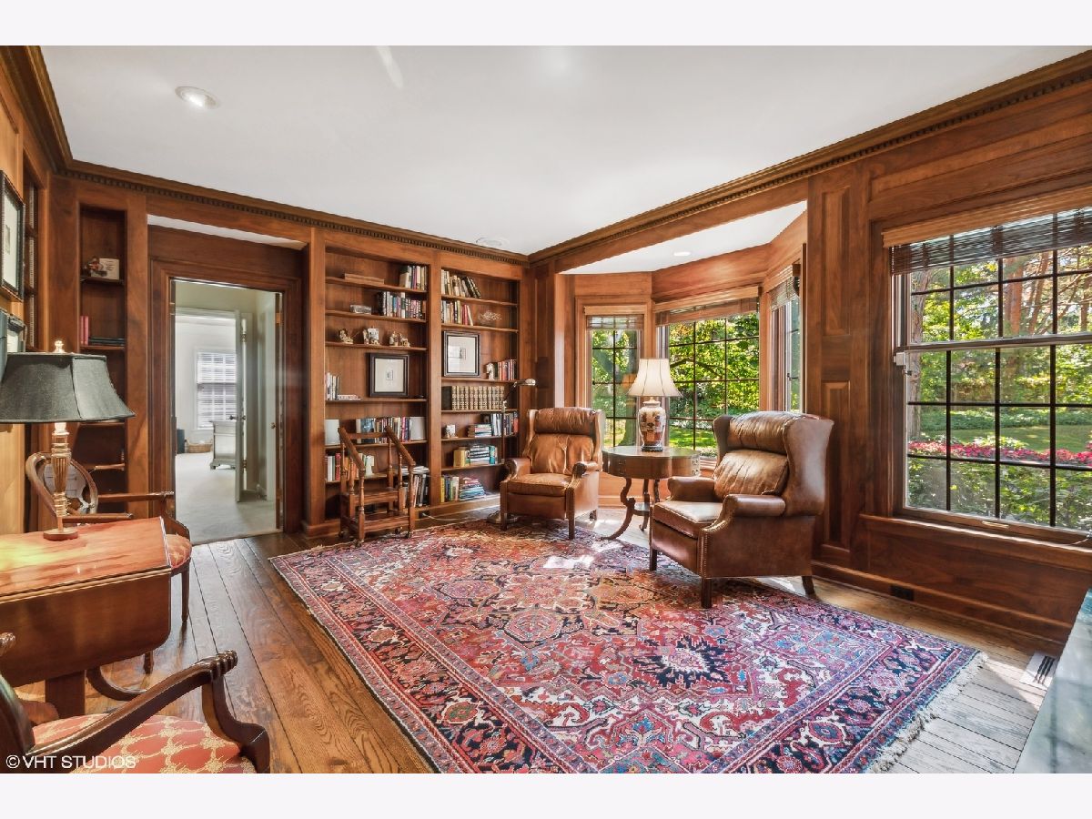 Nestled on a picturesque and private 1.84-acre lot, this stunning brick Georgian estate embodies timeless elegance and meticulous craftsmanship. Thoughtfully maintained, the home boasts a newer DaVinci roof, gutters, and Hardie board siding, ensuring both beauty and durability. Step inside the grand two-story foyer, where a graceful, curved staircase serves as the heart of the home. This central space seamlessly connects the formal living and dining rooms, library, family room, and kitchen, all featuring rich hardwood floors, exquisite millwork, and soaring 9' ceilings. The sunken living room is a highlight, with a classic fireplace, custom built-ins, and a breathtaking picture window overlooking a serene side patio and lush grounds. The distinguished walnut-paneled library, complete with a fireplace and built-in bookcases, offers a cozy retreat. Adjacent to the library is a versatile office with a vaulted ceiling and a private front patio. A full bath next to the office offers the potential for a guest suite. Designed for both relaxation and entertaining, the family room showcases exposed beams, a brick fireplace, a wet bar, and three sets of sliding glass doors that open to an expansive bluestone patio. The chef's kitchen is a true delight, featuring abundant storage, an island, peninsula, breakfast area, and a well-appointed butler's pantry. A sliding glass door from the breakfast room leads to the bright, heated enclosed porch. The formal dining room, with charming corner cabinets, provides the perfect setting for grand dinner parties. A separate mudroom, laundry room, and second powder room add to the home's everyday convenience. Two staircases lead to the second level, where the luxurious Primary Suite offers a private sitting room, dual baths, and multiple walk-in closets. Three additional ensuite bedrooms, plus a spacious guest suite with its own sitting area, complete this level. A walk-up third-floor attic provides excellent storage and potential for future expansion. The finished lower level is designed for fun and functionality, featuring a recreation room, pool table area, craft room, and playroom. The three-car heated garage includes ample storage, cabinetry, and a utility sink. Breathtaking views of the estate's lush, manicured grounds can be enjoyed from nearly every room, while the sunroom and multiple outdoor spaces invite year-round enjoyment of the natural surroundings. This exceptional property is truly a rare find - don't miss your chance to call it home!