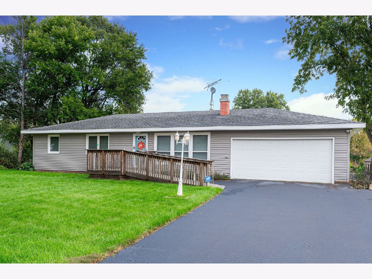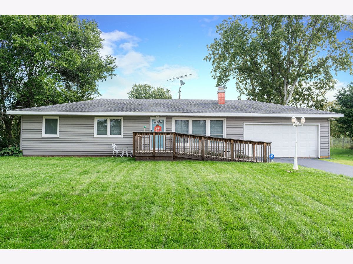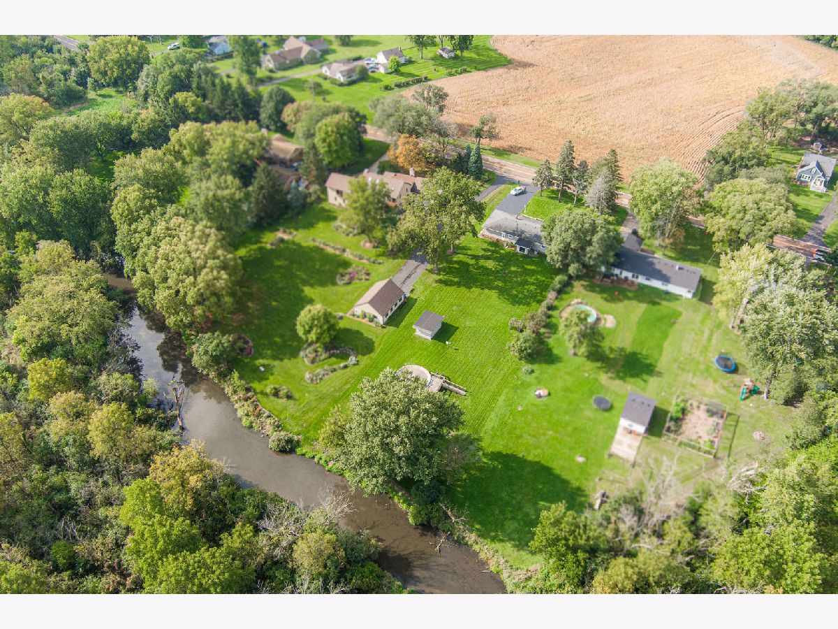 Welcome home to cozy comfort and serene beauty! This Ranch 3-bedroom, 1 bathroom gem situated on a generous .85-acre lot with tranquil blackberry creek gently flowing through your backyard. This property seamlessly blends modern updates with classic charm, offering a four-seasons room for relaxation, an oversized 2 car garage, outdoor shed, above ground pool, and a versatile partially finished basement. Kitchen boasts white cabinets with crown molding, updated hardware, spacious eat in area and the beautiful LVT flooring that runs mostly throughout the home. Living room includes fireplace and lots of natural light. Step outside to an outdoor paradise, perfect for gardening and entertaining in the above-ground pool, all while enjoying the soothing sounds of the creek. Nestled in a tranquil location, you're just a short drive from essential amenities and shopping centers, making this home the ideal combination of peaceful country living with nearby conveniences. Move in ready and mostly updated, this home invites you to start creating cherished memories from day one! New furnace in 2022, new roof on main home will be installed before closing. Lifetime warranty on windows. Home is not in flood plain, but back of lot is due to the creek. No additional insurance is required. Located in Kaneland school district.