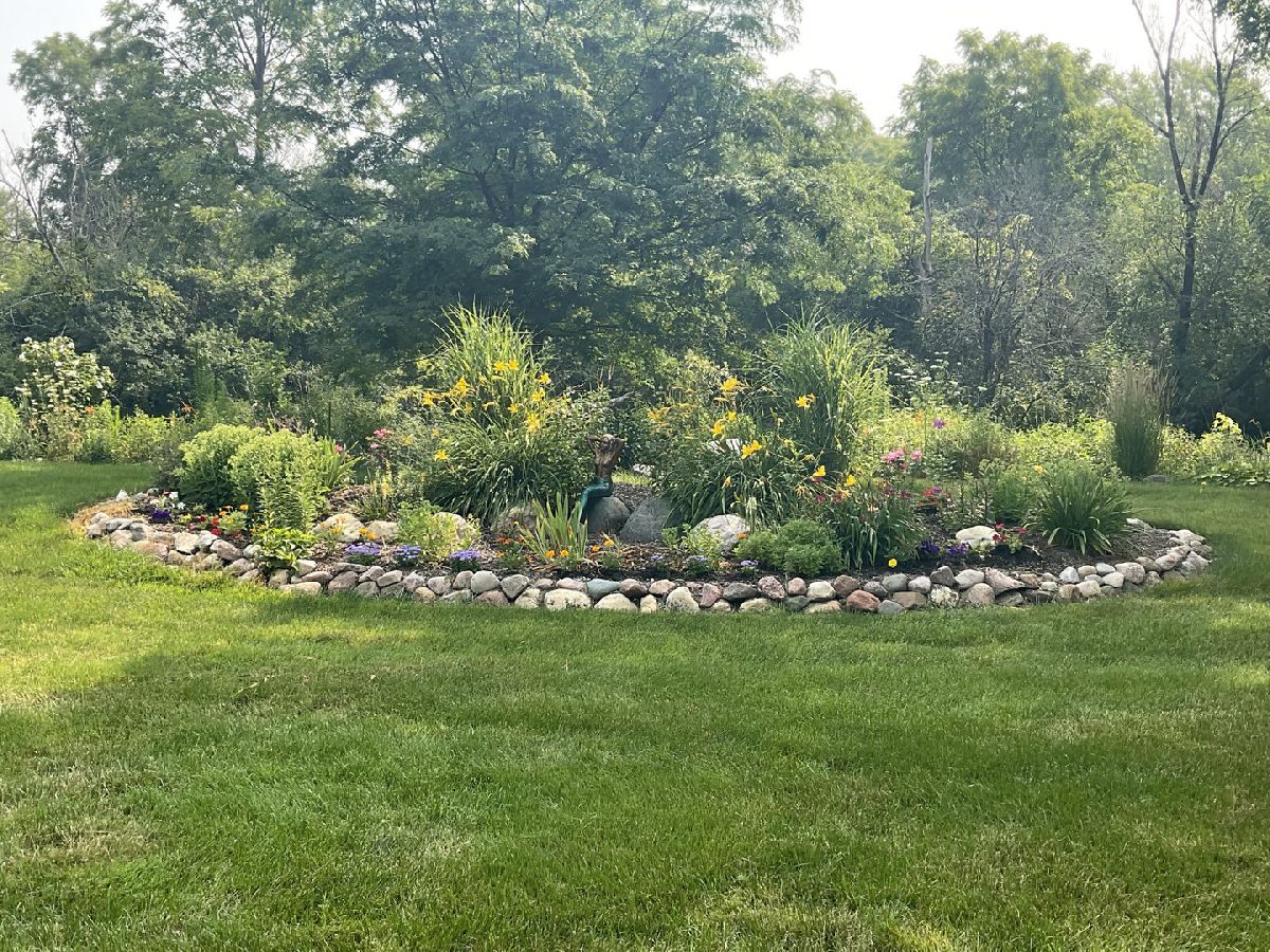 The home located in unincorporated Aurora, IL, is a magnificent SF home re-constructed in 1991 and was fully renovated in 2016. Nicknamed "The Park" by household and friends, this beautiful estate sits on a spacious lot spanning 1.31 acres the back yard sits on Historic BlackBerry Creek . The front of the house faces expansive farmland and neighbors have acre+ lots giving you quiet and privacy. Zoning is FARM and you have room for a Horse. Just add water!! The yard is alive with vibrant color all year long with hundreds of perennials carefully planted by a Master Gardener to provide beautiful blooms throughout the summer and fall. The yard is breathtaking, with stone and paver garden beds carefully arranged in a picturesque setting used by many Brides for wedding pictures. Turn in the drive and enter a country resort with a lovely paver courtyard and stone accented building. A beautiful wood front door welcomes you into the house entryway framed by arched windows. With a combination of old world charm and unique architectural accents the house boasts a total finished area of 4,100 square feet. With 13 rooms you have a space for every mood , and plenty of room for entertaining guests or accommodating a large household. The two-story structure provides a sense of grandeur and elegance, with its impressive architectural design and meticulously maintained exterior. All buildings have new roofs and gutters as of 7/23 and were painted 10/22. Upon entering the home, one is immediately greeted by a welcoming ambiance and a sense of warmth. The interior of the property is tastefully decorated and features highquality finishes throughout. From the moment you step foot inside, you will be captivated by the attention to detail and craftsmanship that went into creating this remarkable abode. The living spaces within the home are thoughtfully designed with custom finishes. The entire home was completely remodeled in 2016 with hardwood, granite, porcelain tile flooring and custom cabinetry throughout. An expanded kitchen features a large Island, a Breakfast Bar, Beverage cooler, Bar sink and huge Pantry. The expansive lot size of 1.31 is a dream outdoor oasis. Built in 2020, a modern 28'x20' porcelain tile patio has a large 12' x 16' Gazebo complete with electrical, fan, lights and a bar shelf. Facing a beautiful wildflower garden just add a fountain , grill and fire pit for a total resort setting. If you prefer indoor comfort with a beautiful view of the yard, you can move to the "little house" just steps away. More like a comfy cottage, this 240 sq ft building is additional living space and has a vaulted ceiling, a small half bath, and is air conditioned and heated. Used as a guest house by current owners this space has unlimited possibilities. Man Cave, She Shack, Kids Playhouse, or Home office make it what best suits your lifestyle. Need a Barn, Workshop or vehicle space? A second driveway entrance will take you to an additional 31'x25' one and a half story building. Zoned F for Farm, Horses are Welcome! Kane County has 17 Horse Trails to enjoy. So many positive features. First, it is located in Unincorporated Aurora/Sugar Grove, you will save thousands in property taxes compared to Aurora and surrounding communities. Second, it is part of Kaneland school district with 6 schools serving the community. Third, the location is a quiet oasis but not isolated as you have access to amazing amenities. Household activities like baseball, Soccer, Swimming, Fishing, Hiking, - even a dog park, are 3-5 minutes away. This includes Blackberry Farm, a household favorite destination. A 15 minute drive in all directions will give you a diverse range of shopping, dining, and entertainment options. Additionally, the property is conveniently located 6 min. from I 88 , 5 min. from Rt 47 along with other major transportation routes making commuting a breeze.