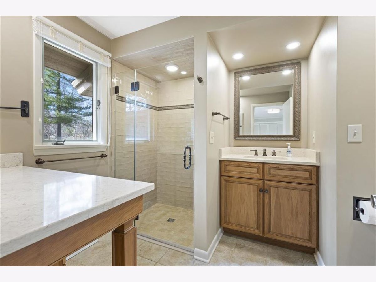 Beautiful & unique home on double lot! Main floor MBR w/remodeled Bath. Hardwoods throughout. Dramatic stone FP's LR & DR. Main floor Laundry. LR features wall of windows to wooded lot. New ($40,000) roof with shake appearance (40 yr roof). Finished LL w/3rd FP, bar, Office and full Bath. Great location near Keith School.