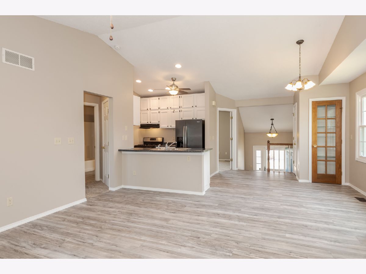 3 Bedroom, 2 Full bath home in Park Place, close to the Lake at White Oak Park! Living room has a cathedral ceiling & wood burning fireplace. Kitchen is open to the living room w/ stainless appliances. Brand new LVP flooring installed in 4/2024 in living room, kitchen & front landing. Dining room area has a built-in buffet. Upper level bathroom has a new vanity, mirror and flooring. New back deck & stairs installed and front handrail installed 4/2024. New siding installed in 1/2024 w/ the house freshly wrapped. All upper level windows replaced within the last 10 years. Furnace & AC are 2 years old. Water heater installed in 12/23. Washer/dryer will stay. Garage door replaced approx 4-5 years ago. This house is ready for someone to move right in!! Showings start on Saturday 4/27/24.