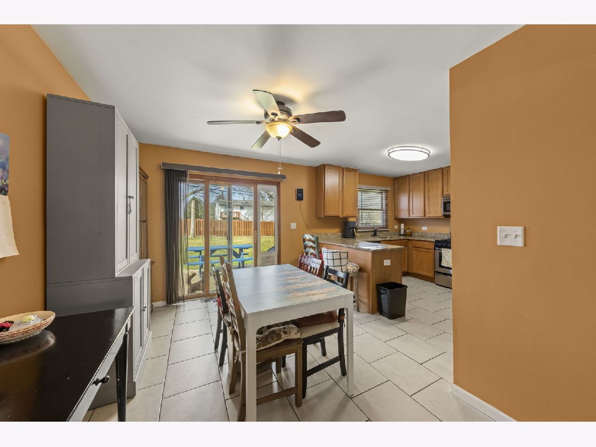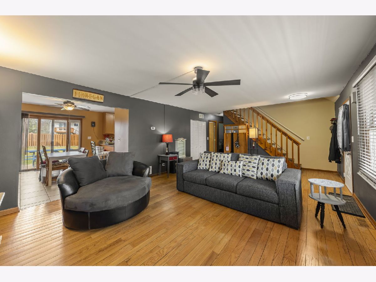 A charming covered front porch welcomes you to this impeccably maintained Lake in the Hills' home. Move-in ready, with numerous improvements including a new hvac, and refrigerator (2023). A newer eat-in kitchen features 42" cabinets, granite counters, stainless steel appliances, and adjoining dining area. Sliding doors off the kitchen area lead to the patio and large, private fenced yard. Entertainers will love the spacious, sun-filled living room with gleaming hardwood flooring. This home features four generously sized bedrooms and two updated baths which include the primary suite with a walk-in closet and private bath with luxurious soaking tub. A deep 2.5 car garage offers extra overhead storage. Convenient location, just minutes to shopping and restaurants, and .5 miles to Indian Trail Beach!
