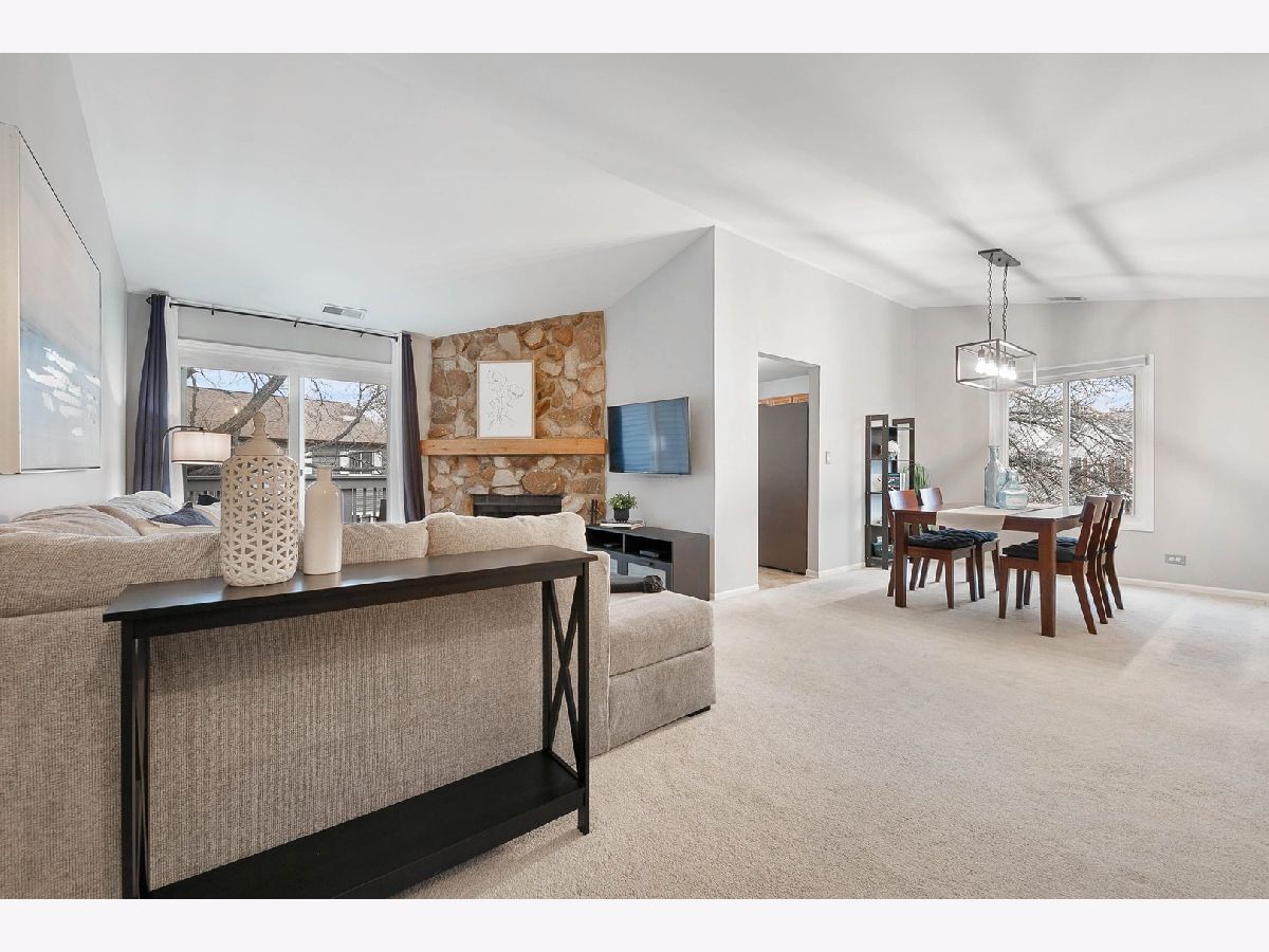 EXCEPTIONAL LOCATION! Gorgeous Ranch Style 2 Bedroom/2 Bath second floor condo tucked away on a quiet cul-de-sac with MAINTENANCE FREE LIVING and ATTACHED 1 car garage in the beautiful Winchester Place Subdivision located in the highly acclaimed, award winning District 203 schools! Freshly painted in a beautiful neutral color scheme, stunning brick fireplace and brand new light fixtures elegantly accent this open floor plan unit. Very roomy with large windows offering great light throughout the day. Beautifully refinished large balcony in 2019 offers plenty of space for seating and grilling! Large eat-in kitchen with bar seating and lots of counter space with it's own coffee bar! Separate slider off the eat-in kitchen. Brand new kitchen appliances in 2021! Two roomy bedrooms each with walk-in closets! Master ensuite has it's own private bath with updated floors! 2nd bedroom has a new custom walk-in closet and hall bath has been recently updated. NEW water heater and NEW washer and dryer in 2022! In-unit laundry and attached garage with extra loft storage. In 2020, the association updated the building with new siding, roof, gutters, shutters and exterior light fixtures! Minutes to downtown Naperville with its fabulous shopping, restaurants and Riverwalk. Convenience and splendor for the outdoor enthusiast just steps away from miles of hiking and biking trails near the West Branch DuPage River Trail system! This home is close to open green space and Old Farm Park with picnic and play area! Winchester Place has its own Clubhouse available to rent for small gatherings! Close to Knock Knolls Park, Nature Center and trails! Privacy, accessibility and convenience...hurry this one will not last long! ***please note that owners are not permitted to rent.
