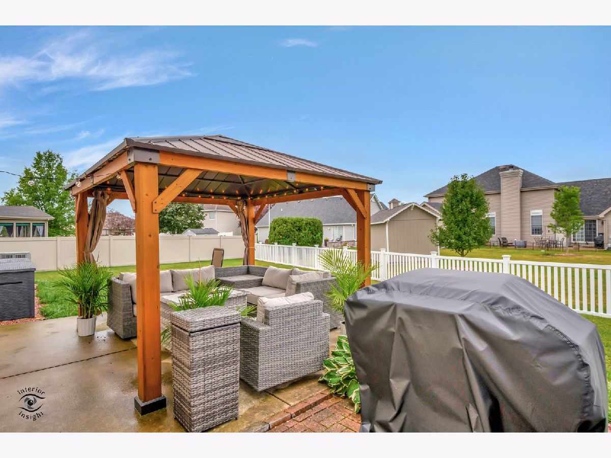 All of the big ticket items have been done for you! Over $80,000.00 in home improvements done recently...most within the last year! Just move in and decorate however you wish! NEW Roof in 2017, NEW furnace and a/c unit in 2021, NEW fence in 2022, NEW windows in 2023, NEW carpet in family room and upstairs in 2021, NEW appliances 2019, NEW carpet in basement 2023, NEWLY painted, NEW Luxury Vinyl Plank on main floor in 2023. **Main floor also has original wood flooring under the Luxury vinyl Planking if you prefer hard wood. All of this in a large golf cart community and close to schools, parks and walking trails! Absolutely beautiful, immaculate home on a large corner lot and a 3 car garage in Manteno's Southcreek Subdivision! 4 large bedrooms, 2.5 baths and an enormous finished basement for all or your entertaining needs! When you first walk in, you are greeted with a high ceiling in the grand foyer, a large window to allow a lot of natural sunlight in, and an exquisite stair case! 1st floor boasts a home office with built ins, which can easily be used as a main floor bedroom. Sizable eat in kitchen with ample amount of cabinet space, stainless steel appliances, an island and separate pantry closet, luxury vinyl plank flooring, massive family room, plus a formal front room and an extra dining room for your holiday parties! Upstairs, overlooks the amazing foyer from the main hallway!! Upstairs is also where you will find the laundry area, complete with cabinets, a pull down table and ironing board section... no more going down the stairs with the laundry basket! All rooms have ample closet space, the Primary bedroom has an en suite with jetted tub and a massive walk in closet! The finished basement is huge with enough space for a pool table, entertainment section with built ins, workout room and so much more! There is also a storage area in basement!! The backyard oasis is fenced in with a patio and permanent gazebo! Call today to see this one of a kind home! You will not be disappointed!
