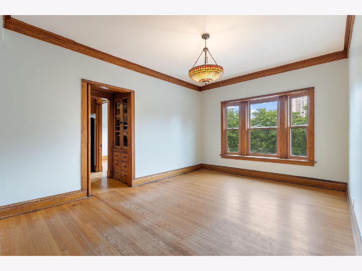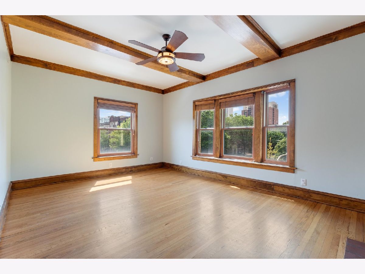 This upgraded and vintage unit is spacious and filled with gorgeous woodwork and amazing views. This corner unit features large and plentiful windows, with long, unobstructed eastern and southern views, many with custom blinds, filling the unit with ample light. The original trim, entry mirror, coat rack, built-ins, beamed dining room ceiling, butler's pantry, original doors, floors and molding throughout are in excellent condition. The living room features a beautiful decorative fireplace and every room is generously proportioned, including each of the three bedrooms. The kitchen has been upgraded with modern conveniences and fixtures including granite countertops, 42" maple cabinetry and stainless appliances. Baths feature a combination of original floors and fixtures, with modern additions. Throughout the unit, there are upgraded lighting and ceiling fans. There is in-unit laundry and a massive common roof deck with enviable city views. Best of all, the unit is located in a walker's paradise. You'll be 1 block to the el, a few blocks to Wrigley Field, walking distance to the Lake and all of the businesses, clubs, restaurants, shops and attractions of the Wrigleyville, Southport Corridor, North Lakeview and North Halsted neighborhoods.