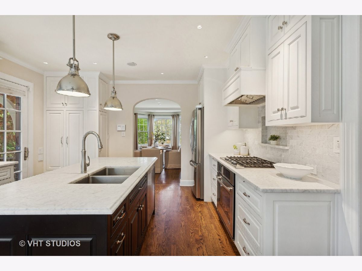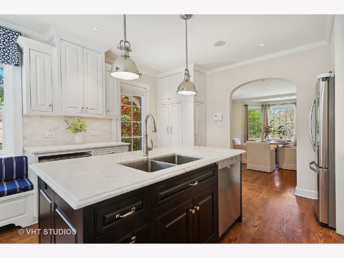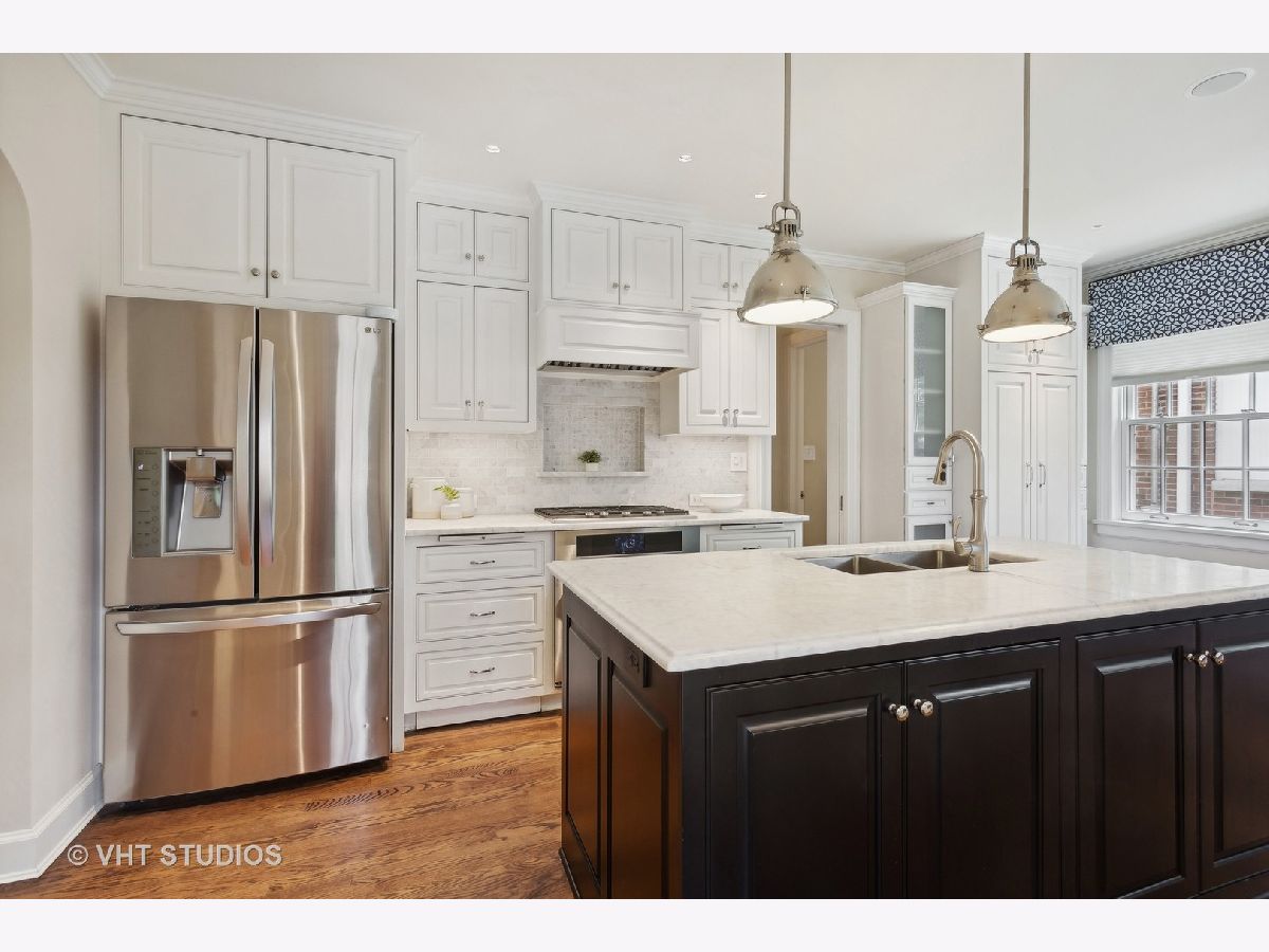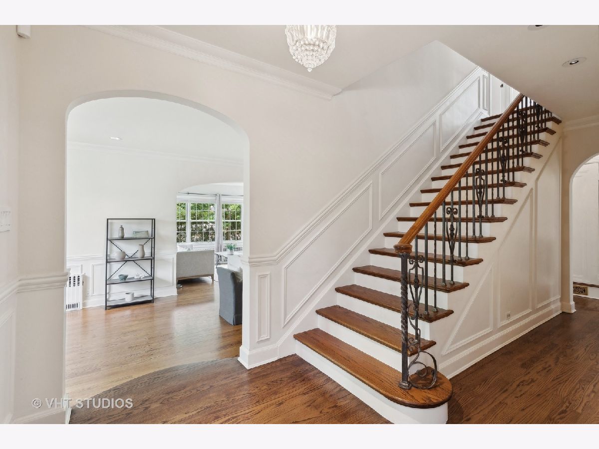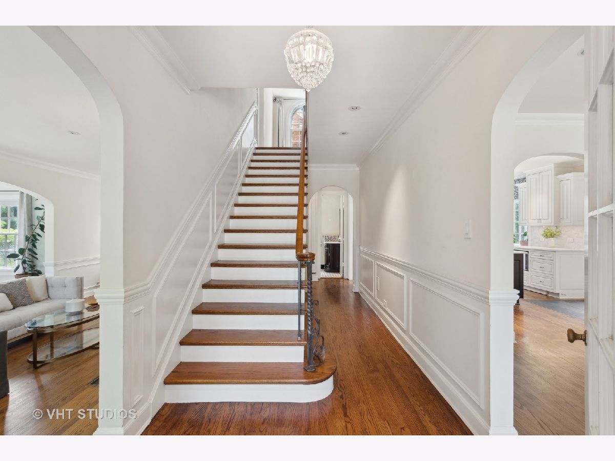 Classic and polished with touches of modern interior design describe this north east Evanston fully renovated brick Georgian home within blocks of Lighthouse Beach, Orrington Elementary School, Central St retail, Evanston Hospital, CTA and Northwestern University. The thoughtful floor plan features architectural details, original moldings, archways, an inviting foyer with a graceful staircase, and an expansive step down living room with a wood burning fireplace, abundance of windows, high ceilings, hardwood floors, and window seating. The adjacent sun room offers more entertaining space or a quiet spot for conversation. The spacious formal dining room with bay window opens into the sunlit renovated kitchen featuring custom cabinets, pantry wall, marble counters and tiled backsplash, top of the line appliances, a large center island, and banquette seating along the western/southern walls. The redesigned second floor features a newly configured primary suite with a large corner bedroom, an organized walk-in closet, and a marble tiled bathroom with soaking tub, walk-in shower and double sink vanity - plus access to the second floor deck. Two additional bedrooms and a newly renovated hall bathroom complete the second floor. The fully finished walk-out basement includes a fourth bedroom, recreation/family room, home office/exercise room, new bathroom, laundry/utility room and storage room. Outside, you will enjoy the professionally designed stone terrace perfect for summer entertaining, perennial gardens, sprinkler system, the two car brick garage and driveway for extra parking. Recent improvements include: replacement windows, two zoned AC, relined chimney flue, new roof, new bathrooms, tuck pointing, exterior painting new basement flooring and more!