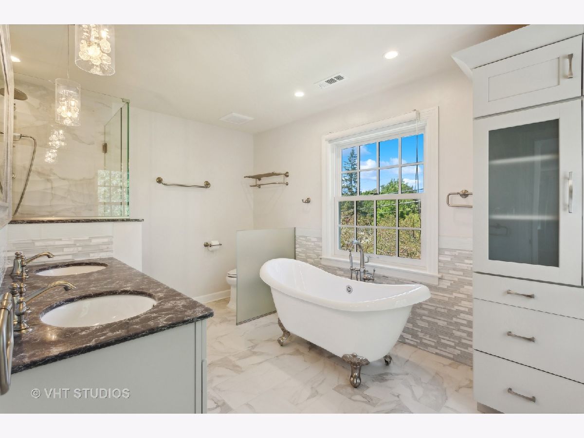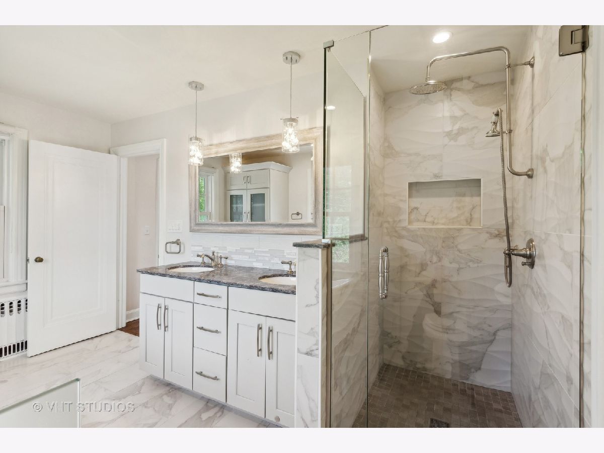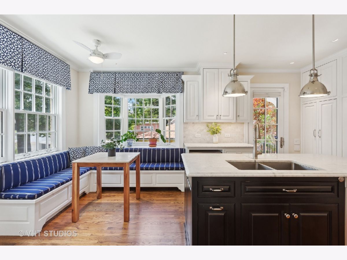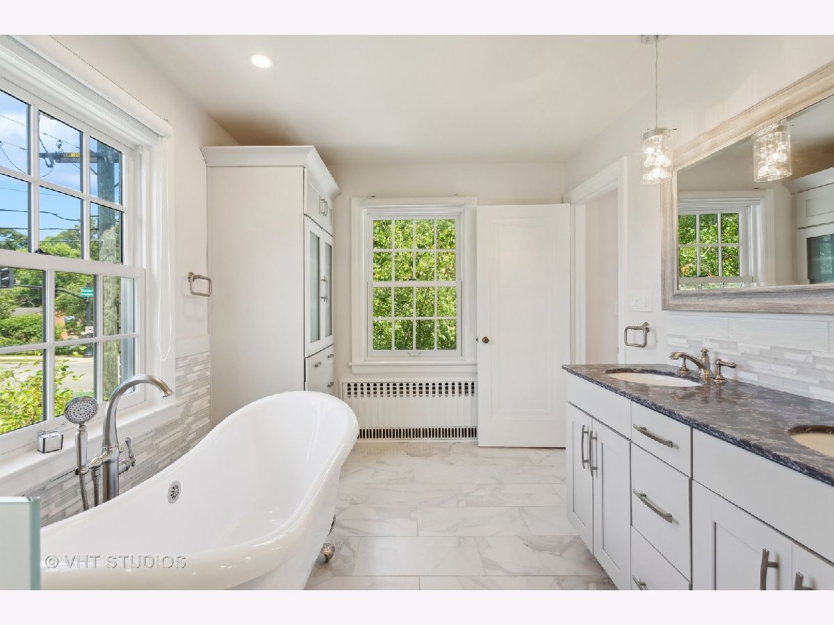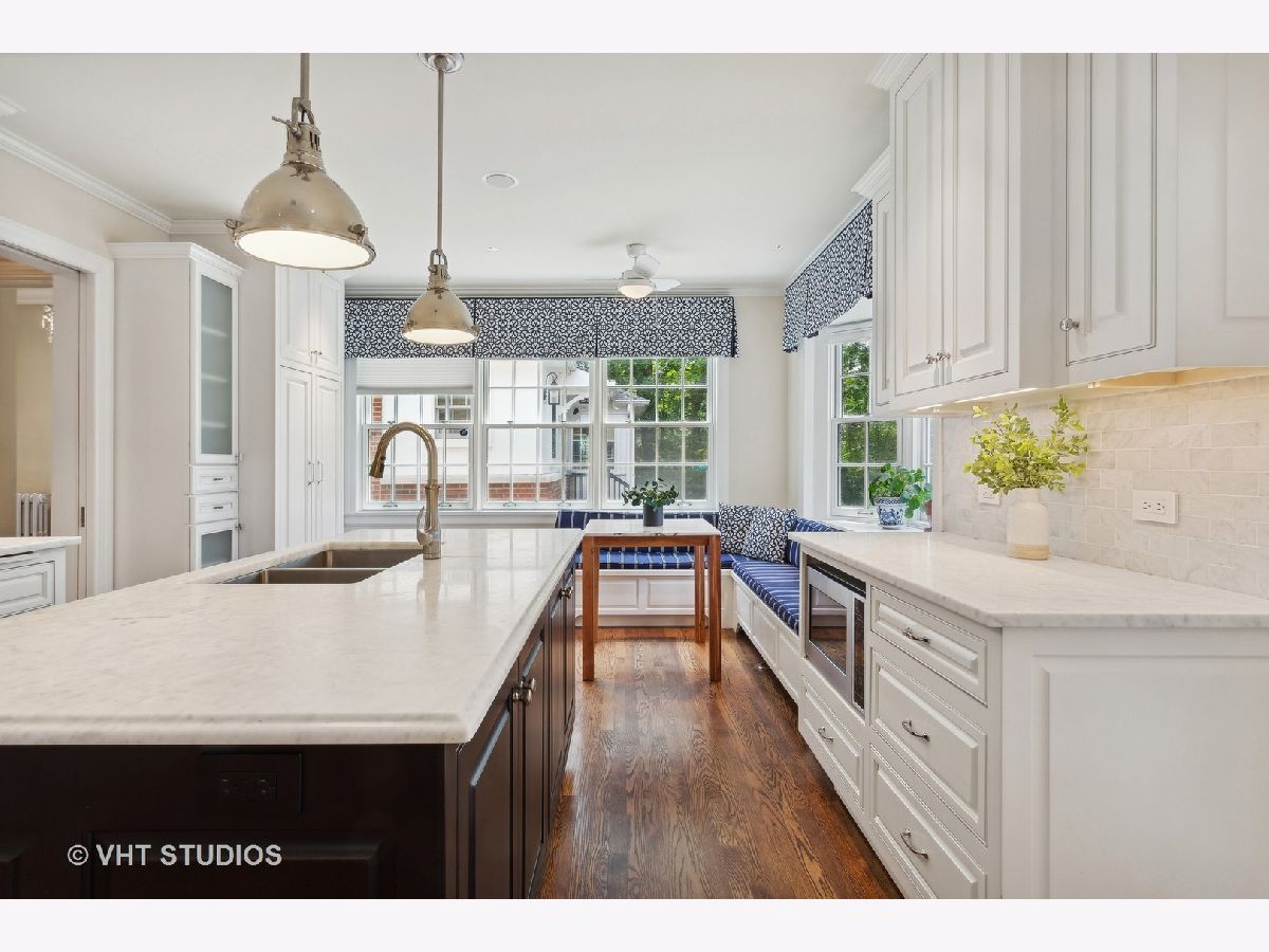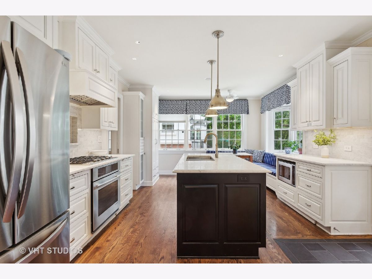 Classic and polished with touches of modern interior design describe this north east Evanston fully renovated brick Georgian home within blocks of Lighthouse Beach, Orrington Elementary School, Central St retail, Evanston Hospital, CTA and Northwestern University. The thoughtful floor plan features architectural details, original moldings, archways, an inviting foyer with a graceful staircase, and an expansive step down living room with a wood burning fireplace, abundance of windows, high ceilings, hardwood floors, and window seating. The adjacent sun room offers more entertaining space or a quiet spot for conversation. The spacious formal dining room with bay window opens into the sunlit renovated kitchen featuring custom cabinets, pantry wall, marble counters and tiled backsplash, top of the line appliances, a large center island, and banquette seating along the western/southern walls. The redesigned second floor features a newly configured primary suite with a large corner bedroom, an organized walk-in closet, and a marble tiled bathroom with soaking tub, walk-in shower and double sink vanity - plus access to the second floor deck. Two additional bedrooms and a newly renovated hall bathroom complete the second floor. The fully finished walk-out basement includes a fourth bedroom, recreation/family room, home office/exercise room, new bathroom, laundry/utility room and storage room. Outside, you will enjoy the professionally designed stone terrace perfect for summer entertaining, perennial gardens, sprinkler system, the two car brick garage and driveway for extra parking. Recent improvements include: replacement windows, two zoned AC, relined chimney flue, new roof, new bathrooms, tuck pointing, exterior painting new basement flooring and more!