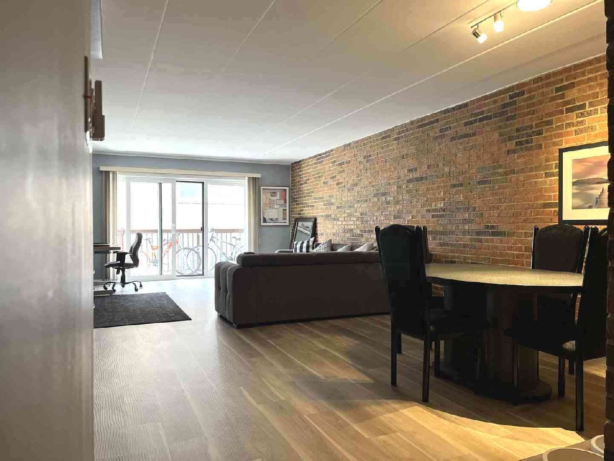 Excellent location! Quiet neighborhood, yet it's only 3 blocks from downtown Des Plaines. Entertainment, restaurants, local cafes & shopping are all so close. This 1250 sq ft, spacious 2-bedroom 2- bathroom unit has a nice open layout with exposed brick walls throughout the unit giving it a "Loft" like feel. The 15 X 9 kitchen has been opened up by removing a wall, which adds more room for those who like to cook! Generous counter space & hardwood cabinets. The adjacent 8.4 X 12 dining space has room for a large table & chairs and flows over into the 16 x 14.4 living room that opens to the 12.5 X 5 balcony. Both bedrooms are spacious and feature lots of closet space! The primary bedroom includes dual closets. Additional linen closet in hallway. Newer items include balcony doors 11/24, new coil on furnace 1/25 and recent garage door maintenance 2/25. Special assessment for structural posts & beams has been paid by owner already. Flooring & paint are a few years old. Take in some early sunlight & evening air on the large balcony, perfect for your morning coffee or late afternoon grilling, with room for a bistro set! There's a convenient in-building fitness center plus nearby trails & parks for your active lifestyle year-round. Coin laundry room just outside the unit door! Upgraded intercom/buzzer works with your cell phone. Just 10 minutes from the terminals at O'Hare, about 5 minutes to 294 & 90 and the Metra station is conveniently located in downtown Des Plaines, just 3 blocks away. Schools & parks all nearby. Your pets will feel welcome in this condo community with no restrictions on weight or breed. Currently rentals are not allowed BUT it's in the review process with the HOA board. The HOA has strong reserves.