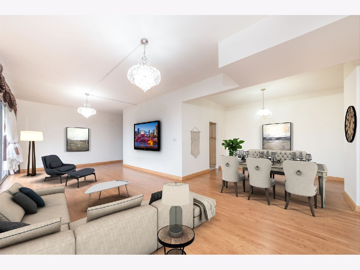 Sunny northwest suburban corner condo on top floor with unobstructed views of the Chicago Skyline. This large 2 bedroom 1.5 bath unit features approximately 1500 sq. ft. of living space, upgraded "Real" oak hardwood floors throughout. balcony off living room with amazing views. The kitchen features maple cabinets, ceramic tile flooring and newer stainless steel appliances. Check out the large room sizes. This building is unique with many common area updates. The parking lot was resurfaced in 2020, new pool fence, newer carpeting and paint in hallways, updated lobby, upgraded laundry room with 6 newer washers and dryers. unit has one assigned parking and one visitor parking pass. There is one assigned storage space on first floor. Assessments include: heat, water, common insurance, exterior maintenance, swimming pool with changing room, outside picnic area and much more. Close to shopping, restaurants, transportation, schools and I 294. Well funded building with over $1.4M in reserves.