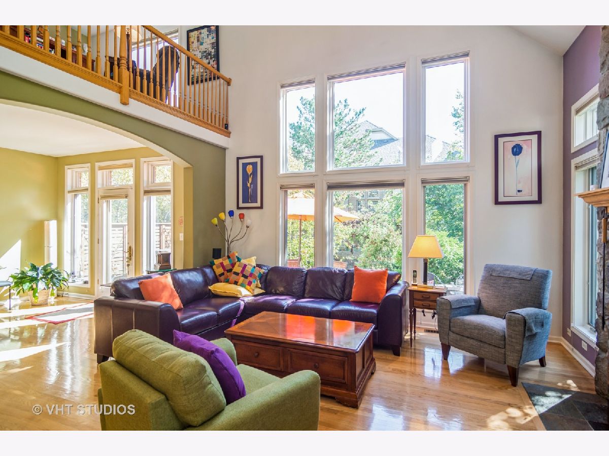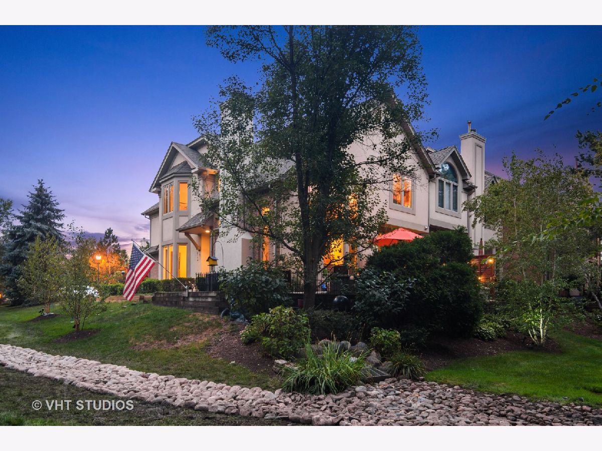 Sutton Park Place offers unique luxury homes, and this one is hard to beat. The offering is a Claremont Model located adjacent to a natural wooded preserve that runs laterally along the sight line form the southern exposure front door. One of the largest in the complex, it features 2 bedrooms, a loft with a view, and 3.1 baths. This end unit property features a custom cement patio with dramatic seat wall that allows you to enjoy the ambiance and beauty of the wooded outdoors. Two sets of custom patio steps have LED lighting with dusk to dawn auto on/off, which softly light leisurely evenings. Once inside, you see the real beauty of this home. The vaulted two-story family room greets you when you walk in with an open staircase. The wood burning fireplace, converted to natural gas with starter, warms family and friends during cold winter months or, on a whim! The full first floor, including kitchen, eating area, and dining room boast hardwood floors, offer stainless steel appliances, oak cabinets, granite countertops, and an island. Upstairs, you find an open loft; a perfect venue for working from home. The primary bedroom has a beautiful, vaulted ceiling, double full closets Plus a walk-in, and an en suite that includes double sinks, a separate shower, and a Jacuzzi tub. The guest en suite boasts a large walk-in closet and private, secured full bath. The laundry room is down the hall from the primary bedroom offering amazing convenience. But there is still more to this awesome home. The full finished basement offers ample entertainment space with separate rooms for a work bench/room and mechanicals, sump pump with battery back-up and storage, as well as a possible in-law arrangement with full wall closet. The lower level, dual entry bath includes a custom walk-in shower. Additional features in this home: whole house fan, full insulated attic (2016), power vent fan, all new Pella windows (2010), Roof (2019), Furnace/AC/ water heater and Aprilaire (2020), the heated 2-car garage has epoxy flooring, is freshly painted and is as clean as the interior! This home is professionally landscaped and provide carefree living via included lawn are and snow removal. This terrific location is close to Illinois 53/355, Palatine Metra, shopping, and restaurants. Don't pass this one up!