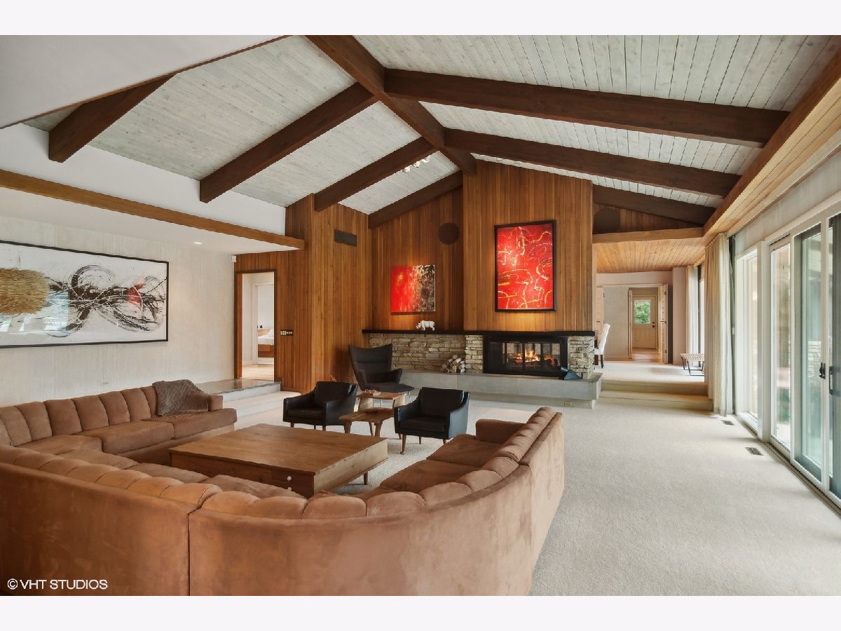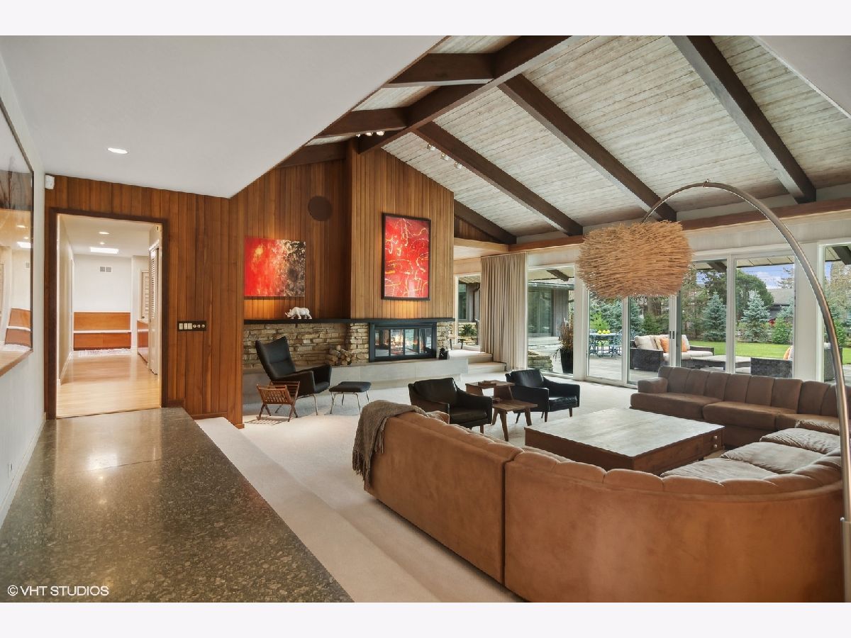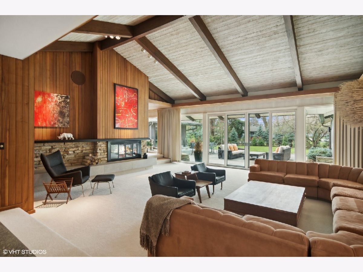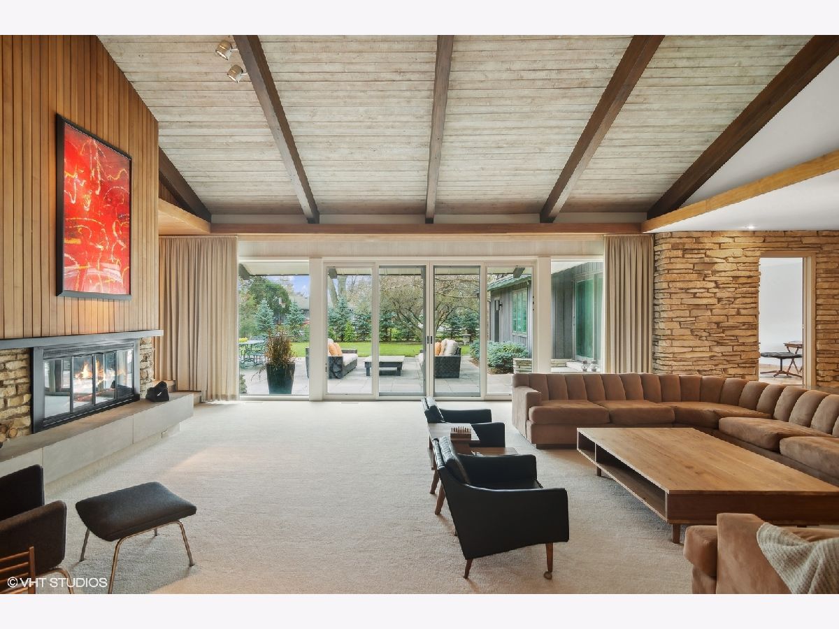 Luxury living in this Mid- Century modern expansive 4500 sq foot ranch home, located on half acre in sought after Scarsdale Estates. The home offers 4 bedrooms, 4 1/2 baths; all bedrooms with own en-suites. Stunning great room boasts an 18-foot vaulted ceiling with floor-to-ceiling Pella architectural series windows overlooking a picturesque yard. The beautifully renovated custom kitchen has all the modern day amenities any cooking enthusiast would love, including stainless commercial-grade appliances, quartz counters with seating, eating area, open to large family room with vaulted ceiling, beautiful stone gas log fireplace. Private home office overlooking generous patio. Loads of additional storage located on main level. The lower level features 9ft ceilings and a bar area perfect for all your entertaining needs. Sellers added a separate third garage stall with epoxy flooring, radiant heating roughed in, additional extra space for endless possibilities. Some of the many home's upgrades include new Roof and 200 Amp Electrical panel 2025, additional upgrades can be found in additional information. The home's authentic Mid- Century architecture is one of a kind. Walk to parks, school's, Metra, and down town Arlington Heights. This home is a gem!