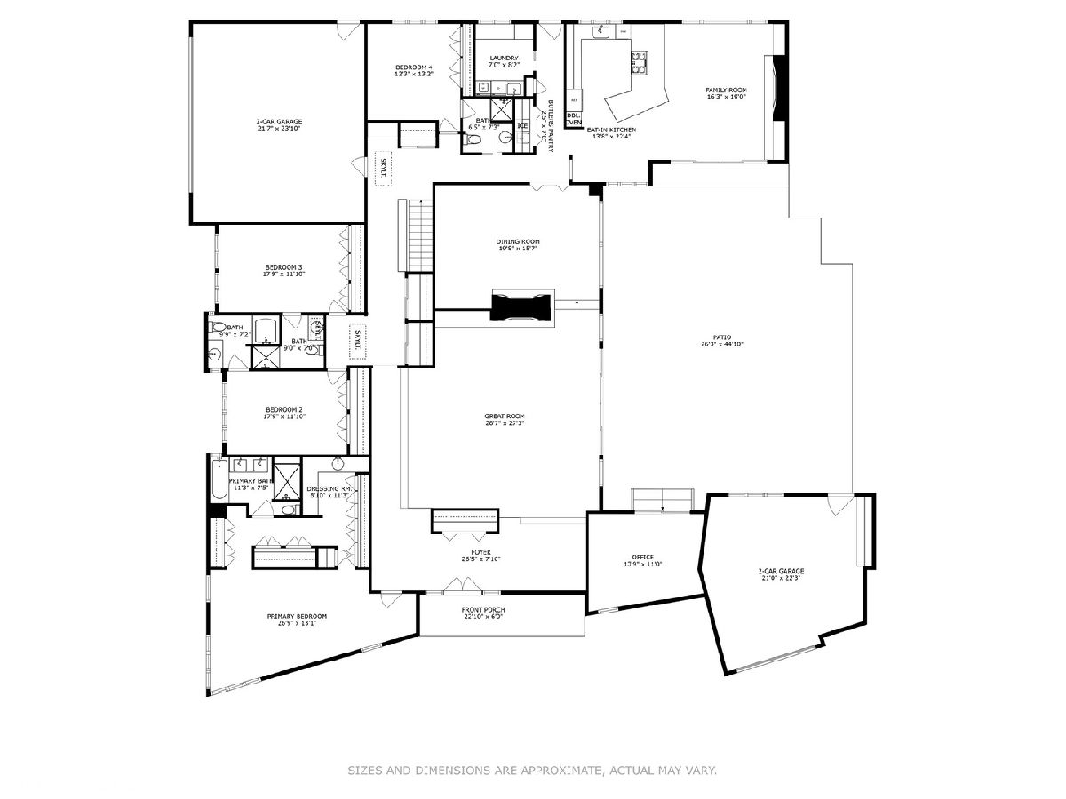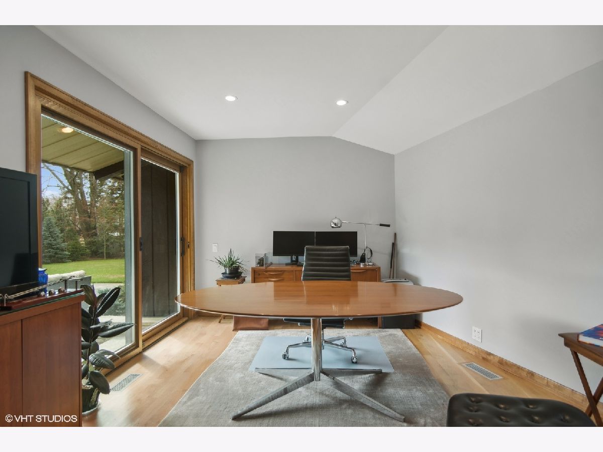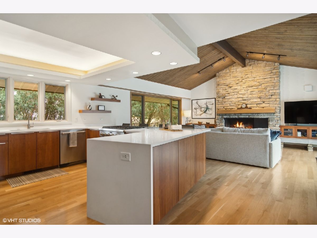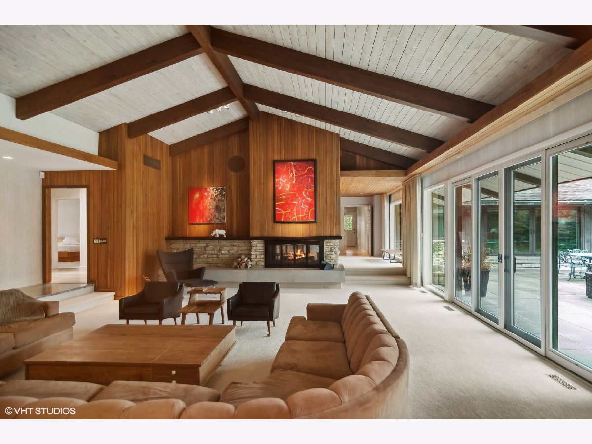 Luxury living in this Mid- Century modern expansive 4500 sq foot ranch home, located on half acre in sought after Scarsdale Estates. The home offers 4 bedrooms, 4 1/2 baths; all bedrooms with own en-suites. Stunning great room boasts an 18-foot vaulted ceiling with floor-to-ceiling Pella architectural series windows overlooking a picturesque yard. The beautifully renovated custom kitchen has all the modern day amenities any cooking enthusiast would love, including stainless commercial-grade appliances, quartz counters with seating, eating area, open to large family room with vaulted ceiling, beautiful stone gas log fireplace. Private home office overlooking generous patio. Loads of additional storage located on main level. The lower level features 9ft ceilings and a bar area perfect for all your entertaining needs. Sellers added a separate third garage stall with epoxy flooring, radiant heating roughed in, additional extra space for endless possibilities. Some of the many home's upgrades include new Roof and 200 Amp Electrical panel 2025, additional upgrades can be found in additional information. The home's authentic Mid- Century architecture is one of a kind. Walk to parks, school's, Metra, and down town Arlington Heights. This home is a gem!