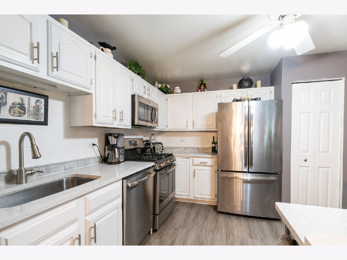 Sought after first floor Sycamore model in Old Orchard Country Club sub-division. Spacious floor plan with updates you've been looking for. Newly painted with all one year old appliances. All recently installed windows for very low utility bills. 2 spacious bedrooms and 2 full baths with a large master bedroom and custom walk-in closet. Ceiling fans thru-out. Kitchen has a wide open floor plan, plenty of cabinets, stainless steel appliances, with quartz countertops. Living RM has a cozy fireplace with a custom mantel and marble surround. This immaculate well cared for home also includes a large enclosed 3 seasons sun room overlooking a beautiful landscaped backyard. Walk to the clubhouse and pool and close to train, shopping and entertainment. One year buyers home warrantee included.