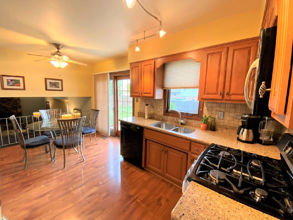 WELCOME HOME! METICULOUSLY MAINTAINED ONE-OWNER SPLIT LEVEL ON A SPRAWLING CORNER LOT. WELCOMING FOYER W/WOOD LAMINATE FLOORING & COAT CLOSET LEADS YOU TO LIVING ROOM (PELLA BOW WINDOW '05) & FORMAL DINING ROOM. KITCHEN UPDATED IN '06: CABINETS REFACED, QUARTZ COUNTERS, SINK, FAUCET & WOOD LAMINATE FLOORING (FULLY APPLIANCED W/STOVE & REFRIG '06, DISHWASHER '04 & MICROWAVE '21), TABLE AREA & PELLA SLIDING DOORS TO THE PATIO IN A LARGE FULLY PRIVACY FENCED IN YARD. MARVIN WINDOWS IN ALL 3 BEDROOMS '99. MAIN BEDROOM HAS NEW LIGHTED CEILING FAN '21 & THE ADD'L 2 BEDROOMS HAVE ELECTRIC ACCESS IN CEILING. LOWER LEVEL FAMILY ROOM OFF OF THE KITCHEN WITH GAS LOG FIREPLACE (OR CAN BE WOOD BURNING), MARVIN WINDOW '19. SHOWER BATHROOM. LAUNDRY ROOM WITH UTILITY TUB (FREEZER STAYS TOO), WASHER/DRYER '08, TANKLESS HOT WATER HEATER '09 & MARVIN WINDOW '09. 97% EFF. FURNACE, A/C & HUMIDIFIER REPLACED IN '14. STORAGE CLOSET HAS ACCESS TO CEMENT CRAWL SPACE W/SUMP PUMP & NEW EJECTOR PUMP SEPT '21. ROOF '02. VINYL SIDING '07. CONCRETE DRIVEWAY '06 TO ATTACHED 2 CAR GARAGE. WALK TO THE GORGEOUS VILLAGE SQUARE PARK & ENJOY ALL THE AMENITIES ORLAND PARK HAS TO OFFER. 13MO HWA HOME WARRANTY INCLUDED TOO!