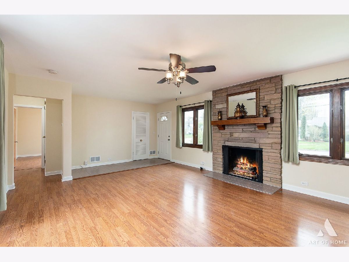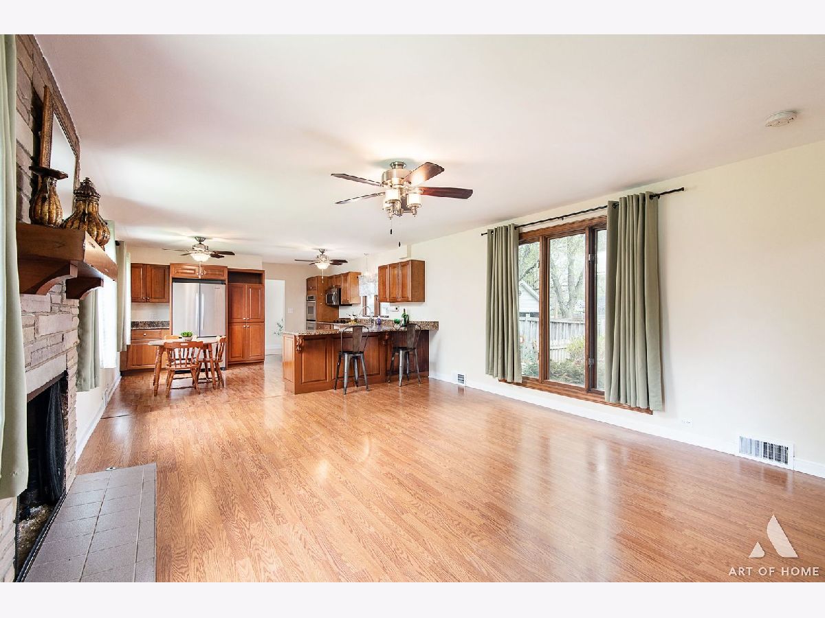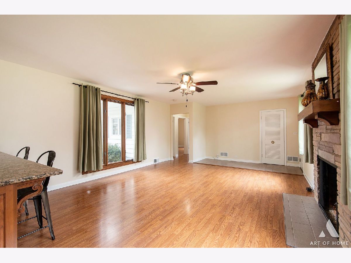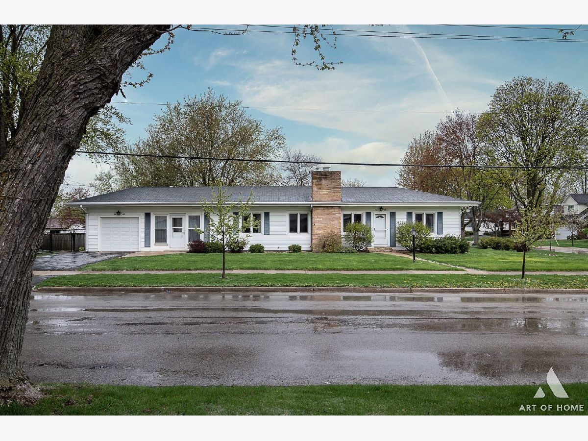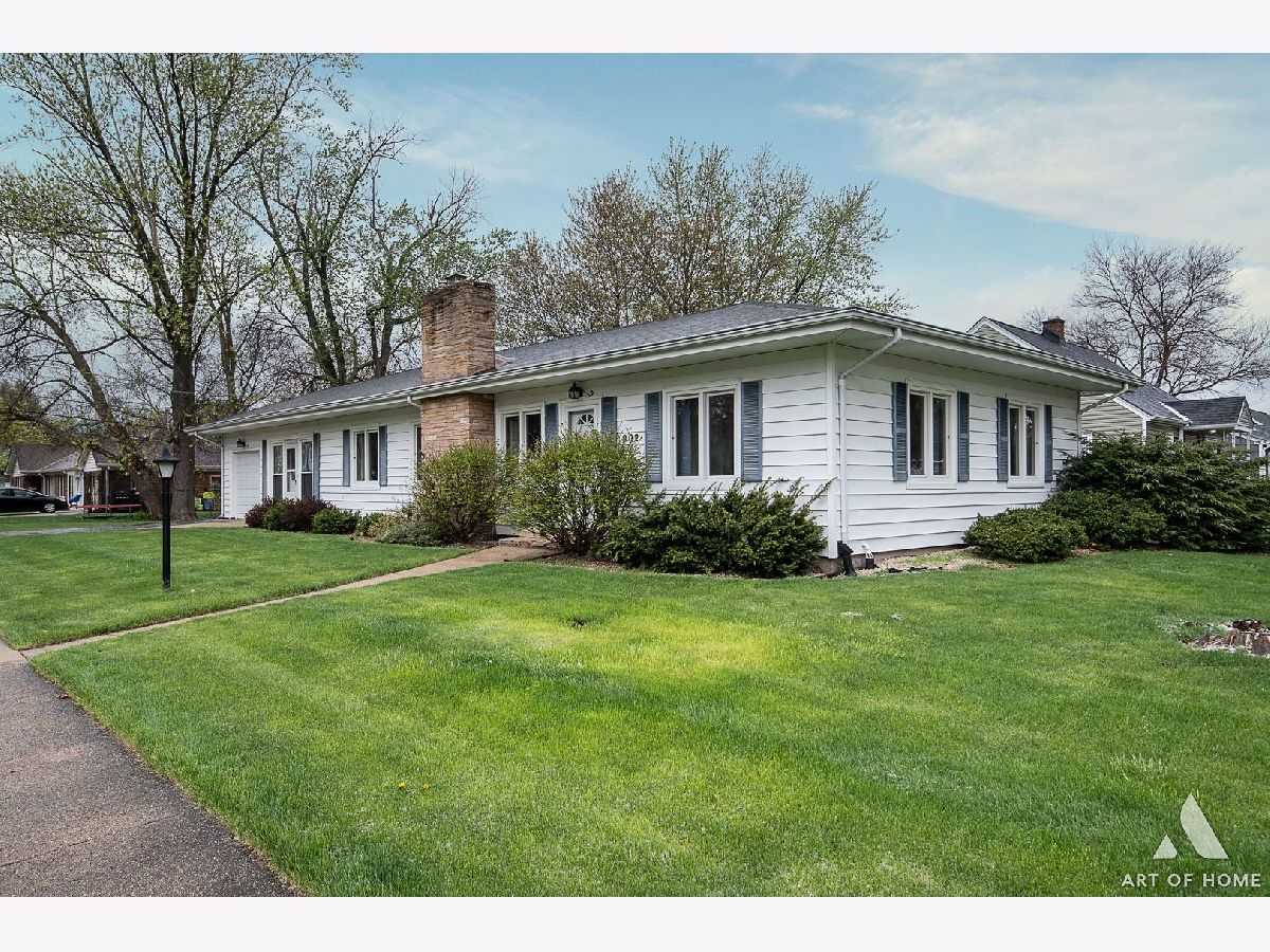 Enormous ranch in beautiful south Lombard sitting on a huge corner lot. Walk in to the light and bright sun room and continue to the remodelled eat in kitchen that has tons of light and room for dining in. Stainless steel appliances and granite countertop with seating for four, and plenty of room for a table and chairs! Newer energy efficient crank open casement windows throughout. Beautiful woodgrain flooring and gas fireplace appoint the open concept living room. Two very roomy bedrooms and bonus sunroom that could be your office, or used as a guest bedroom. There is a laundry shute in bathroom. Almost 1400 square foot basement unfinished and DRY for you to bring your ideas! French drain has been installed to keep any moisture away. Whole home has fully rewired electrical (garage excluded).Brand new furnace 2023 with attached humidifier. Washer and dryer, and sump pump, hot water tank 5 years old, kitchen appliances 5 years old. Fully fenced yard with a private patio, beautifully landscaped all around.