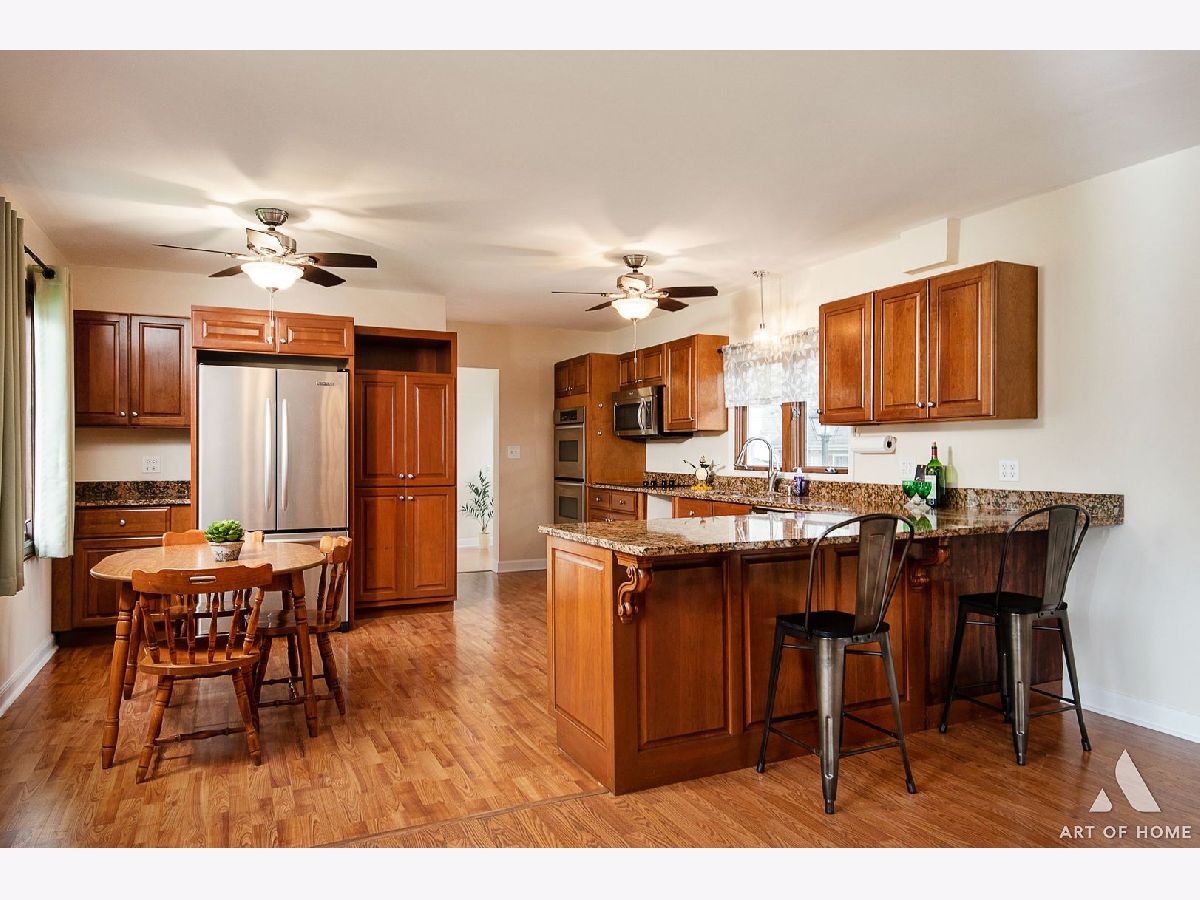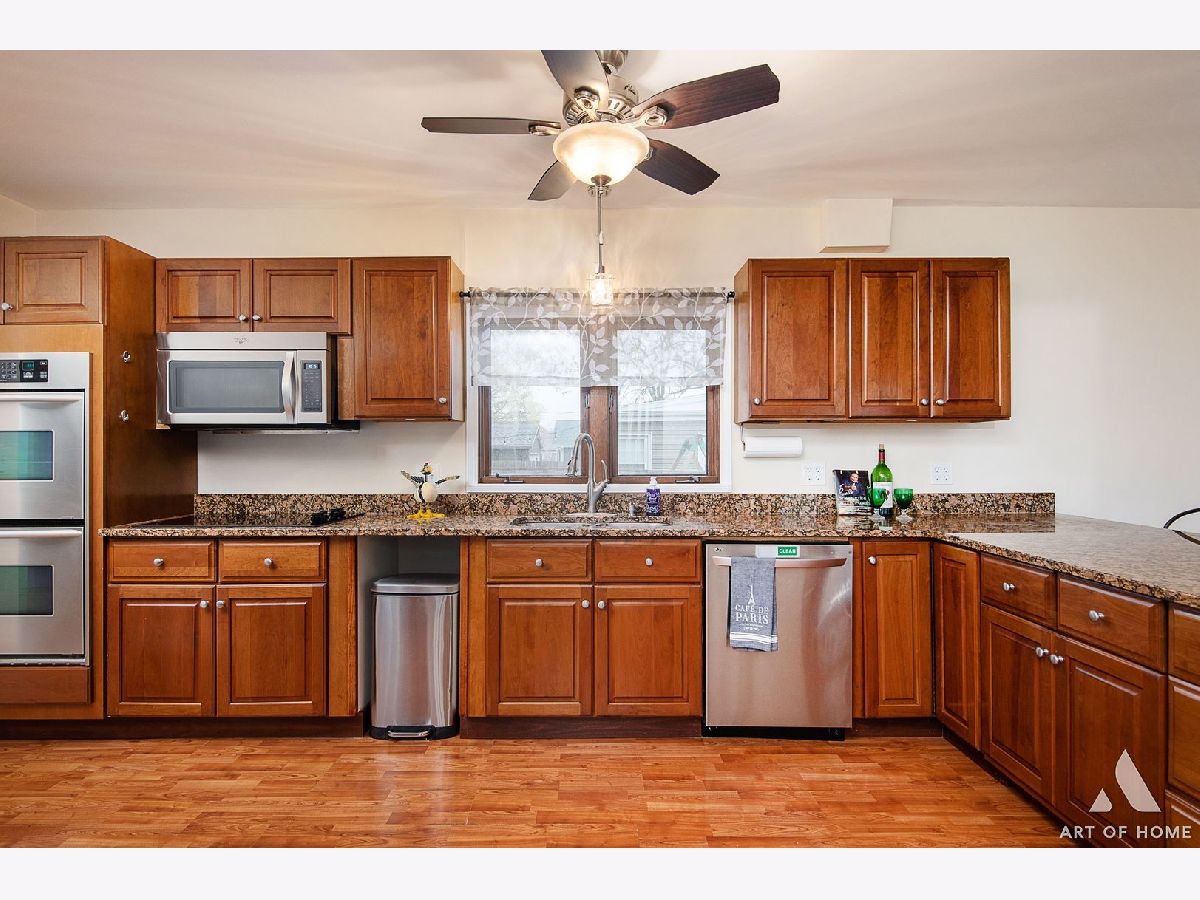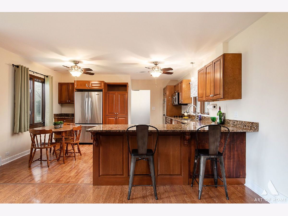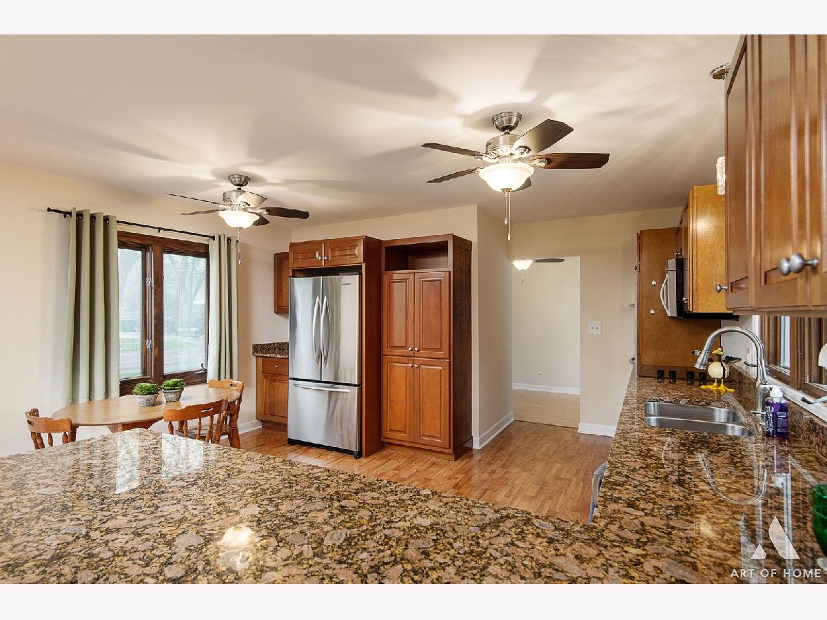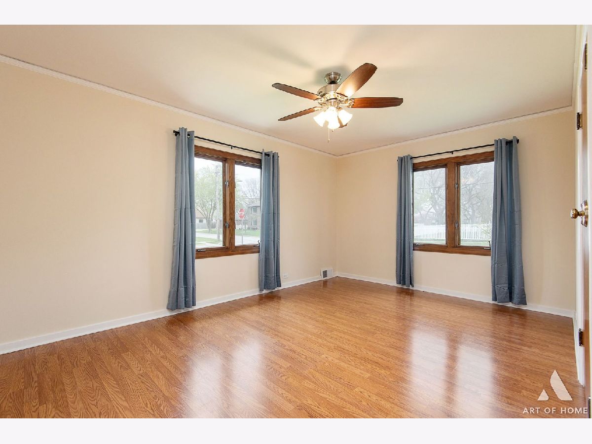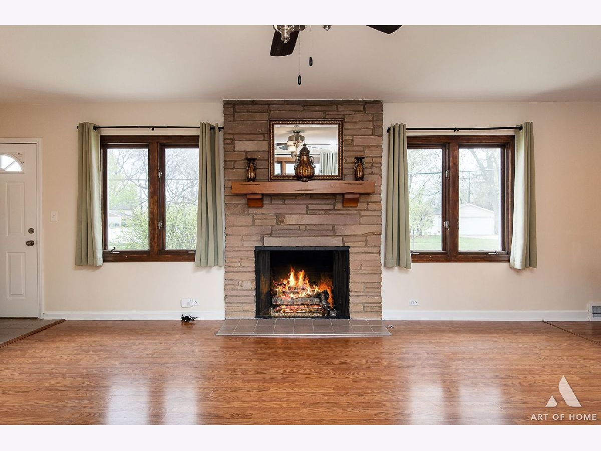 Enormous ranch in beautiful south Lombard sitting on a huge corner lot. Walk in to the light and bright sun room and continue to the remodelled eat in kitchen that has tons of light and room for dining in. Stainless steel appliances and granite countertop with seating for four, and plenty of room for a table and chairs! Newer energy efficient crank open casement windows throughout. Beautiful woodgrain flooring and gas fireplace appoint the open concept living room. Two very roomy bedrooms and bonus sunroom that could be your office, or used as a guest bedroom. There is a laundry shute in bathroom. Almost 1400 square foot basement unfinished and DRY for you to bring your ideas! French drain has been installed to keep any moisture away. Whole home has fully rewired electrical (garage excluded).Brand new furnace 2023 with attached humidifier. Washer and dryer, and sump pump, hot water tank 5 years old, kitchen appliances 5 years old. Fully fenced yard with a private patio, beautifully landscaped all around.