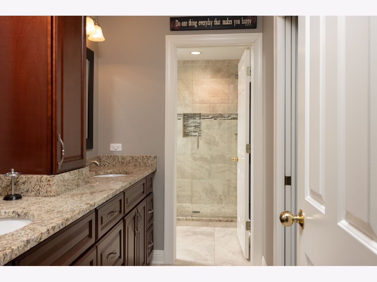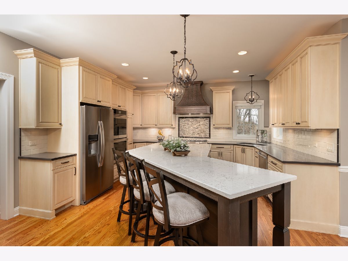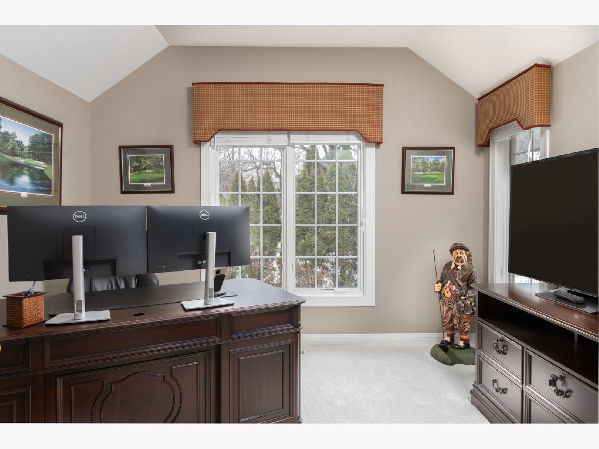 4200 Square feet of living space. Welcome to this meticulously maintained home nestled on a private wooded lot with a cul-de-sac location. This stunning residence offers an abundance of luxury updates, upgrades, and features. The recently renovated kitchen features a huge island with quartz countertops, a high-end Thermador cooktop, built-in ovens, a hammered copper exhaust hood, and a server bar equipped with a nugget ice maker and beverage refrigerator to elevate the entertaining experience. The office, located on the stairway landing, is adorned with pocket French doors and abundant windows. The office location is perfect for added privacy. The primary bedroom features a tray ceiling and has access to the fitness room and additional furnace room. The primary bathroom has been transformed into a spa-like oasis with a double shower featuring a body spray feature, a large free-standing tub, a double vanity, a water closet, and heated floors. The Jack & Jill bathroom has also been exquisitely renovated, showcasing heated floors for added comfort. For guests, a private bedroom with an en-suite bathroom offers a luxurious retreat. The expanded laundry room provides convenience and efficiency, making chores a breeze, and includes a laundry chute as well as a whimsical coin chute. The finished full basement, with 11-foot ceilings, includes a well-appointed bar, a spacious rec room, a game room, and a fifth bedroom. The half bath, complete with a urinal is an extra that will be appreciated. Exterior access to the garage makes for a great convenience. Newer Pella Windows.