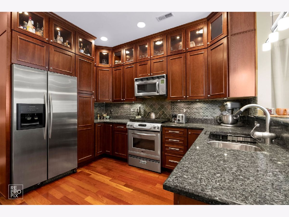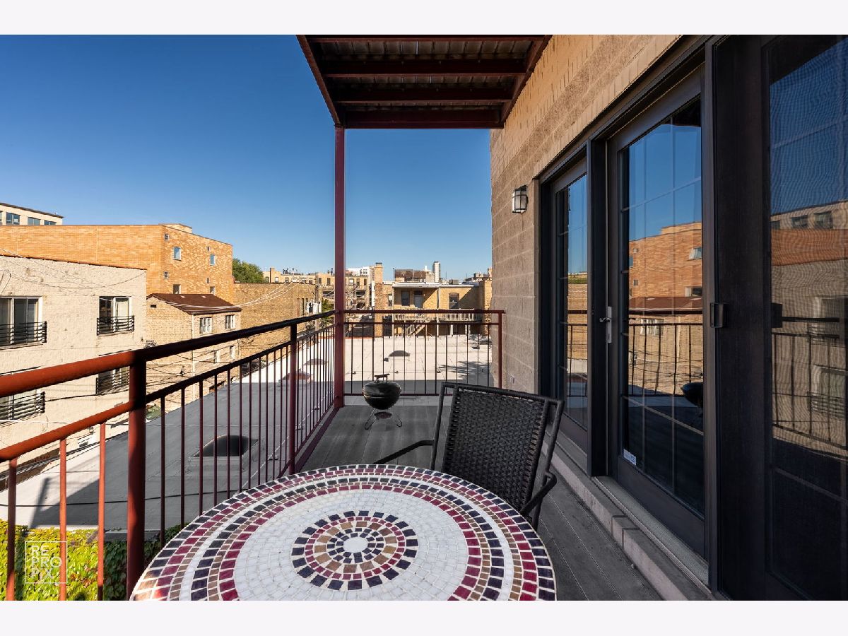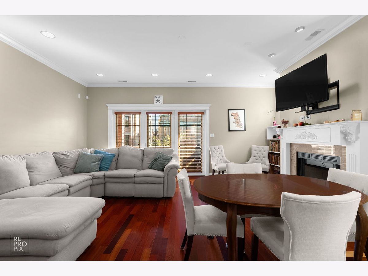 Located on a picturesque tree-lined street, this timeless brick building-completed in 2005 with thoughtful attention to detail-combines classic craftsmanship with modern comfort. Step inside to a spacious living room featuring a gas-start wood-burning fireplace with a marble surround and custom mantle, creating a warm and inviting focal point. The adjoining balcony overlooks mature trees, offering a serene spot to unwind or entertain. The open-concept kitchen is fully upgraded with stainless steel appliances, granite countertops, an abundance of custom cabinetry, and a spacious pantry for additional storage. A breakfast bar opens to the living area, providing an ideal layout for everyday living and hosting. The primary suite is a true retreat, featuring a private balcony, excellent closet space, and a spa-inspired bath with a double vanity, jetted tub with body sprays, and a second vanity with extra storage. The second bedroom is generously sized with a walk-in closet, and the second full bath offers luxurious finishes and a steam shower with multiple body sprays. Elegant finishes continue throughout the home, including Brazilian Cherrywood floors with inlay, solid-core wood doors, surround sound wiring, and custom millwork with crown molding. The thoughtful floor plan provides exceptional interior storage, a full-size laundry area with a large utility sink, and an overall sense of warmth and quality that's hard to find. This well-maintained, self-managed boutique building is known for its quality construction and quiet, residential feel. Assessments remain low, and the property is pet-friendly. One exterior parking space is included. Enjoy an unbeatable Lakeview location close to the Southport Corridor, Wrigley Field, and the lakefront, with easy access to the Brown, Purple, and Red Line trains, plus countless restaurants, cafes, and neighborhood boutiques all within a short walk.