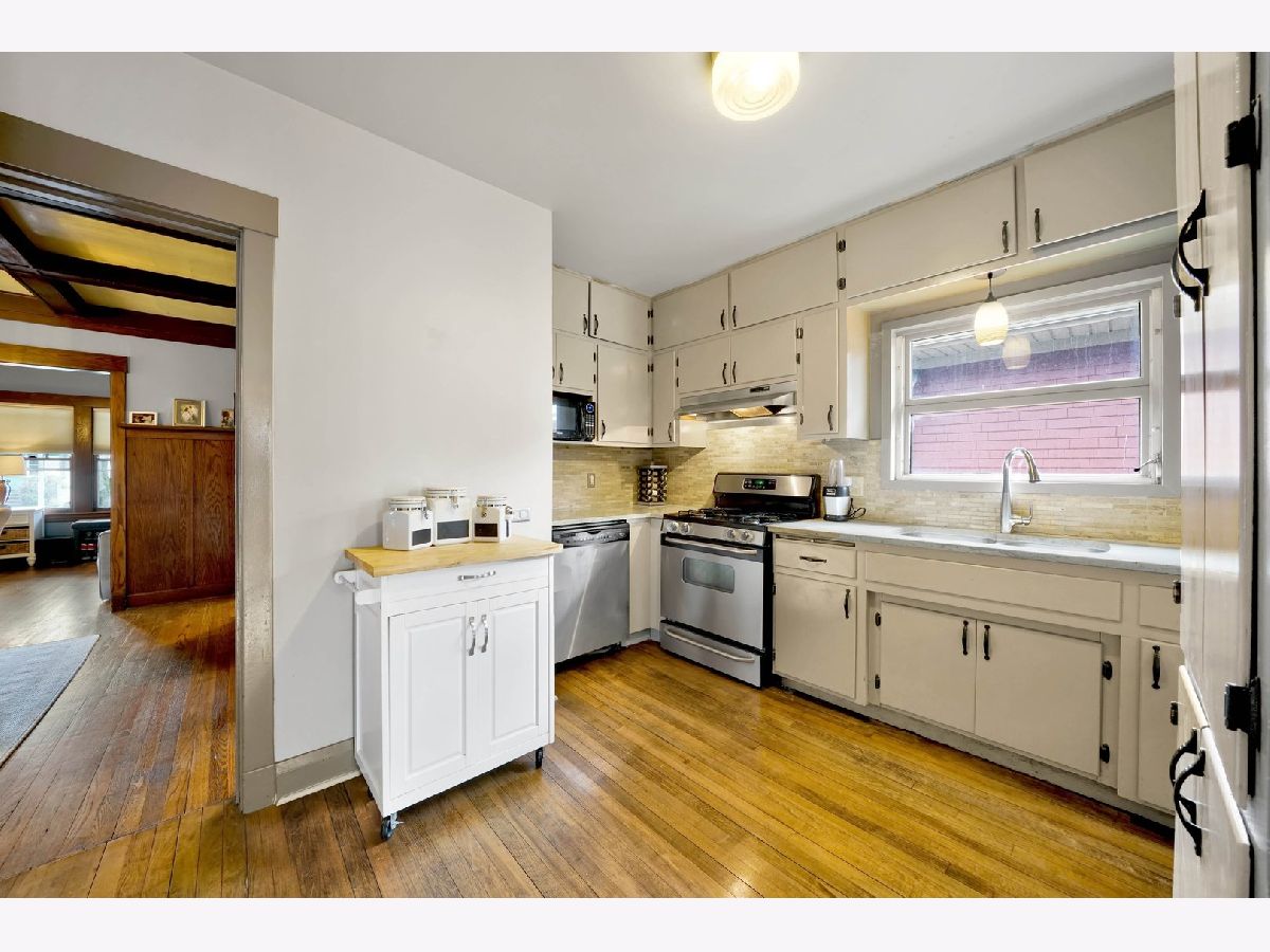 MULTIPLE OFFERS RECEIVED. HIGHEST & BEST OFFERS ARE DUE SUNDAY, 4-11, 8PM. You'll find character galore in this beautiful Craftsman Bungalow! Hardwood floors, Gorgeous Natural Woodwork, Stained Glass Windows, Living Room with a brick, Gas Fireplace, framed by built-in bookcases, Dining Room beamed ceiling, and wainscotting with a plate rail. The Family Room that has extra space for a breakfast table, overlooks the yard and is right off the granite countered Kitchen with stainless appliances. Both updated bathrooms have classic subway tile. The dry, tall ceiling basement offers endless options for informal fun. Tear off roof & new gutters, Fall '20, fence, Summer, '19, new R-30 insulation under family room, asbestos professionally removed, nest thermostat, security system and much more. Walk to the park and the Elementary School. A real charmer!