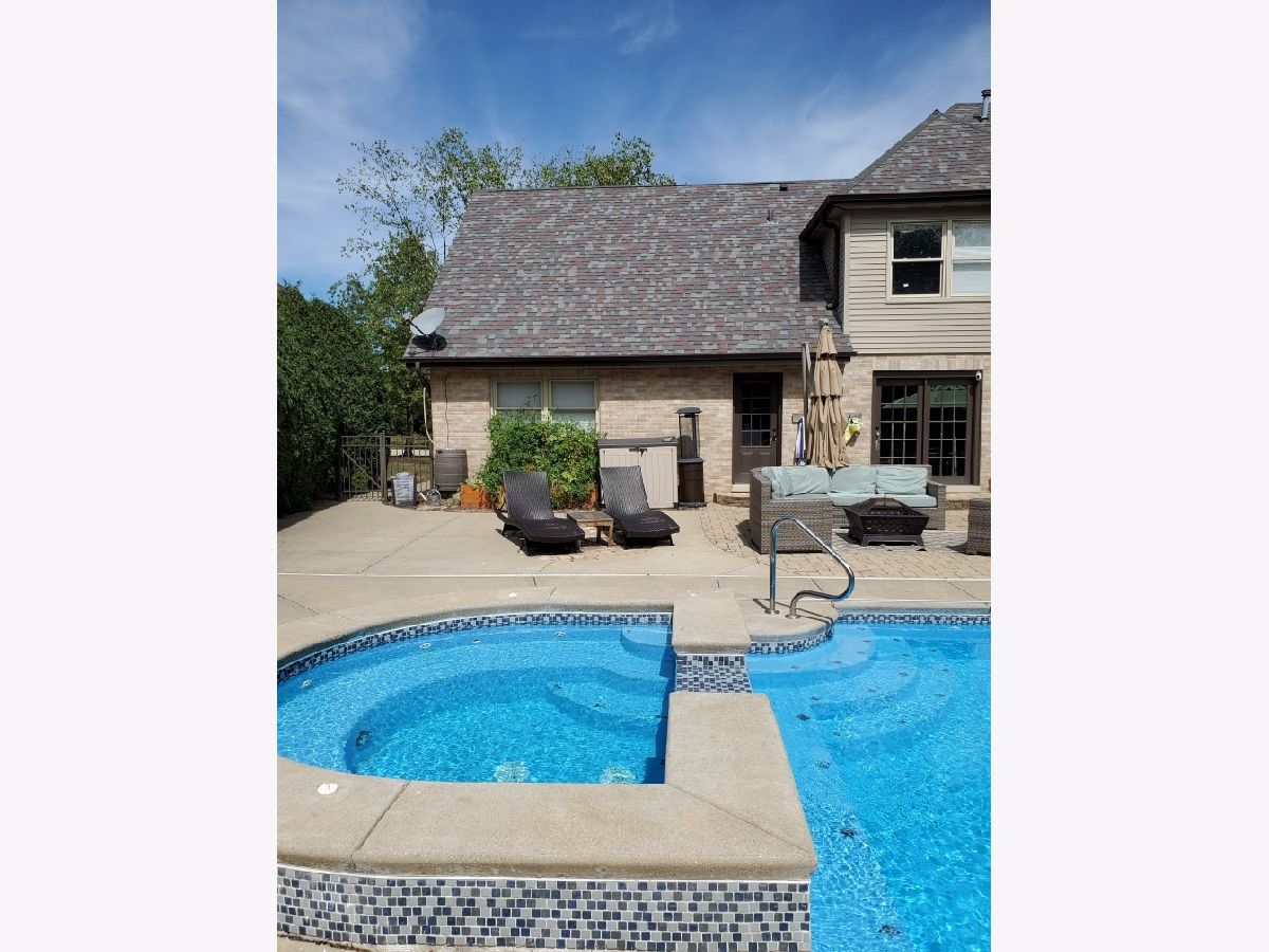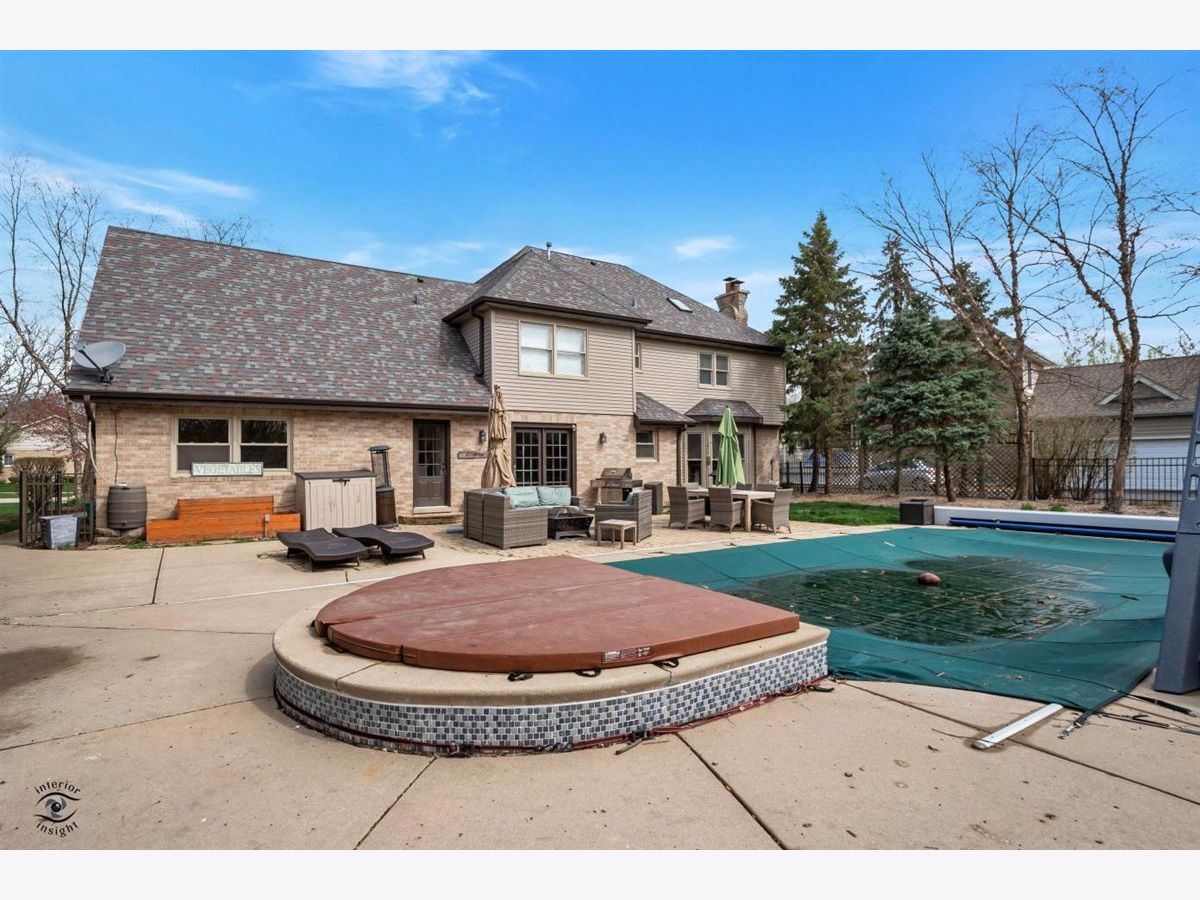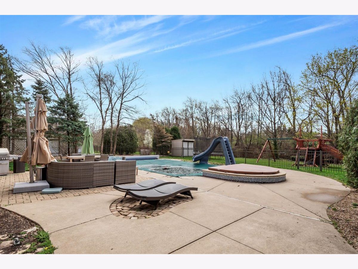 Gorgeous Georgian Beautifully remodeled & move in ready with custom touches throughout. Walk into your two-story foyer with open railing with an authentic stall door leading to your front room. Once inside, French doors will lead you to your family room with beautiful brick fireplace and built-in custom bookcases. Windows looking over your outdoor oasis including; In-ground pool (w/Slide), connected hot tub! Brick paver patio, playset, all fenced, & in and backing up to Old Plank Trail! Kitchen boats custom 48' soft close cabinets with crown molding. Subway tile backsplash. Walk-in pantry. White quartz countertops sliding glass door leading to your inground pool! Hidden on the other side of the kitchen is a spacious laundry room, and bonus/exercise room. 100% waterproof floors throughout. 4 inch trim throughout home. Nest thermostat. Basement partially finished with extra storage! Master bedroom with vaulted ceiling's, walk in closet. Additional bedroom with vaulted ceiling's! Must see to believe Six possible bedrooms, with additional study area.