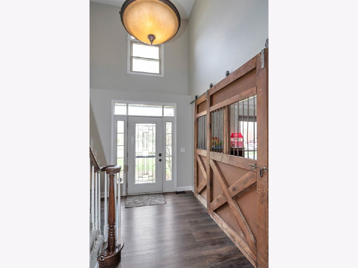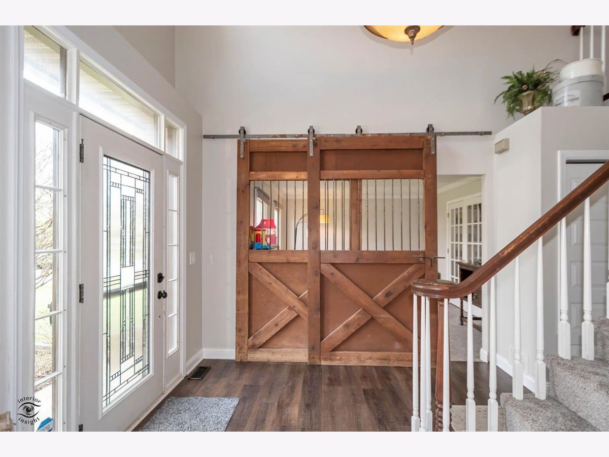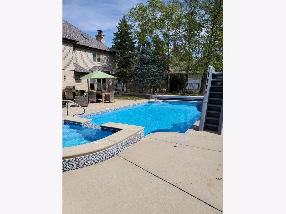 Gorgeous Georgian Beautifully remodeled & move in ready with custom touches throughout. Walk into your two-story foyer with open railing with an authentic stall door leading to your front room. Once inside, French doors will lead you to your family room with beautiful brick fireplace and built-in custom bookcases. Windows looking over your outdoor oasis including; In-ground pool (w/Slide), connected hot tub! Brick paver patio, playset, all fenced, & in and backing up to Old Plank Trail! Kitchen boats custom 48' soft close cabinets with crown molding. Subway tile backsplash. Walk-in pantry. White quartz countertops sliding glass door leading to your inground pool! Hidden on the other side of the kitchen is a spacious laundry room, and bonus/exercise room. 100% waterproof floors throughout. 4 inch trim throughout home. Nest thermostat. Basement partially finished with extra storage! Master bedroom with vaulted ceiling's, walk in closet. Additional bedroom with vaulted ceiling's! Must see to believe Six possible bedrooms, with additional study area.