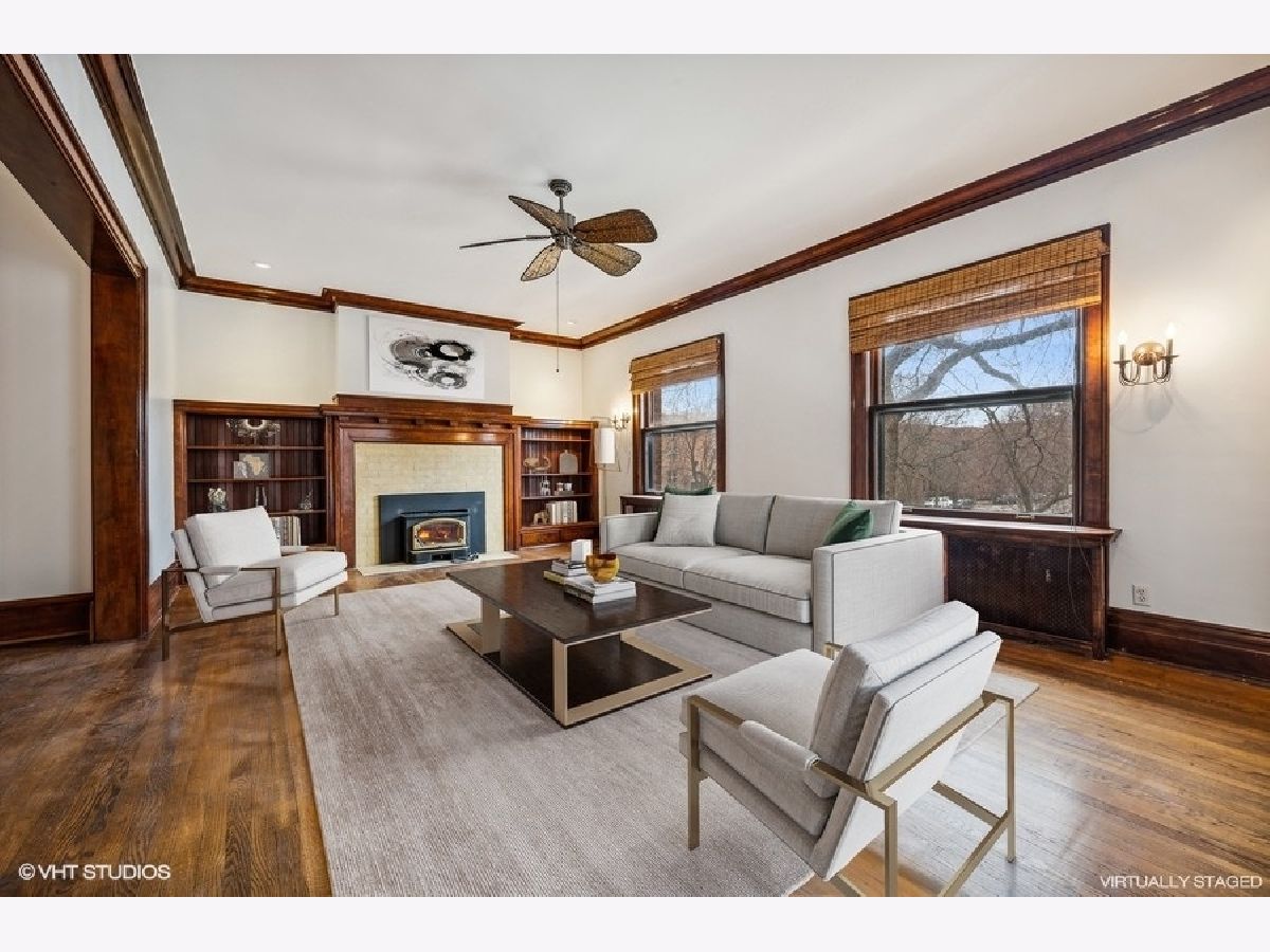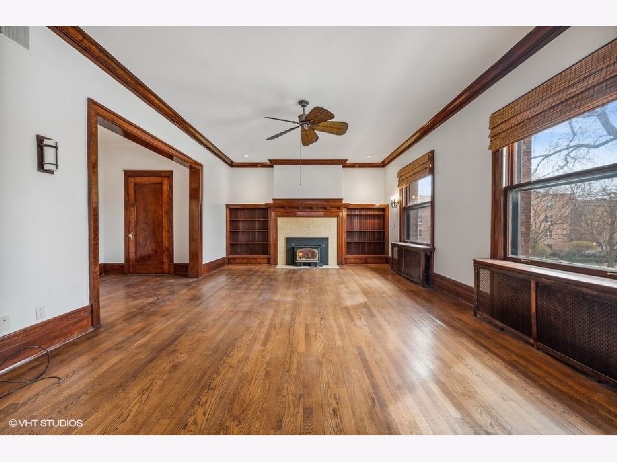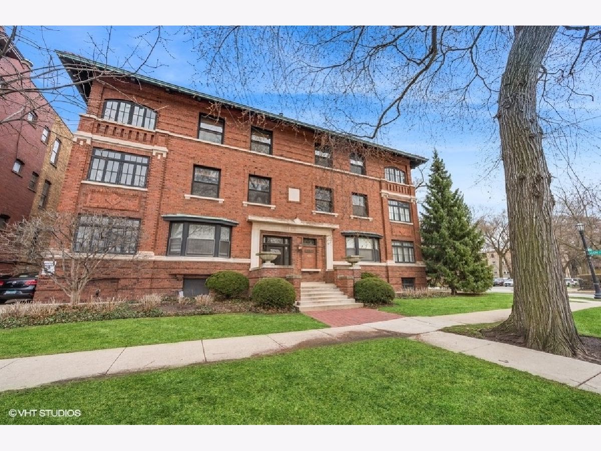 Large, rarely available unit in one of East Evanston's best historic buildings. Several modern updates have been made such as central AC and in-unit washer/dryer while retaining the architectural details from the early 1900's the unit includes large rooms, high ceilings, hardwood floors throughout, circular flow, great light, terrific closet space, a wide gallery hallway, dining room with beamed ceiling, and 5' wainscoting, a sunroom/solarium perfect for plants or relaxing with a book. The all stainless kitchen, with an adjacent walk-through pantry, opens to a family area or office depending on your needs. The large foyer features backlit display shelving. The spacious west-facing living room with a fireplace surrounded by built-in bookcases is adjacent to the sun-filled solarium. There are three bedrooms with generous closet space and two full baths. This unit also includes a parking space. It is conveniently located within walking distance of the lake, beaches, parks, the Main/Dempster Corridor, restaurants, school and public transit. HOA includes: Heat, Water, Parking, Common Insurance, Exterior Maintenance, Lawn Care, Scavenger, Snow Removal). There is a Special Assessment due in August for $5049 for tuck pointing and window repair. Parking space is #8. Pets: dogs OK, no weight restrictions, cats OK.