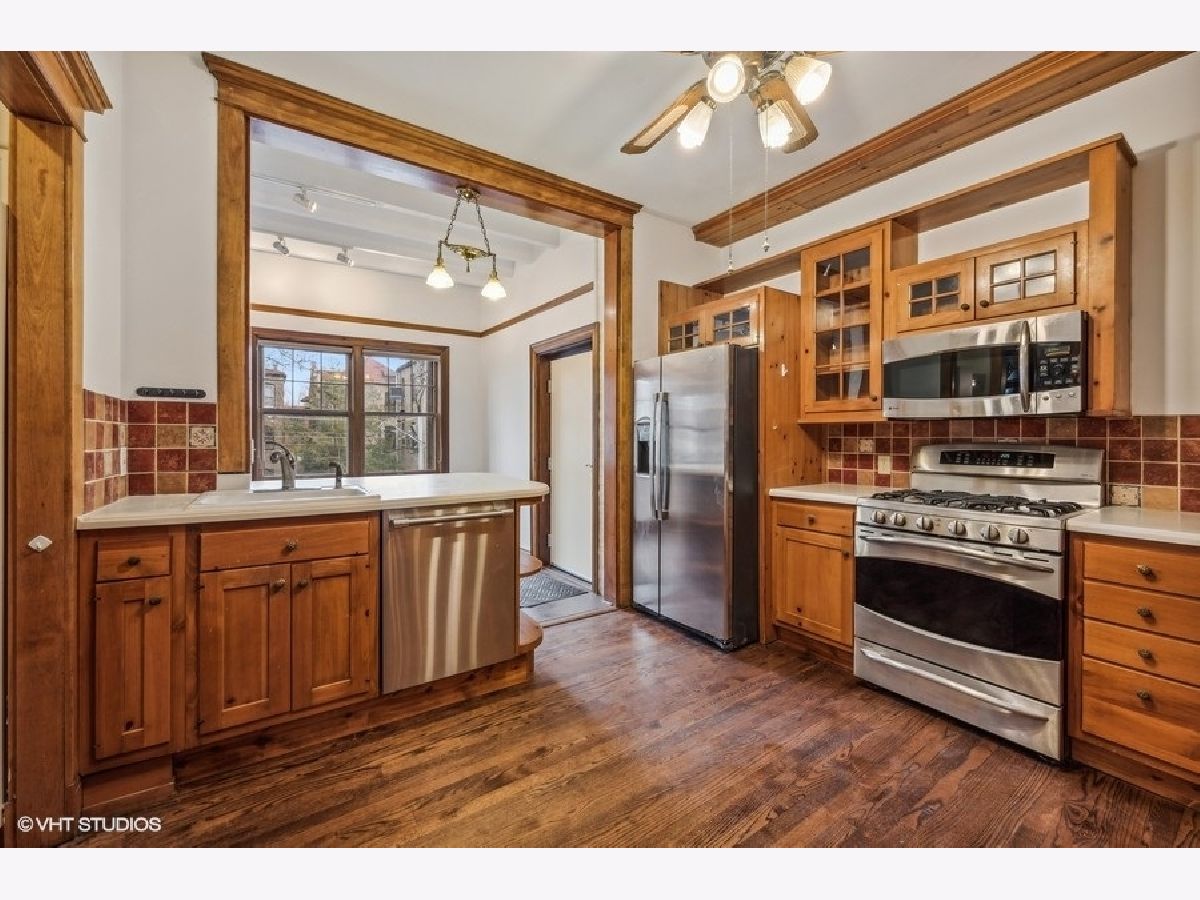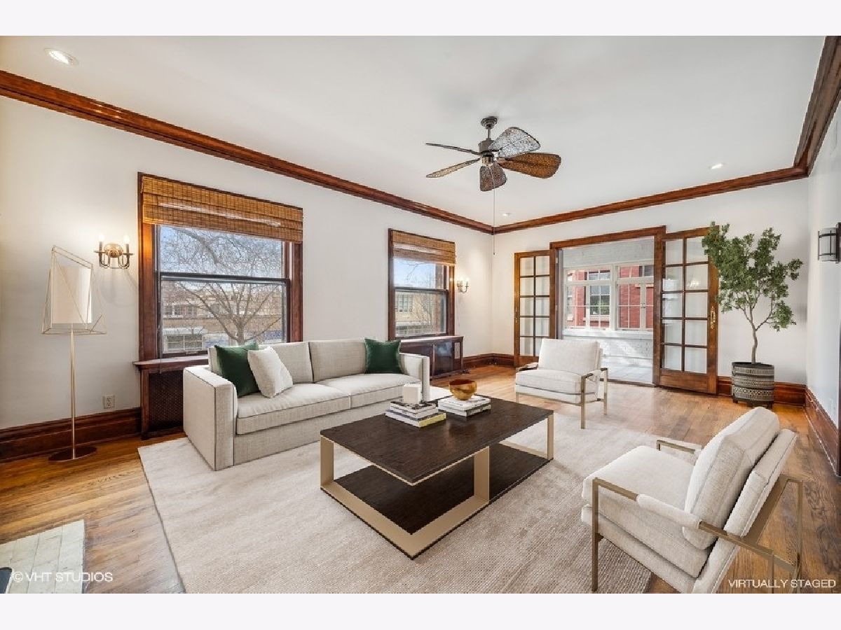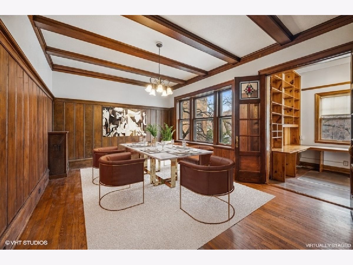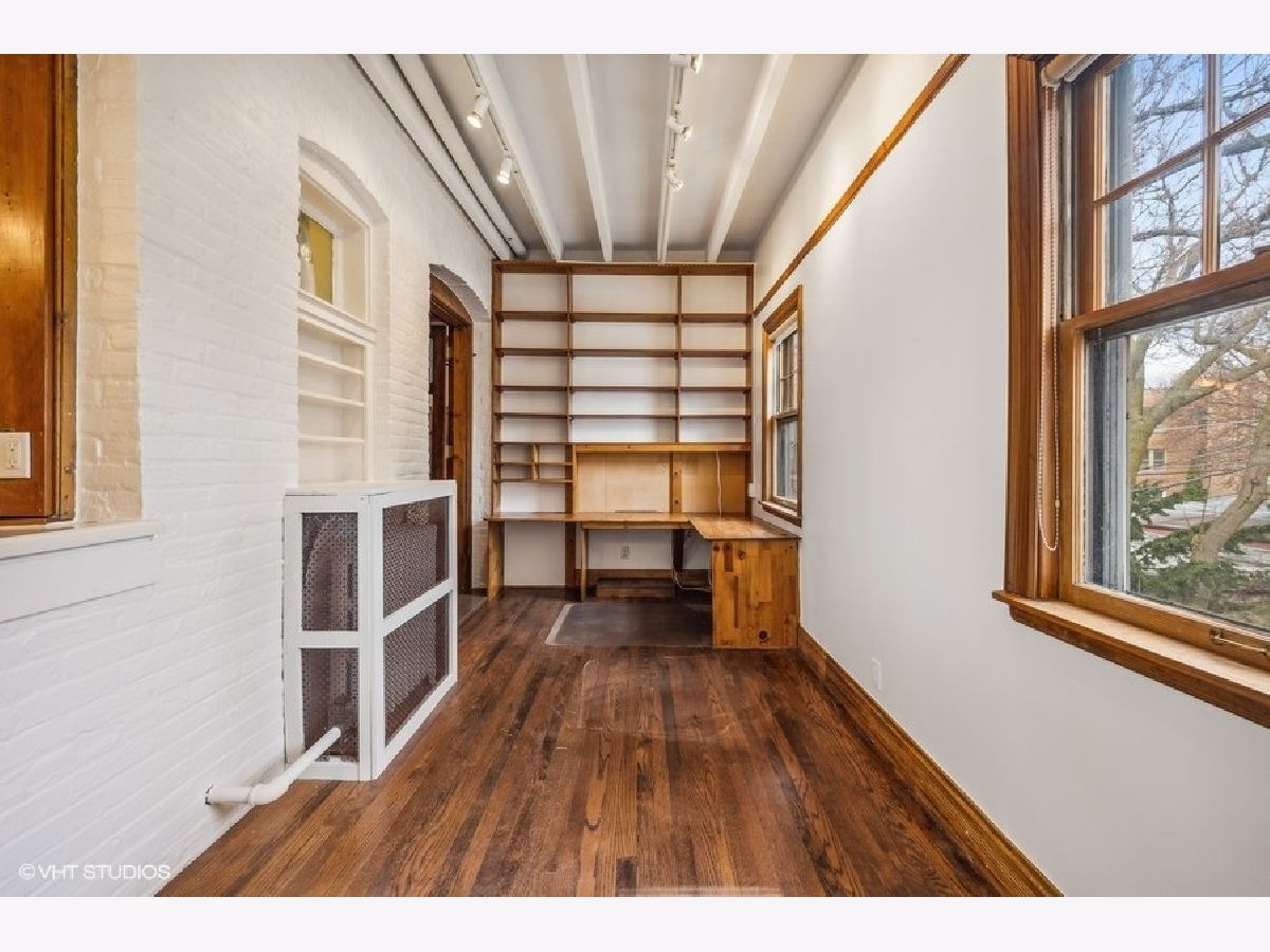 Large, rarely available unit in one of East Evanston's best historic buildings. Several modern updates have been made such as central AC and in-unit washer/dryer while retaining the architectural details from the early 1900's the unit includes large rooms, high ceilings, hardwood floors throughout, circular flow, great light, terrific closet space, a wide gallery hallway, dining room with beamed ceiling, and 5' wainscoting, a sunroom/solarium perfect for plants or relaxing with a book. The all stainless kitchen, with an adjacent walk-through pantry, opens to a family area or office depending on your needs. The large foyer features backlit display shelving. The spacious west-facing living room with a fireplace surrounded by built-in bookcases is adjacent to the sun-filled solarium. There are three bedrooms with generous closet space and two full baths. This unit also includes a parking space. It is conveniently located within walking distance of the lake, beaches, parks, the Main/Dempster Corridor, restaurants, school and public transit. HOA includes: Heat, Water, Parking, Common Insurance, Exterior Maintenance, Lawn Care, Scavenger, Snow Removal). There is a Special Assessment due in August for $5049 for tuck pointing and window repair. Parking space is #8. Pets: dogs OK, no weight restrictions, cats OK.