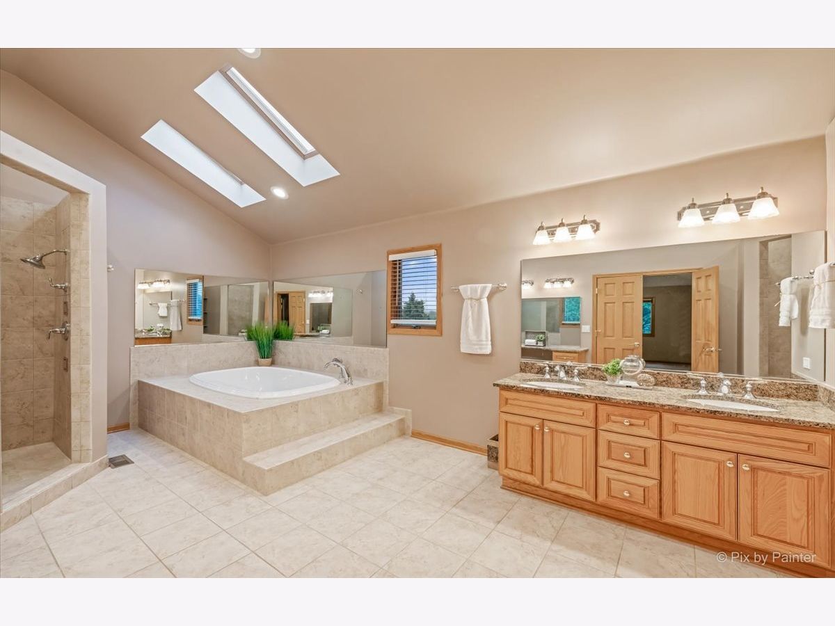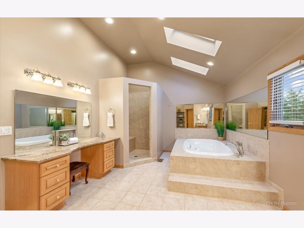 If you need space... check out this SPRAWLING custom estate offering over 7,000 square feet of finished living space and perfectly situated on over a 1/2 acre private double lot in the highly sought-after Windstone Subdivision. A stamped concrete walkway leads to a covered front entry ~ Inviting foyer with double closets, front door with beveled leaded glass sidelights, and a dual oak staircase ~ 1st floor office offers a sizeable closet, triple wide window and hardwood flooring (could be used as a 5th bedroom) ~ Formal living room with a double-wide opening into an expansive great room that would be perfect for a lounge room with a pool table, teen hangout, playroom or even ideal space for an in-law arrangement. Leaded glass French doors lead into an octagonal sunroom with a captivating cathedral ceiling with skylight and decorative beam + several glass doors that lead out onto an enormous wrap-around deck spacious enough for several tables and chairs for outdoor entertaining + a dedicated gas line for a grill. Gorgeous backyard with meticulous mature landscaping offers fruit trees, perennials, vegetable gardens, tons of open green space + an underground lawn sprinkler irrigation 9 zone system. Beautiful family room with a warm brick fireplace flanked by bookcases, vaulted ceiling with skylight, hardwood flooring, door to deck + overlooks a gourmet kitchen featuring new black slate stainless appliances, built-in double oven with microwave, double stainless sink with window above, breakfast bar island, indoor grill, granite counters, breakfast bar, pantry closet, LED canned lighting, newer fixtures, huge breakfast room with bay window and door to deck + direct access into a stunning formal dining room that offers a tray ceiling, two chandeliers, wall of windows, and glass french privacy doors. First floor guest bathroom, storage under the back staircase, and 1st floor laundry room with utility sink + service door to yard. Private master suite with a volume tray ceiling, recently remodeled bathroom offers double sinks, 2 showers, vanity dressing area, water closet + a dream closet and sitting room that could be perfect for a craft room, 2nd home office, nursery, or another dream closet ~ Spacious 2nd and 3rd guest bedrooms with walk-in closets, 4th bedroom with a double-wide closet and beautifully remodeled adjacent hall bathroom with freestanding soaking tub, glass door shower, double sinks with granite counters and vanity storage. If you love to entertain, don't miss the fully finished basement offering a full bathroom, kitchenette/bar, exercise room complete with all equipment, media room, huge rec room, storage room & much more! Concrete driveway, extra deep 2.5 car finished garage with epoxy flooring + storage closet. Walk-up attic for extra storage, upgraded wooden Anderson casement windows, roof 2014, dual furnace and central air 2016, exterior painted in 2021, most interior rooms painted in 2021, updated bathrooms in 2020, new garage door 2021 & more! Beautiful neighborhood with walking path, spectacular park, tennis courts, Windstone Lake where you can launch non-motorized boats, catch-n-release fishing, and ice skate in the winter. Quick access to I-88, Aurora Outlet Mall, shopping, dining, forest preserve, and Kaneland School District #302.