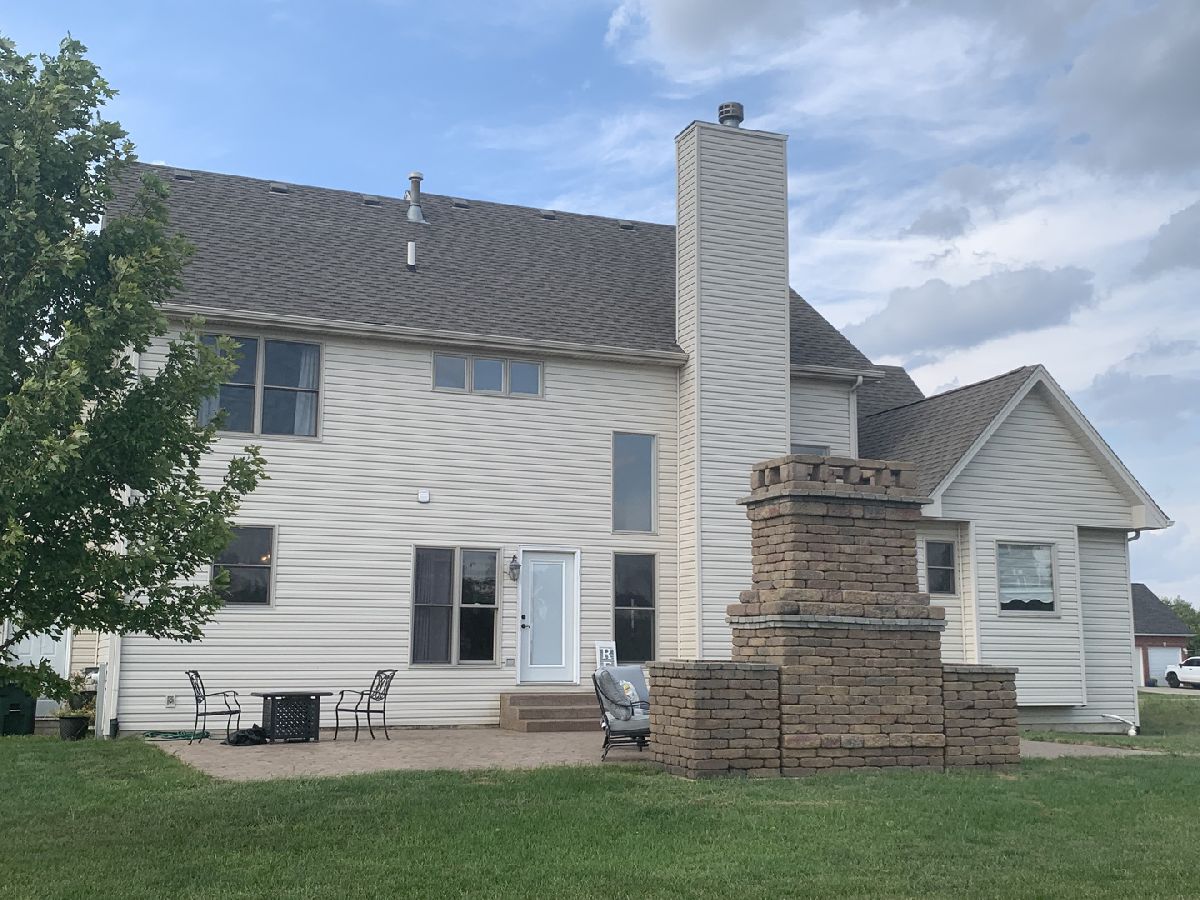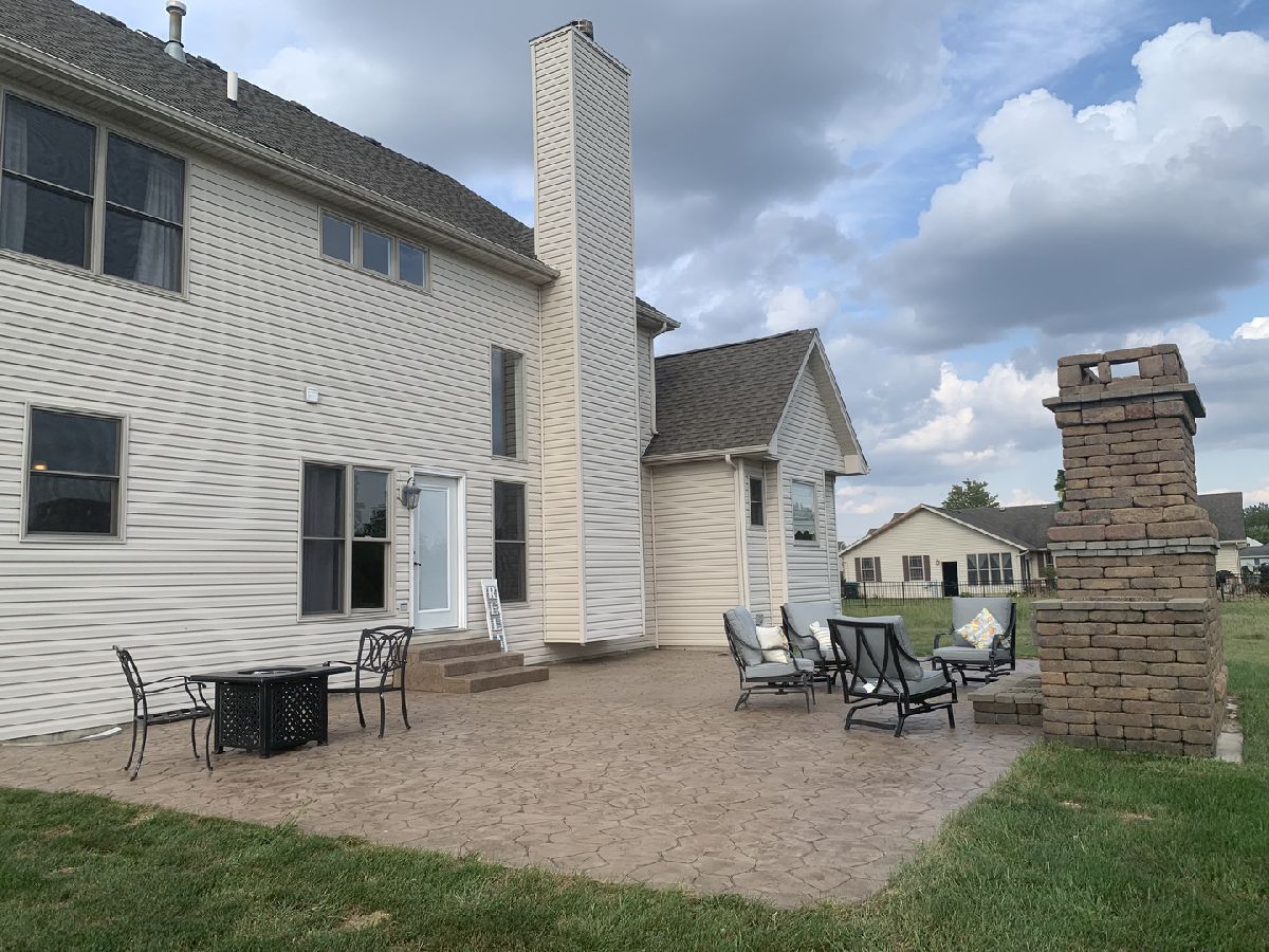 Gorgeous 4 BR, 2.5 BA with amazing layout! Open and spacious floorplan offering expansive rooms, custom cabinets, kitchen island, hardwood floors in foyer, kitchen, and dining room. Custom limestone fireplace w/ maple mantle. Master Suite w/ walk-in closets, whirlpool tub and separate shower. Full basement, 3 car garage, HUGE stamped concrete patio with gorgeous fireplace, perfect for outdoor entertaining! Concrete poured for shed, quality craftmanship throughout this home-don't miss this opportunity!
