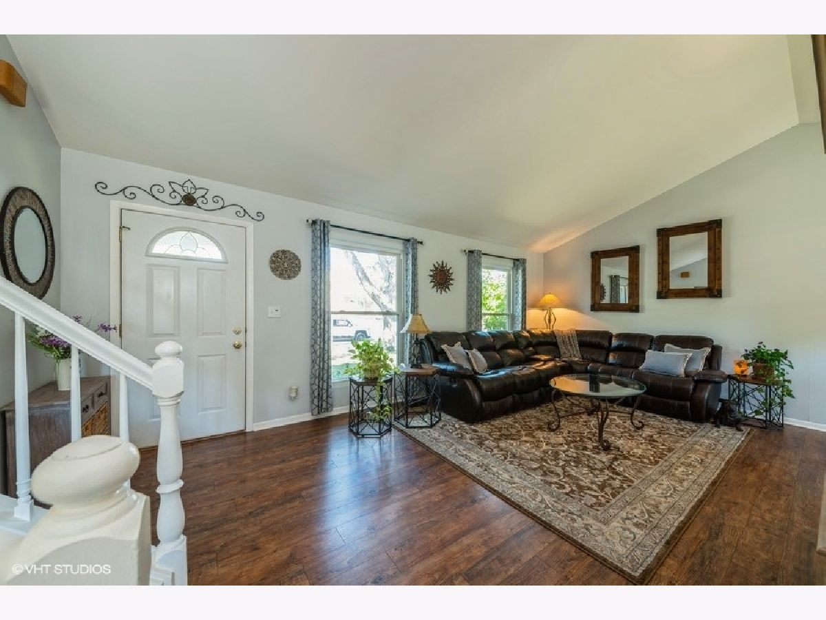 Charming 3-bedroom home in a prime walk-to-school location beautifully updated throughout! Enjoy vaulted ceilings and wood laminate flooring in the living and dining areas, with south-facing windows that flood the space with natural light. The updated kitchen has granite countertops and features a picture window overlooking the back yard and a built-in countertop eating space that opens to a cozy family room with a fireplace. All bedrooms are generously sized with built-in organizers and the primary bedroom includes a walk-in closet. Both bathrooms have been updated. The expansive backyard offers mature trees, a privacy fence, fruit trees, a low-maintenance native flower garden, raised vegetable beds, and a Trex deck. This home is move-in ready and just minutes from downtown Roselle and the Metra station. A must-see!