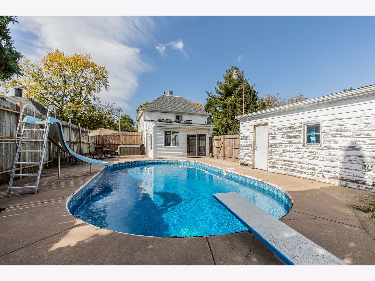 This lovely 3 bedroom, 2 bath home on a double lot has plenty of space for living, relaxing, and entertaining. The main floor has a living room, office, dining room, kitchen, full bath, and laundry. There's a large family room in the back of the house that leads out to the hot tub and in-ground pool. Upstairs, you'll find 2 bedrooms, the primary bedroom with attached full bathroom and dressing area, and a full, insulated walk-up attic. Charming, historic features including transoms and wood work throughout. The large lot has a 2-car extra-wide garage and a shed. There's a full, unfinished basement that has been reinforced (and annually maintained) by Midwest Basement. Water heater new in 2022. Roof new in 2023. HVAC new in 2019. All appliances stay, washer and dryer are negotiable. Cash or conventional financing only. As-Is sale.