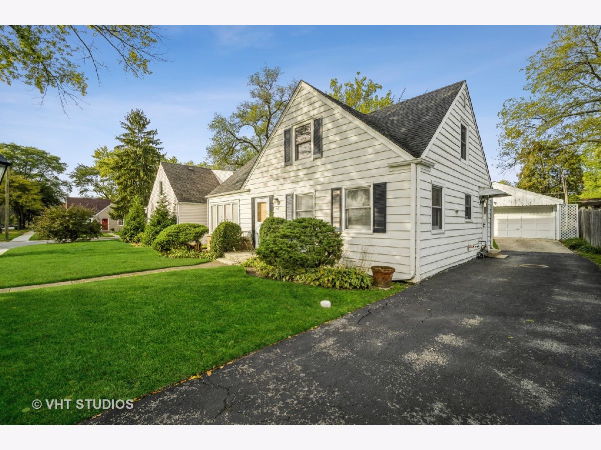Charming Cape Cod home. Primary Bedroom and laundry on the first floor. Walk in closets throughout the home. Spacious storage. Updated full bathroom on first floor. Detached 1 car garage. Amazing perennials planted throughout yard. Gorgeous lot of land w/ mature perennials throughout. Original hardwood floors below carpeted areas. Walking distance to downtown Arlington Heights. 1.4 miles to Arlington Heights Metra. Approx. 2.8 miles to Arlington Race Track Metra(future home of Bears Stadium) Ample amount of Restaurants and Shopping nearby. Bring your modern farm house ideas to make this home your dream property! Being sold AS-IS.
