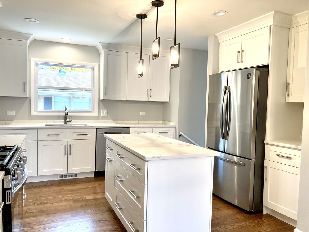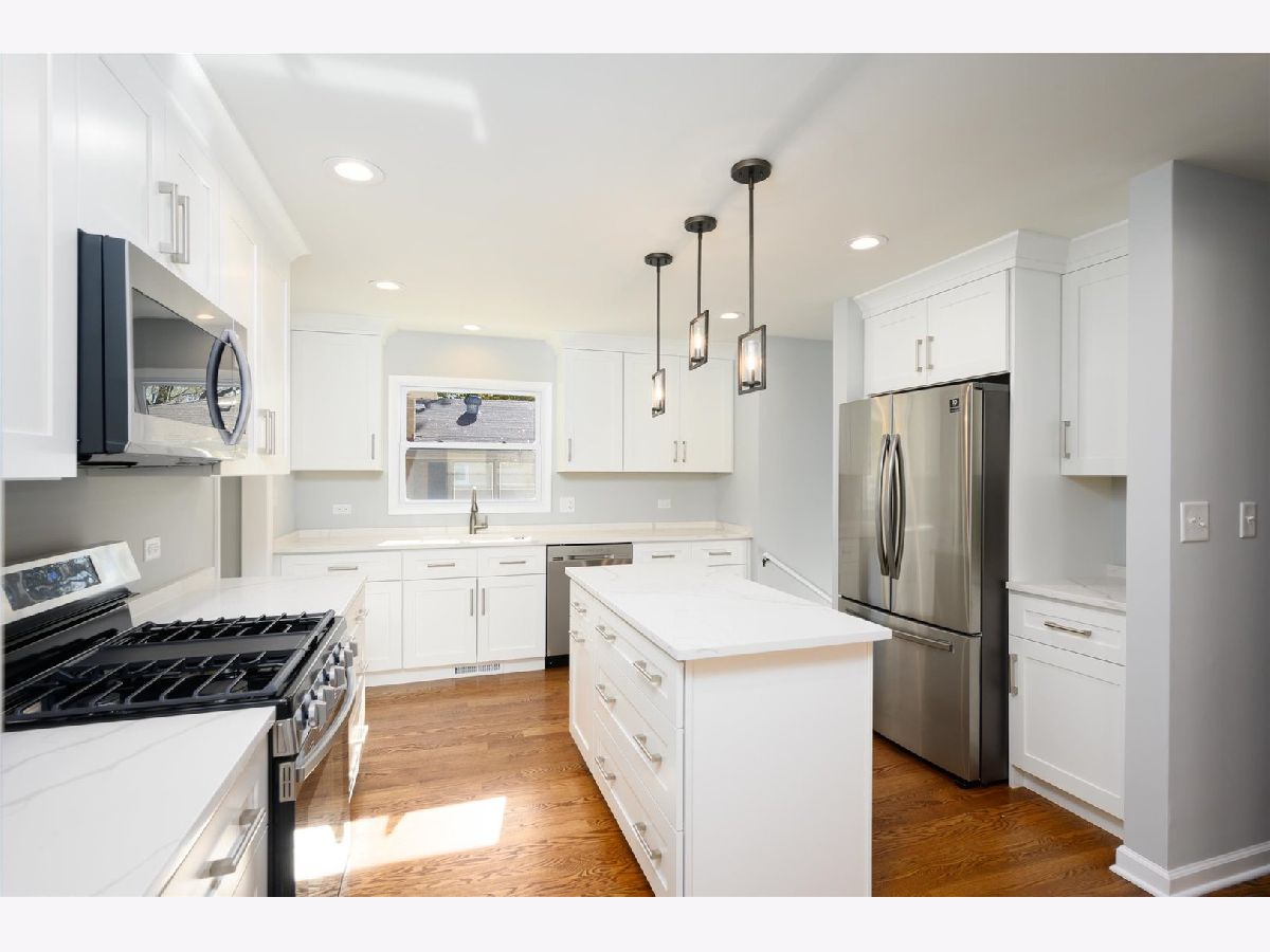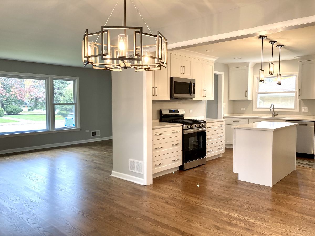 Completely renovated solid brick ranch! New hardwood floors through-out, beautiful new kitchen with loads of white shaker cabinetry, quartz counter tops, stainless steel appliances and and island, large living room and formal dining room with pendant chandelier, three good size bedrooms with large closets, gorgeous baths totally remodeled, new mirror in full bath on order, wide open full finished basement with bar and new flooring, laundry and storage in a separate room. New windows (October 2021) Roof (approx. 8 years) New furnace, air conditioner & hot water heater just installed November 2021. 100 amp circuit electric panel, freshly painted through-out in today's colors. Concrete side drive to 2 car garage, blocks from shopping, across from grade school, nothing to do but move in! This one is a real gem!!
