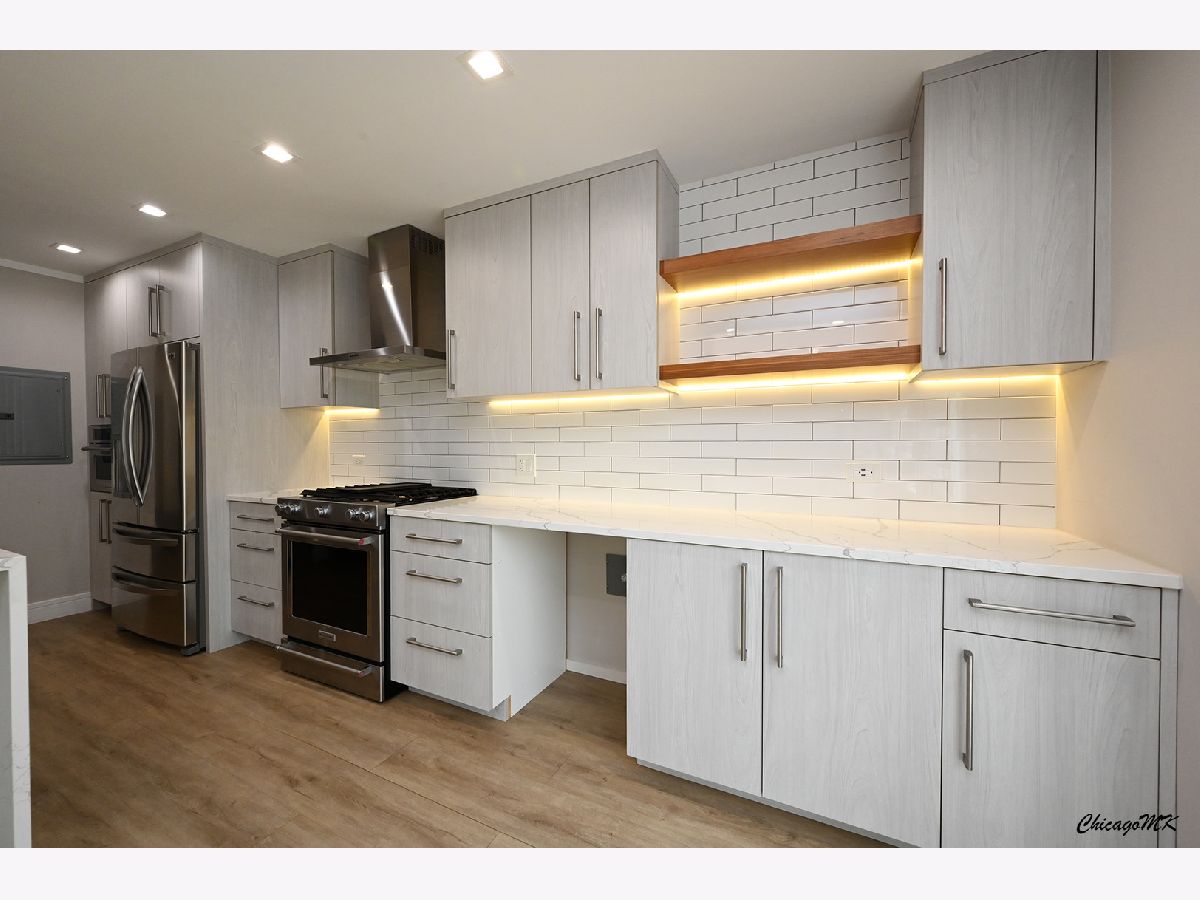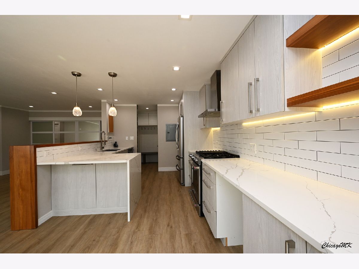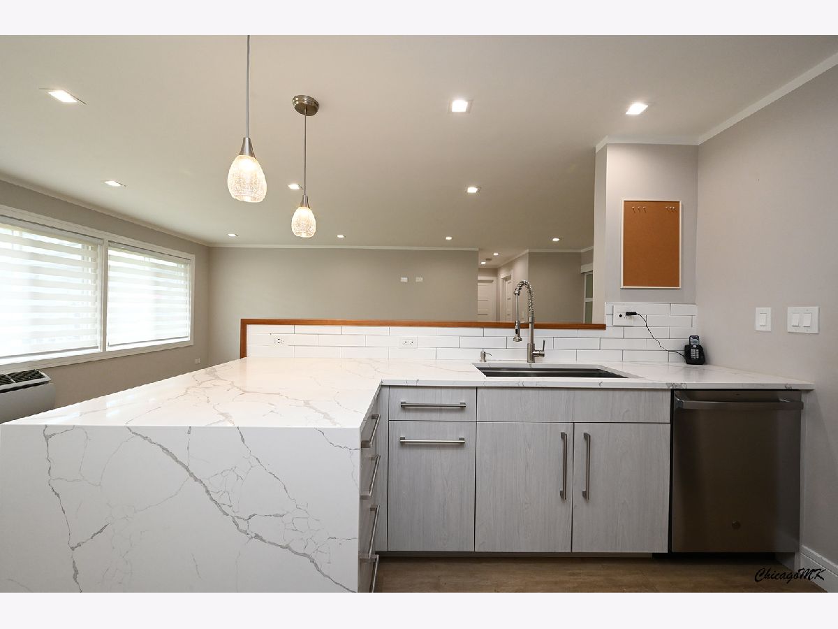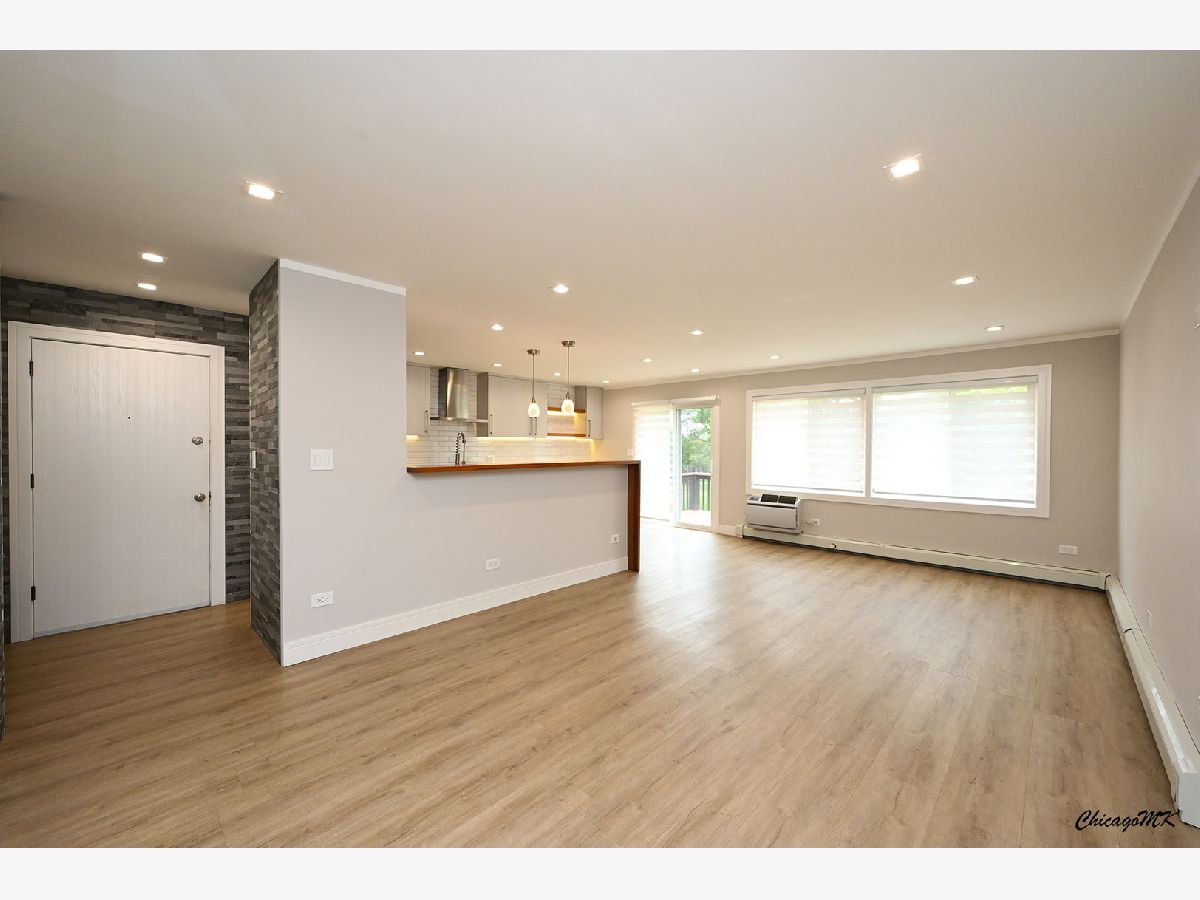 Absolutely stunning 2 bedroom, 1.5 bathroom condo now available for sale! This exquisite 2nd floor unit boasts an open floor plan that seamlessly blends style and functionality. Step inside to discover the gleaming hardwood floors that grace the entire living space, creating a warm and inviting ambiance. The spacious living and dining room areas provide the perfect backdrop for entertaining guests or enjoying quiet evenings at home. One of the highlights of this condo is the expansive balcony, where you can unwind and soak in the outdoor beauty. Prepare to be amazed by the gourmet kitchen that showcases elegant white cabinets, sleek quartz countertops, and a beautifully tiled backsplash. Equipped with top-of-the-line stainless steel appliances, including a wall-mounted range hood, this kitchen is a chef's dream. The convenient breakfast bar is ideal for casual dining or quick meals on the go. The master bedroom is a true retreat, featuring a generous walk-in closet and a private bath that exudes luxury. The second bathroom, complete with a tub and modern tile finishes, is equally impressive. Located in a secured and well-maintained building, this condo offers not only comfort but peace of mind. Coin laundry and additional storage options add to the convenience. What's more, the monthly assessment covers heating, water, and gas expenses, making budgeting a breeze. With two parking spaces included, parking woes are a thing of the past. But that's not all - the community amenities are truly exceptional. A clubhouse, outdoor pool, and playground provide opportunities for leisure and recreation right at your doorstep. This condo has undergone recent remodeling, leaving you with nothing to do except unpack and relish in the beauty of your new home. Investors will also find this property enticing, adding to its overall appeal. This listing is an absolute must-see, offering a blend of elegance, functionality, and convenience that's hard to come by. Don't miss the chance to make this beyond beautiful condo your own!