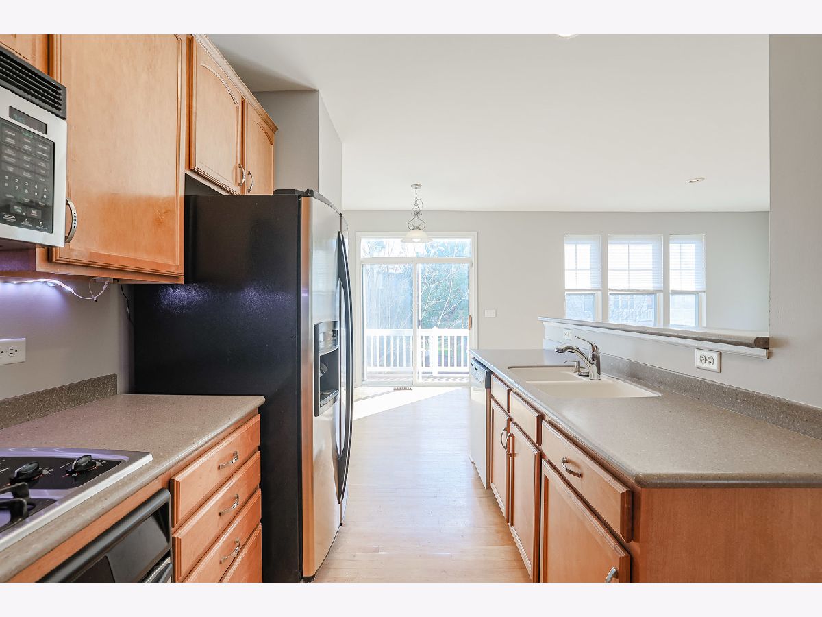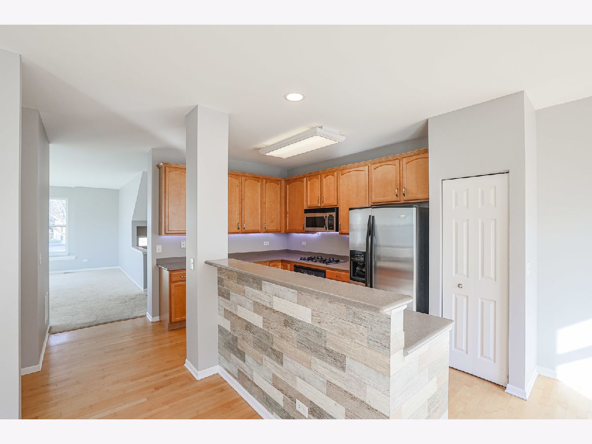 Desirable end unit with tons of light. Close to Elgin O'Hare Expwy, Commuter Train Stations, Grocery stores and Restaurants. Maple Hardwood Flooring (needs a refresh) and Maple Kitchen Cabinets. An abundance of recessed lighting, as well as some fresh paint throughout the unit. This model offers the Laundry on the second floor along with 3 bedrooms. Spacious Master Bedroom boasts vaulted ceilings, ample closet space, master bath with double sink, soaker tub and separate shower. Lower level can be used as 4th bedroom or office/rec room. There is a half bath on the lower level, as well. This one has room for everyone and a 2 car garage and room for parking in the driveway as well.