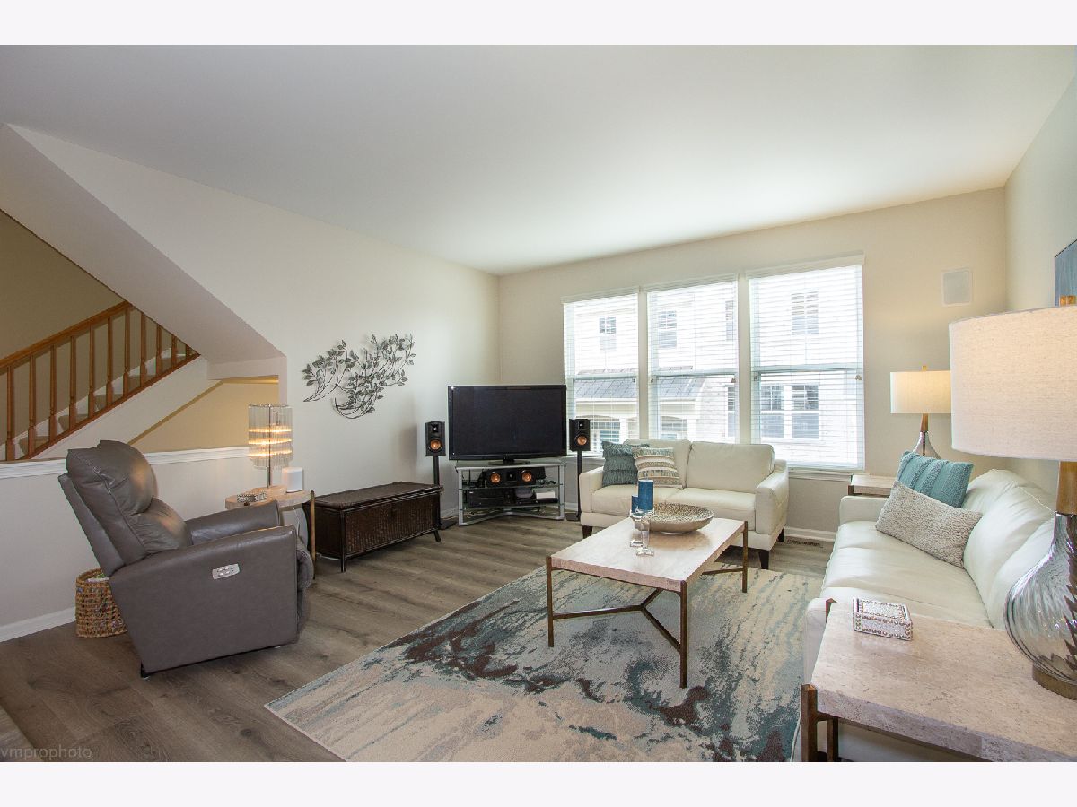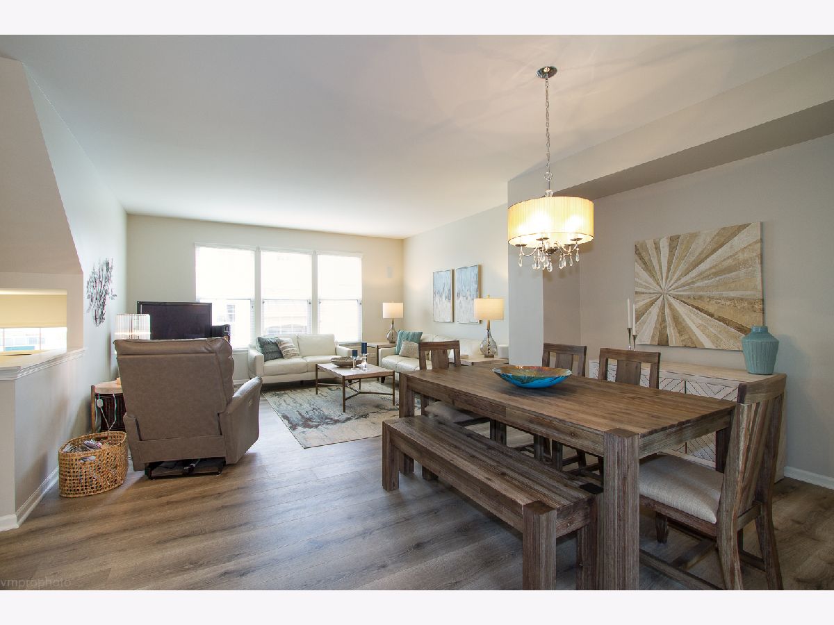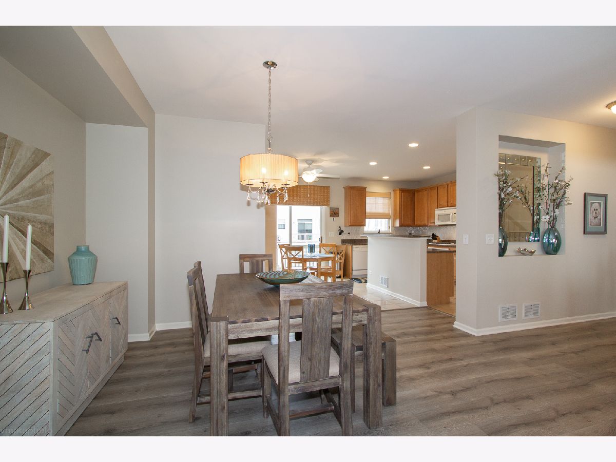 Brokers! The one you have been waiting for! Absolutely stunning & model-perfect condition, the original owners have maintained this impeccable townhome like no other. Brand new wood laminate wide plank flooring just installed in lower level and living room/dining area. Almost 2200 sq. ft. of living space. Kitchen has cam lighting, custom 42" maple cabinets and a custom back splash too. A great 2-tiered bar area opens to a 20 ft., oversized balcony constructed with maintenance-free Trek decking with views of the pond. Very open floor plan for entertaining! 2 great-size bedrooms. Master bedroom has a large walk-in closet and a private bathroom with double sinks. The 2nd bedroom has it's own bathroom. 2nd floor laundry, white panel doors and wooden blinds t/o. Built-in speakers. Newer furnace/AC 2021. This gorgeous home borders both Bloomingdale and Roselle with great shopping, restaurants & Metra train. Close to forest preserve as well. Show & sell! This won't last long.