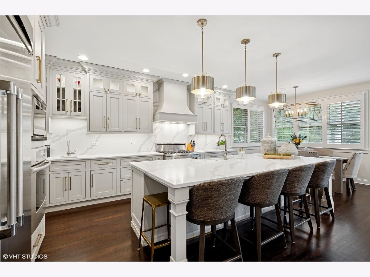 Immerse yourself in the epitome of luxury and sophistication with this custom-built masterpiece, elegantly nestled in the vibrant neighborhood of Pioneer Park near downtown Arlington Heights. This stunning residence offers unparalleled elegance and convenience, perfectly positioned for effortless access to the train and expressway, making it a haven for both entertaining and modern family living. Step inside to be greeted by an open concept floor plan, where newly finished hardwood floors, chic new light fixtures, and soaring ceilings create an airy and inviting ambiance. The heart of this exquisite home, the kitchen, has been masterfully transformed in 2021, boasting new inset cabinets, sleek countertops, high-end appliances, and a stylish backsplash that collectively embody a chef's dream. A butler's pantry seamlessly connects the kitchen to the dining room, crafting an entertainer's paradise. The powder room echoes this luxury with its stylish remodel, enhancing the home's modern charm. The family room radiates warmth and luxury, featuring a stunning stone fireplace flanked by custom-built cabinets. Custom French doors with plantation shutters lead you to a recently remodeled backyard oasis, completed in the summer of 2023. This enchanting outdoor sanctuary includes a beautifully crafted patio, a fire pit, a built-in grill kitchen with a countertop, and pristine professional landscaping. Every detail is meticulously crafted, including a spacious walk-in closet to be customized to your liking and a laundry room with extensive cabinet storage and backyard access. A thoughtfully designed mudroom with locker and bench storage further elevates convenience. The second floor presents a versatile reading/study loft area and three generously sized secondary bedrooms complemented by a full hall bathroom. Escape to the oversized primary bedroom, featuring a luxurious walk-in closet and a lavish ensuite bathroom with a separate tub and walk-in steam shower. A full unfinished basement with a bathroom rough-in, high ceilings, and abundant storage offers additional potential living space, tailored to your desires. The three-car tandem garage with an EV charger and epoxy floors provides ample vehicle storage and boasts two new garage doors. The home is equipped with state-of-the-art infrastructure enhancements, including new mechanicals with water heaters and an AC unit replaced in 2021, a furnace upgrade in 2024, and a brand-new washer and dryer installed in the summer of 2025. Located within the esteemed Westgate, South, and Rolling Meadows High School districts, this exquisite residence is mere moments from parks, schools, and the vibrant offerings of downtown dining and shopping, delivering the ultimate lifestyle of luxury and convenience.