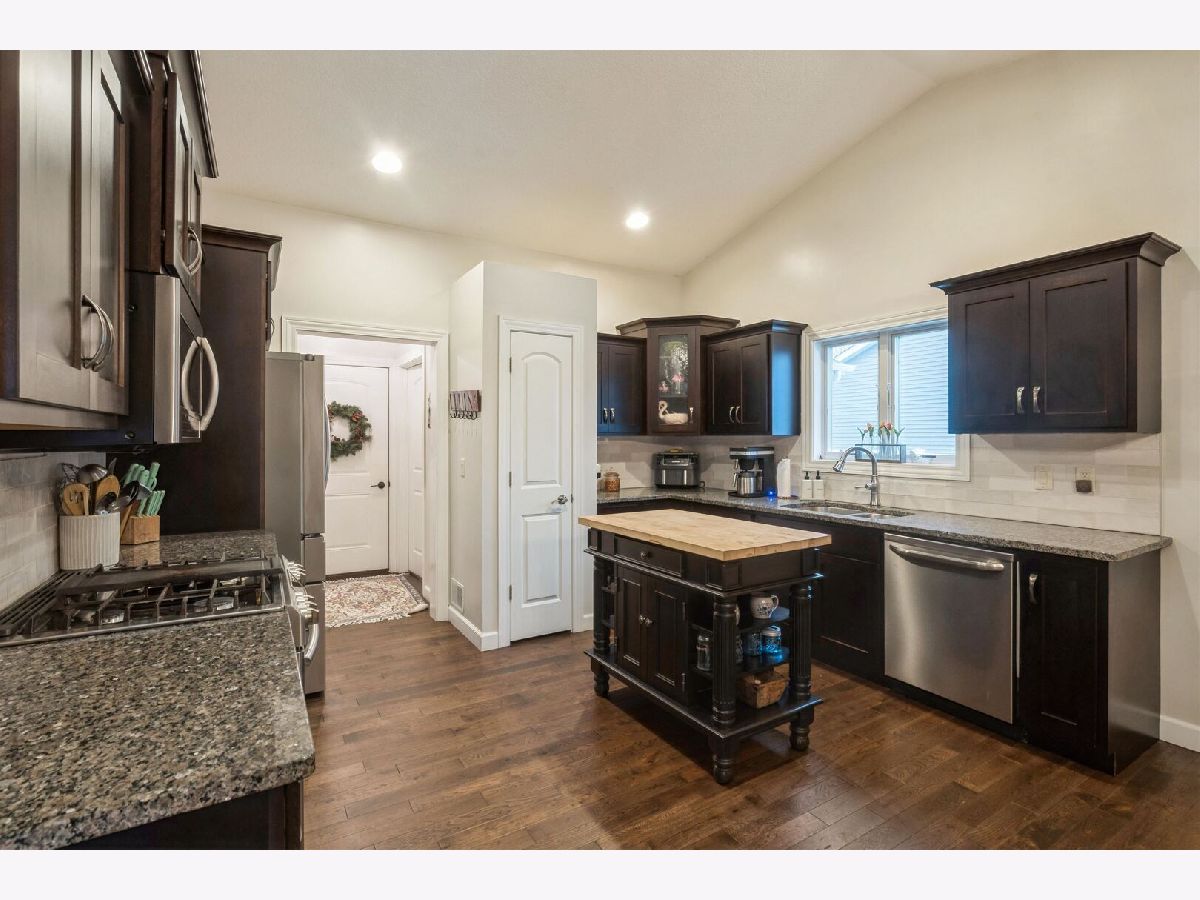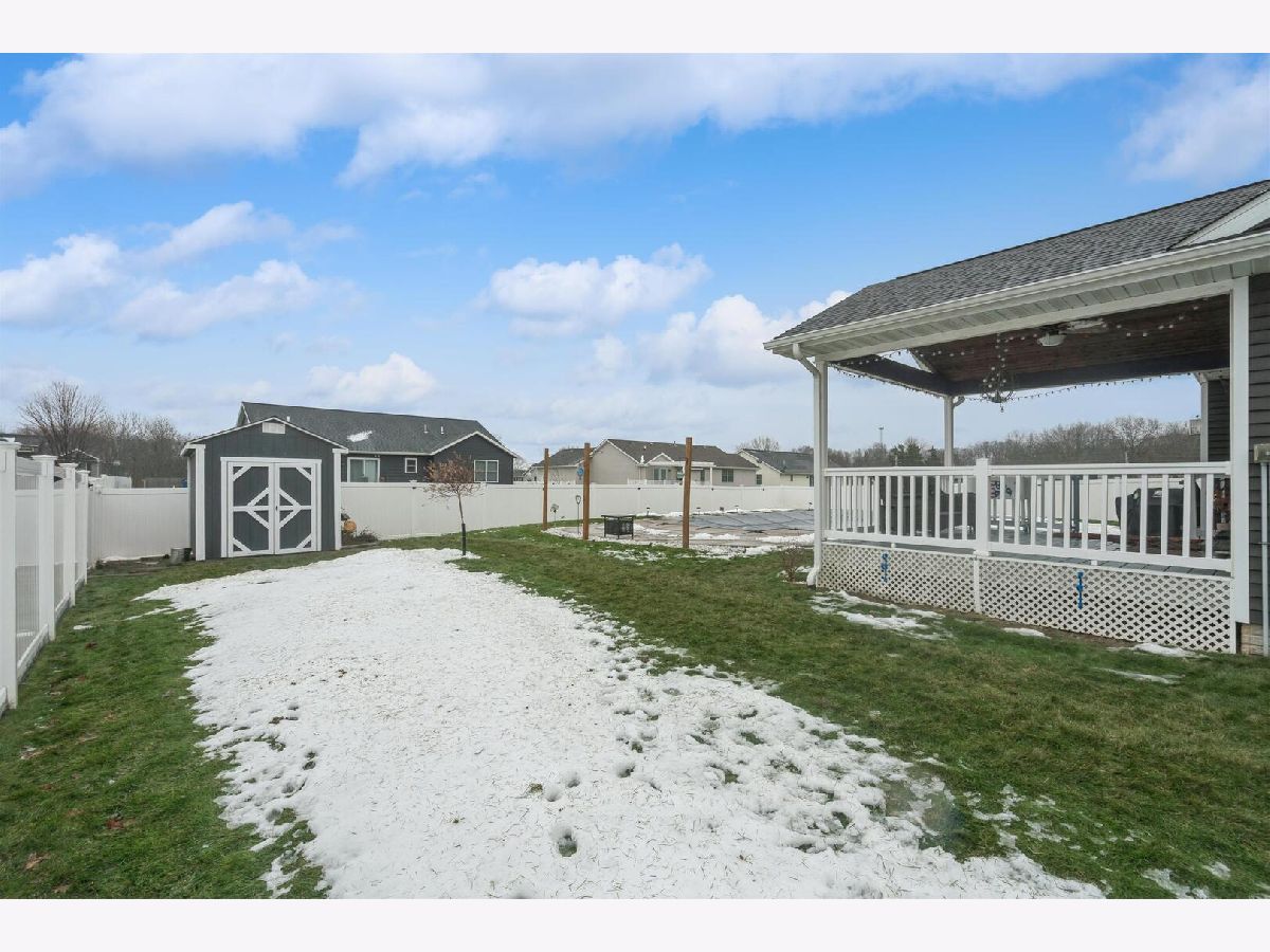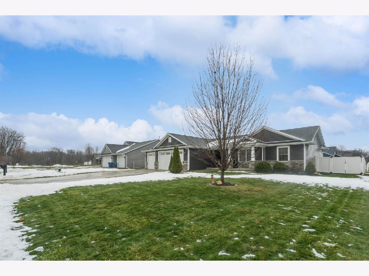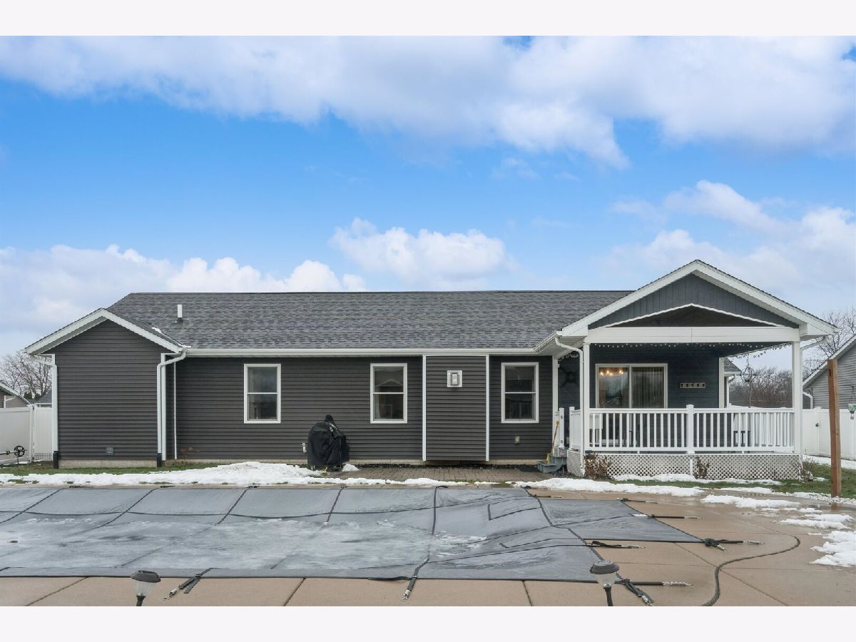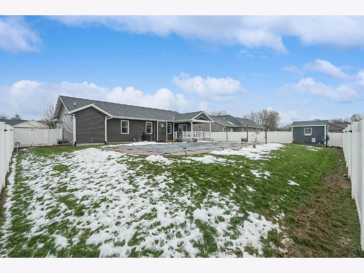 Offer in progress. Well-maintained ranch home built in 2017 with an attached 3-car garage and thoughtful, open-concept design. The main floor features three bedrooms, including a spacious primary suite with a full bathroom and walk-in closet. Vaulted ceilings enhance the living room, dining room, and kitchen, creating an airy and inviting feel. Convenient main-floor laundry is located just off the kitchen. The finished basement offers a full recreation room with a wet bar, an additional bedroom and full bathroom, plus a dedicated storage room. Sliding glass doors off the dining room lead to a porch and patio overlooking the in-ground pool and fully fenced backyard, perfect for entertaining and outdoor enjoyment.