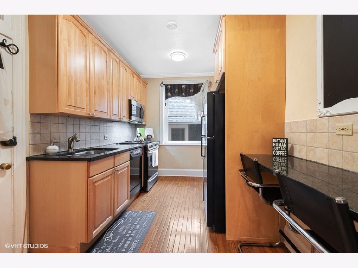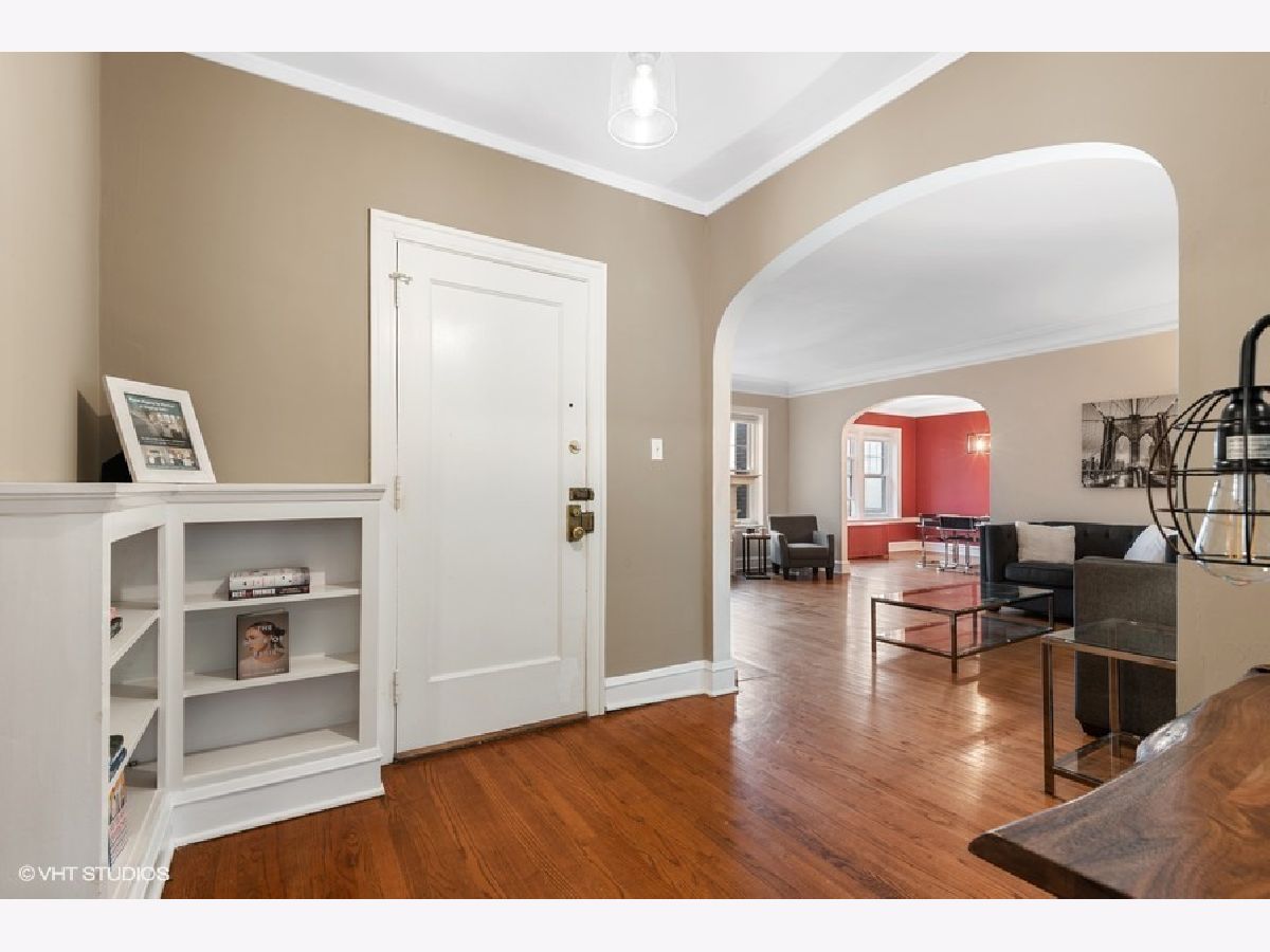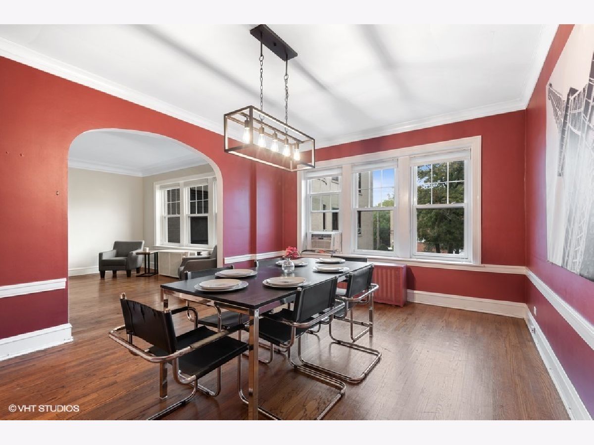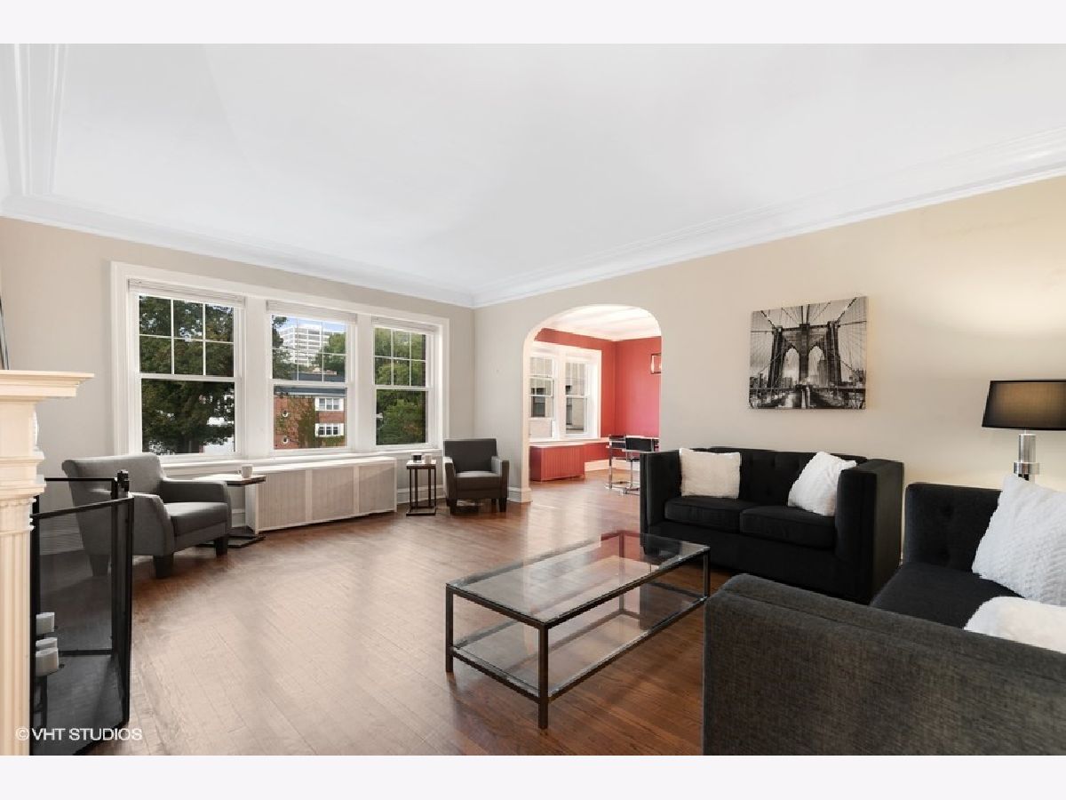 Charming vintage condo in fabulous location near downtown! The foyer leads to a spacious living room with 9' ceilings, crown molding and a decorative fireplace. A lovely archway leads to the dining room that is large enough to seat 10-12 comfortably. There is a Butler's pantry to the kitchen where you will find granite counter tops, lots of cabinets, newer appliances and a walk-in pantry. There are 2 good sized bedrooms with generous closet space (for a vintage building) and a vintage bath. All rooms receive good natural light and there are hardwood floors thruout. Pets are welcome and Euro laundry can be installed with board approval. There is additional storage space in the basement as well as newer laundry machines (no charge). There is a bike room off the back alley. It's 3 blocks to downtown Evanston where you will find restaurants, shops, the Metra and Purple Line trains, and Bennison's Bakery. Welcome Home!
