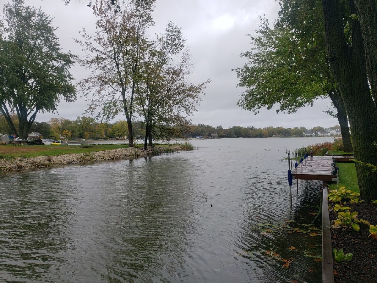 SOLD DURING PROCESSING. Nearly lakefront ranch home sits at the wide opening of a channel just off Bangs Lake and includes a private dock. Brick and cedar home has an unexpected open floorplan with volume ceilings. Large eat in kitchen has lake views with granite counter tops. The living room's focal point is the floor to ceiling fireplace and wall of windows. Three bedrooms. Primary suite includes private bath with jetted tub and separate shower. Office separated with french doors off the living room. A bonus space is perfect as a family room, exercise room. Attached 2 car garage with full attic and pull down stairs for extra storage. Full dry crawl space. Deck and seawall. Deck with natural gas line for grilling. You can't get this close to the lake at this price.