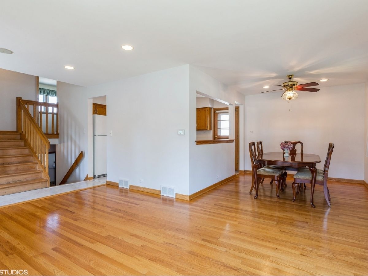 Such a convenient and quiet location, just 1 block to the Dee Rd train station, close to O'Hare, highway access and on a dead-end street. Traditional 3 bedroom split with 2 full baths. Big front windows flood the main living space with natural light, big kitchen opens to dining room. Hardwood floors in the 3 upstairs bedrooms and hallway, recently renovated bathroom. Large lower level family room and second full bath also updated. So much storage space in the concrete crawl and lower level laundry room. Nice yard with room to play or garden, patio and 2.5 car garage.