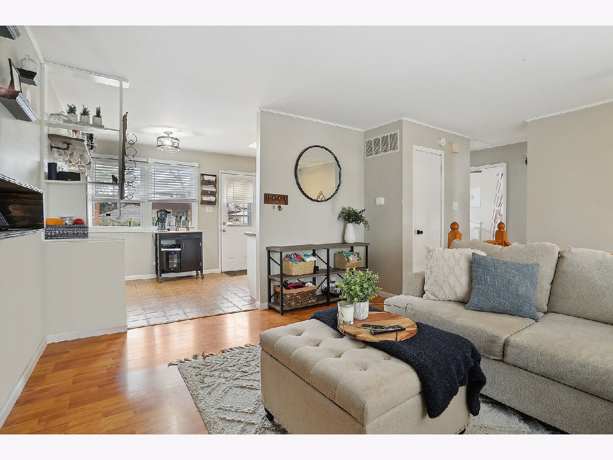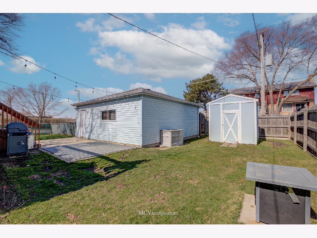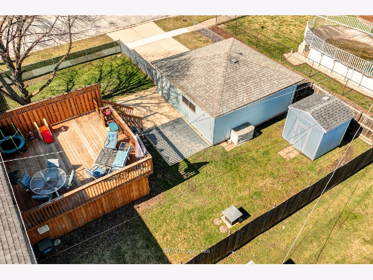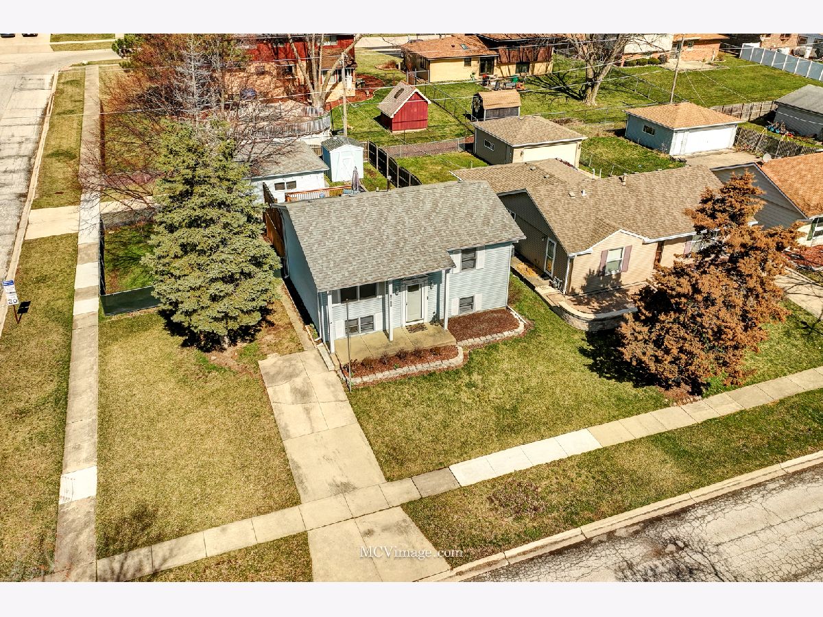 Beautiful 4 bedroom raised ranch is nestled on a fully-fenced, oversized corner lot. Welcoming entry invites you into the foyer with dramatic 11' ceilings and a solid wood staircase. Comfortable living room has great natural light and opens to the kitchen with white cabinets, good counter space and area for your table. There are two nice sized bedrooms upstairs and a recently updated full bathroom. The lower-level features a large family room with great sunlight, 2 bedrooms, and an updated 1/2 bath. The laundry room has space for additional storage. Picturesque, fully-fenced backyard has an enormous wood deck (20x20) with stairs to access the concrete patio and a large storage shed. 2.5 car detached garage, and a partial side driveway for additional off street parking. UPDATES INCLUDE: full bath remodel including vanity, toilet and floor, 1/2 bath vanity, bi-fold doors in 2 bedrooms, sump pump (2024), garage door opener (2023), A/C (2017), deck (2015), roof (2012) front door (2021). Located in Carl Sandburg School District. Prime location close to METRA, shopping, dining, parks and more.