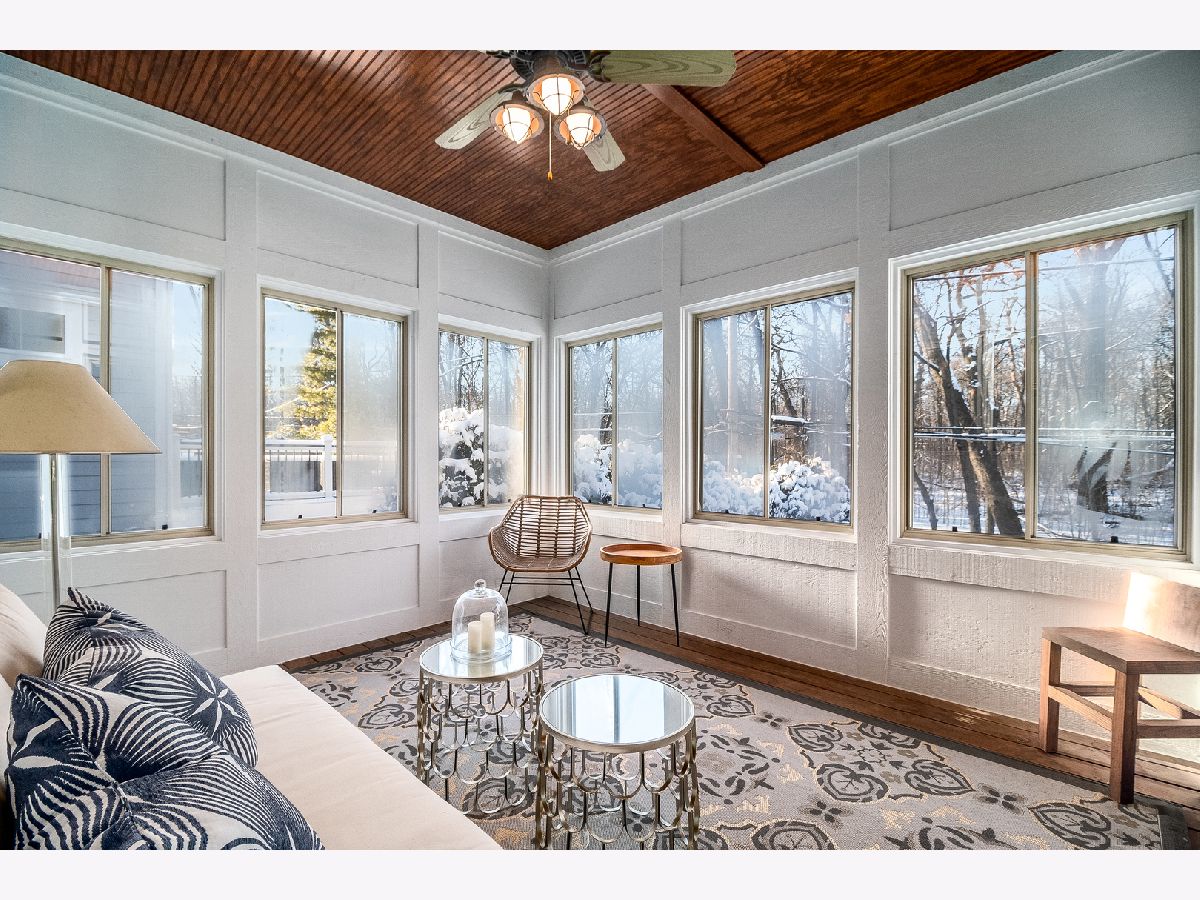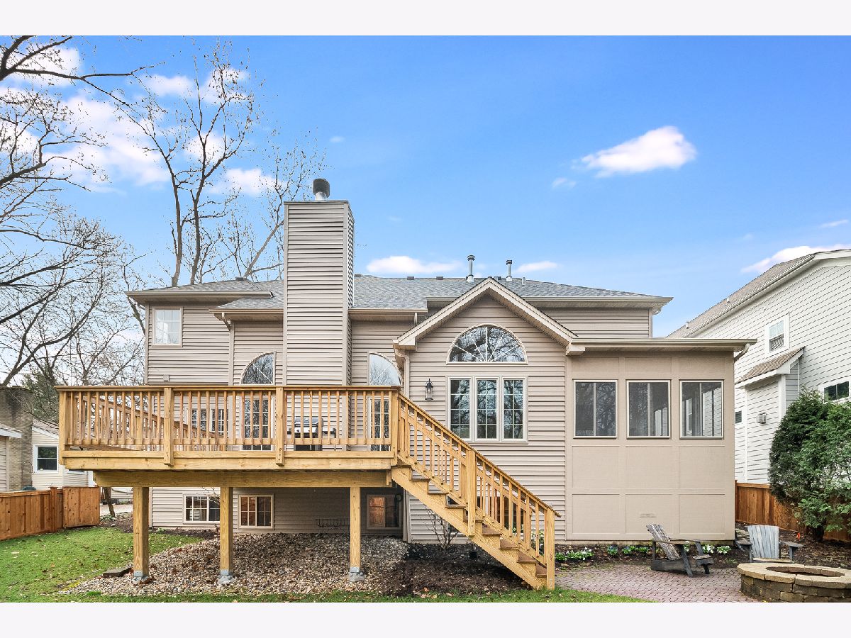 This elegant home in Downtown Naperville is classic luxury. Back on the market with no fault of the seller. This gorgeous home is ready for immediate occupancy. Backing up to Burlington Park, you can catch a glimpse of white tailed deer or a bright cardinal perched on a tree branch from the bonus 3 seasons room. Newly finished lookout basement. Enjoy time with family and friends in the open first floor living spaces. The family room is centered with a sleek two-story fireplace. Stylish light fixtures complete each room. A gorgeous white and gray kitchen invites you to cook up a fun dinner, or pour a glass of wine and sit at the island enjoying appetizers. Featuring: black and stainless steel Viking appliances, including a double oven. Celebrating a more formal occasion? The bold dining room, reminiscent of Roaring 20's glam, is the perfect space. Don't miss the butlers pantry with wine refrigerator, easily accessible from the kitchen or dining room. The over-sized mudroom/work-space boasts room for a second washer and dryer. The lookout Basement includes the newly finished rec room and a theater room. A second fireplace and sitting room anchor the master suite. The third bedroom has ensuite bathroom. NEW back deck overlooking the forest, NEW ROOF, NEW siding, NEW roof, NEW HVAC & water heater! The front stair and rails have all been recently stained. Back the market with no fault of the seller. Move in ready, no updates necessary.