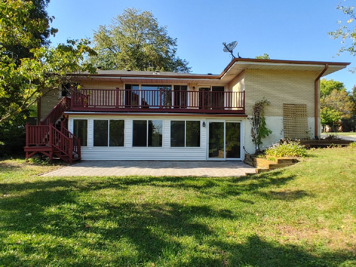 Rare riverfront property! No flood insurance required. Front porch to decorate year round for the holidays. Brick 3 bedroom, 2 bathroom ranch style home. Updated kitchen loaded with cabinets, granite countertop and stainless steel appliances; all appliances stay. Eating area off kitchen with sliding door to large deck. Living room with large picture window has a beautiful view of the property. Remodeled main floor bathroom and updates to lower level bathroom as well. Exposed walkout lower level has a large family room, 3rd bedroom, bathroom, laundry room, bonus room for office or craft room, and vinyl sided enclosed three season room with wall of windows overlooking paver patio and tree-lined corridor to the river. Situated on .82 of an acre. Most all windows have been replaced in the last year. New gutters. All new ceiling fans. Hot water heater 2015. Oak trim with oak 6 panel doors. Closet organizers. 1 yr old overhead garage door. 95.5% efficiency furnace. Shed. Railroad tracks nearby are no longer in service. Taxes do not reflect the homeowner occupied exemption discount. Basket ball hoop included. Freshly sealed driveway and newly paved street.